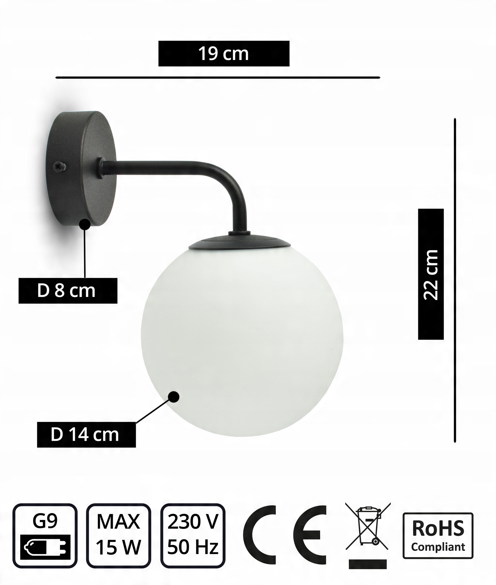 Zestaw nie zawiera żarówki, a także kołków rozporowych (należy dobrać odpowiednie do typu ściany).