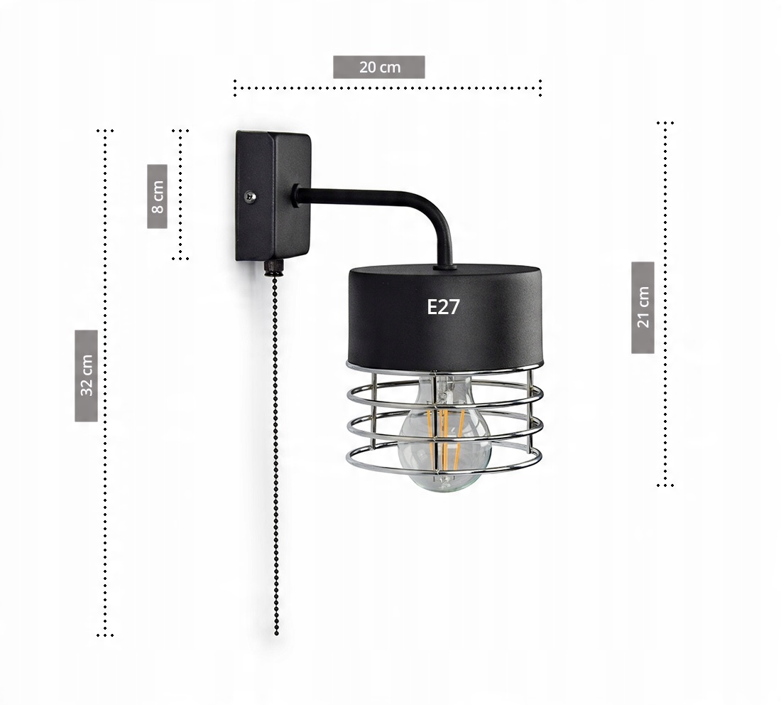 - Źródło światła: E-27 - zalecane LED lub świetlówki kompaktowe