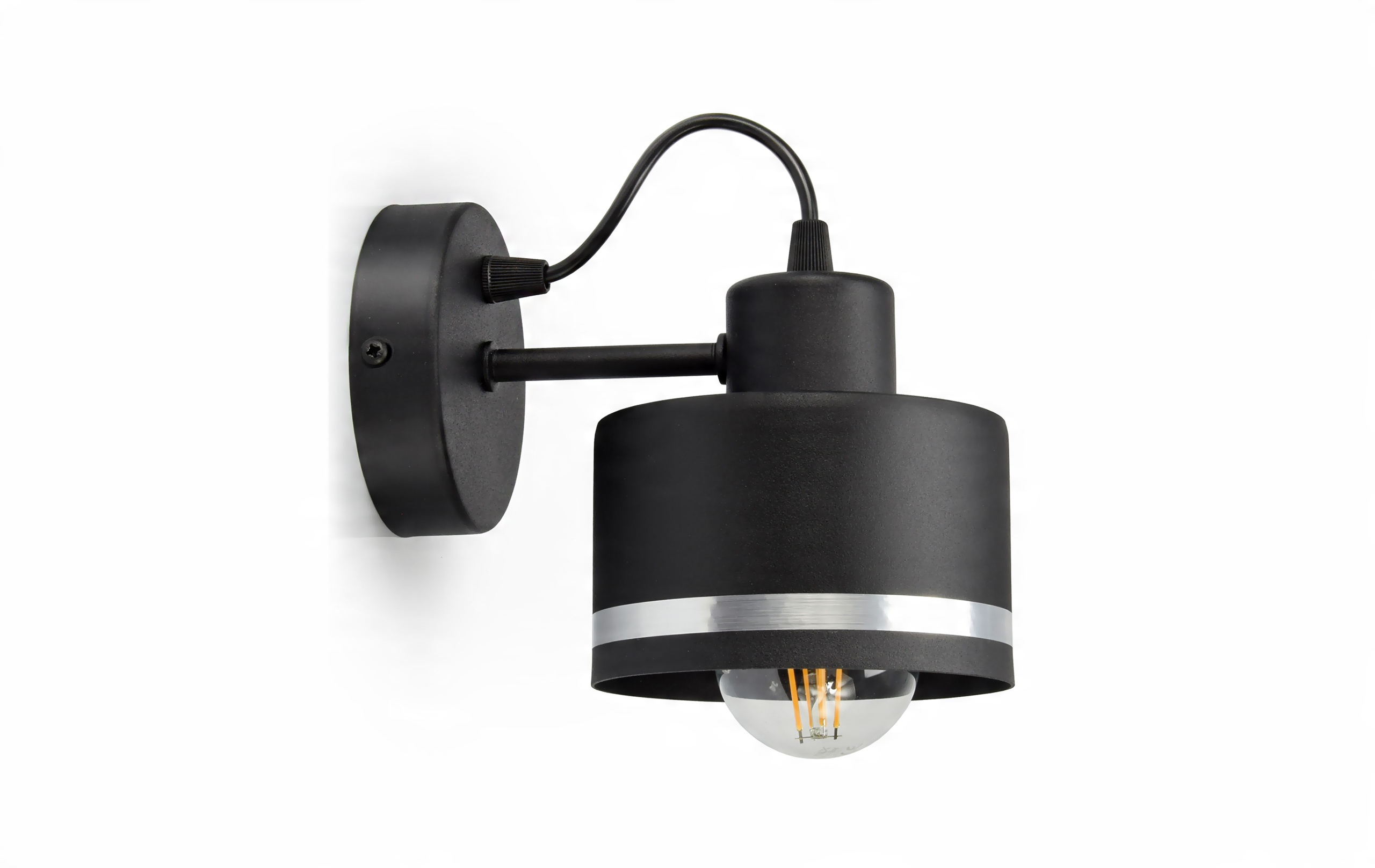 Praktyczny i nowoczesny kinkiet zbudowany w oparciu o metalowy klosz w kształcie walca.