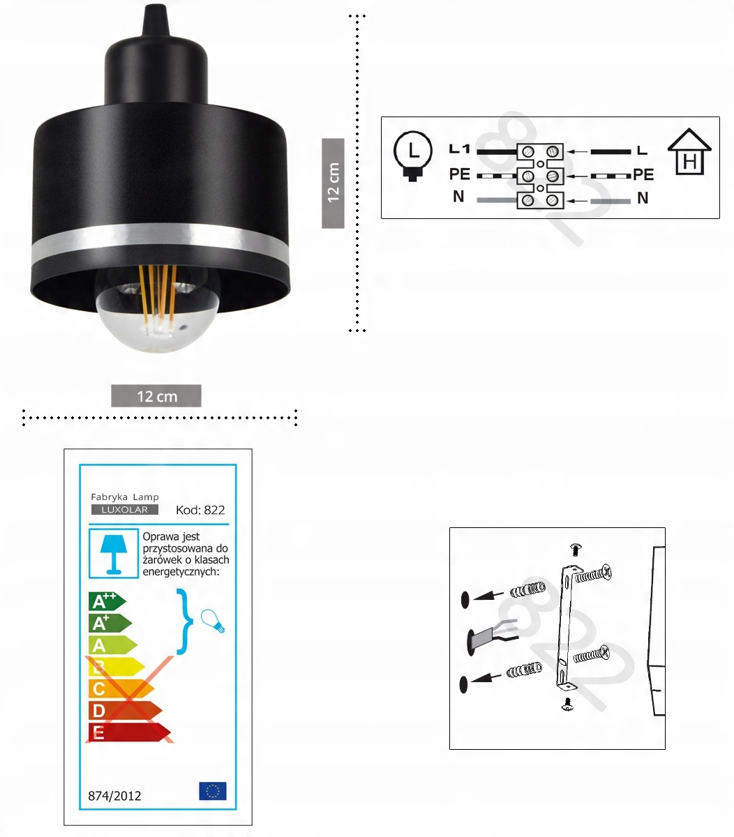 - Źródło światła: E-27 - zalecane LED lub świetlówki kompaktowe