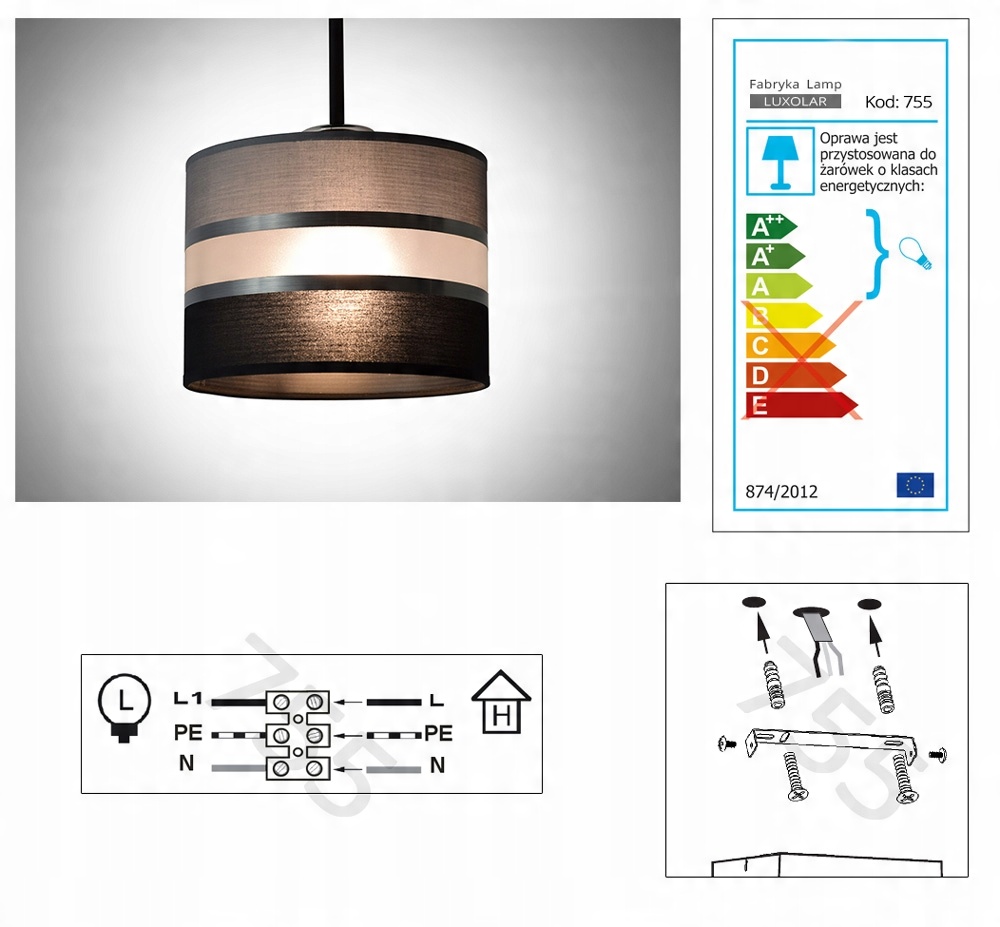 - Lampa obsługuje wszystkie żarówki z gwintem typu E27 do max 60 watów.