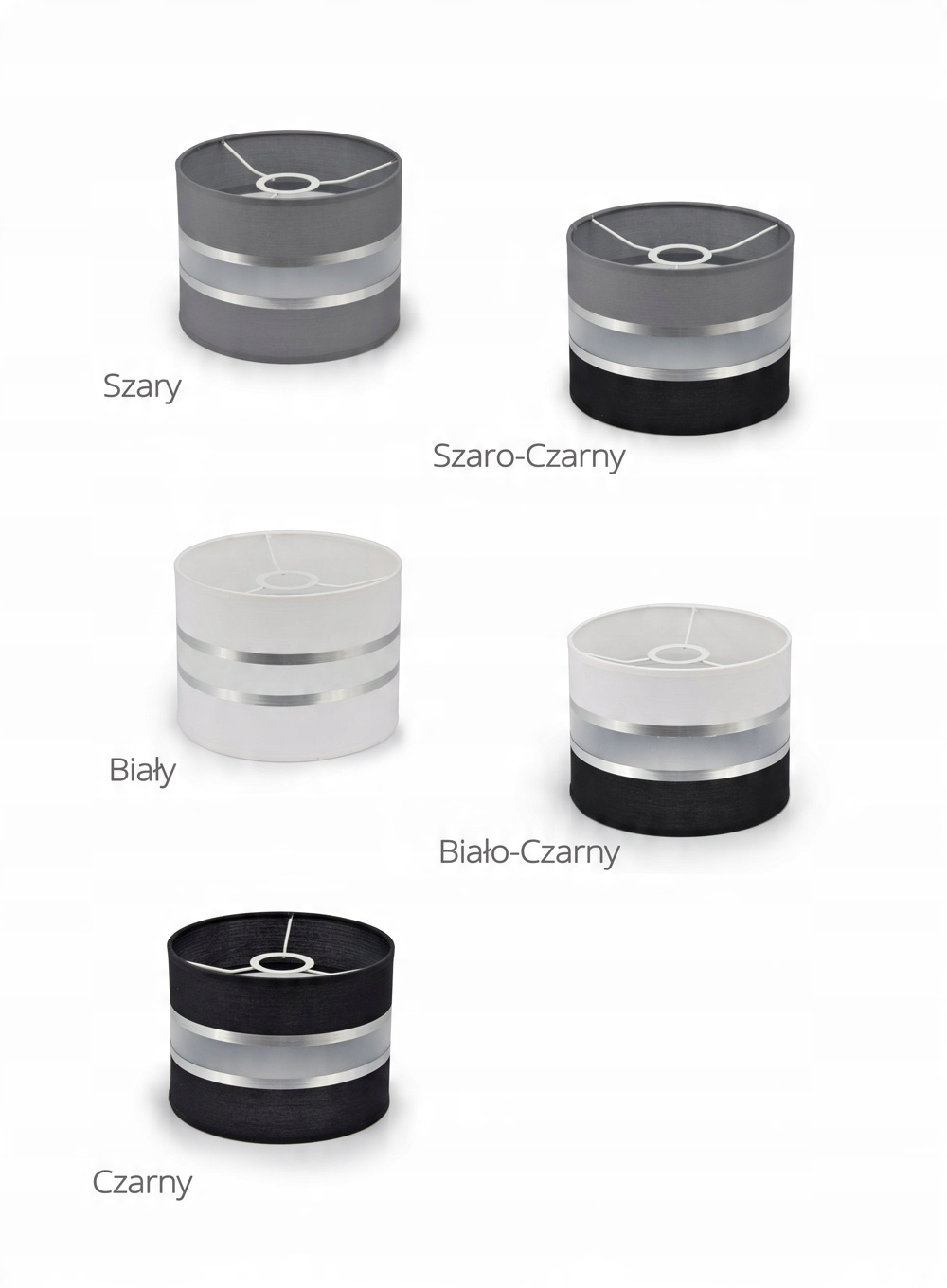 - Wybierz kolor abażurów: Czarny, Szary, Biały, Biało - Czarny, Szaro - Czarny.
