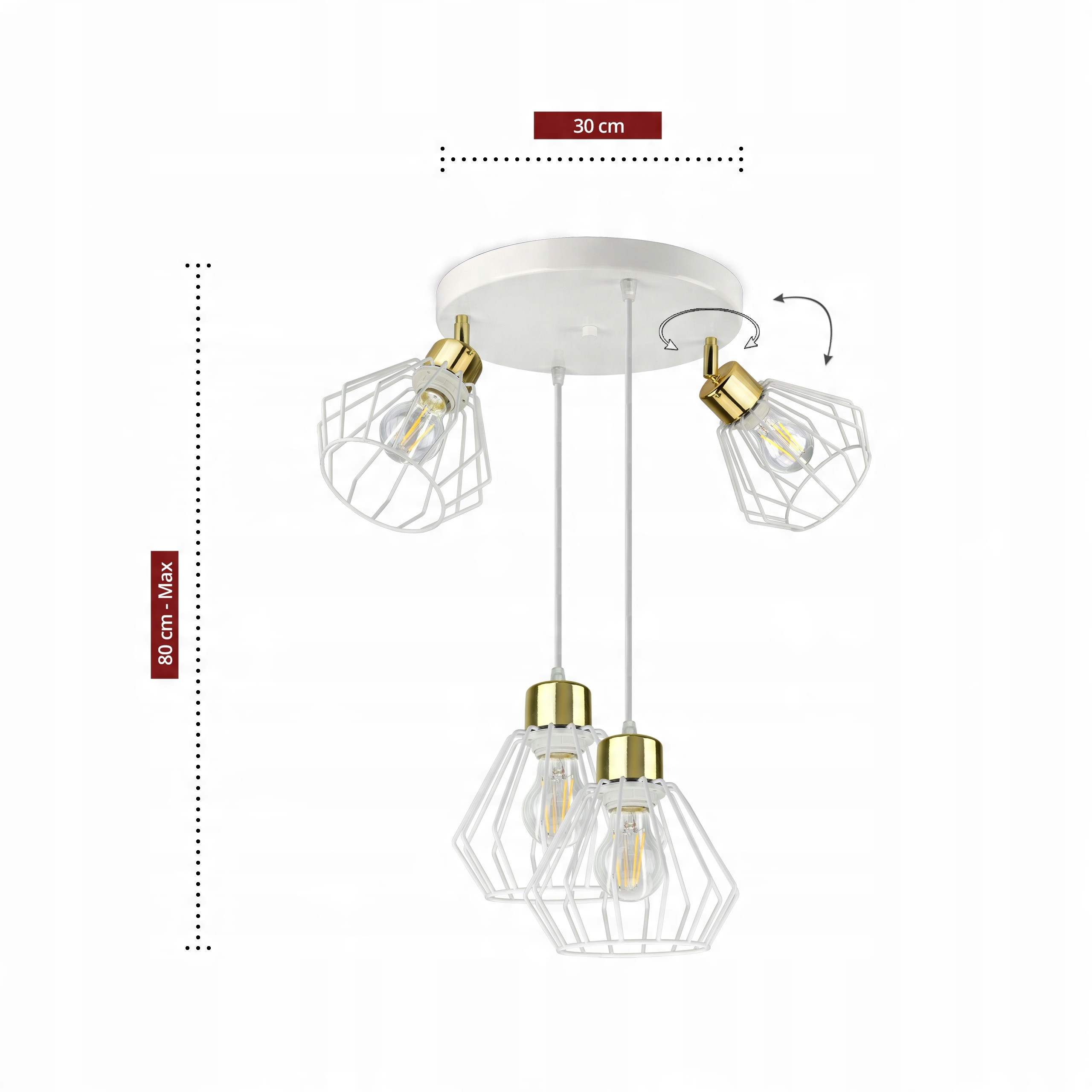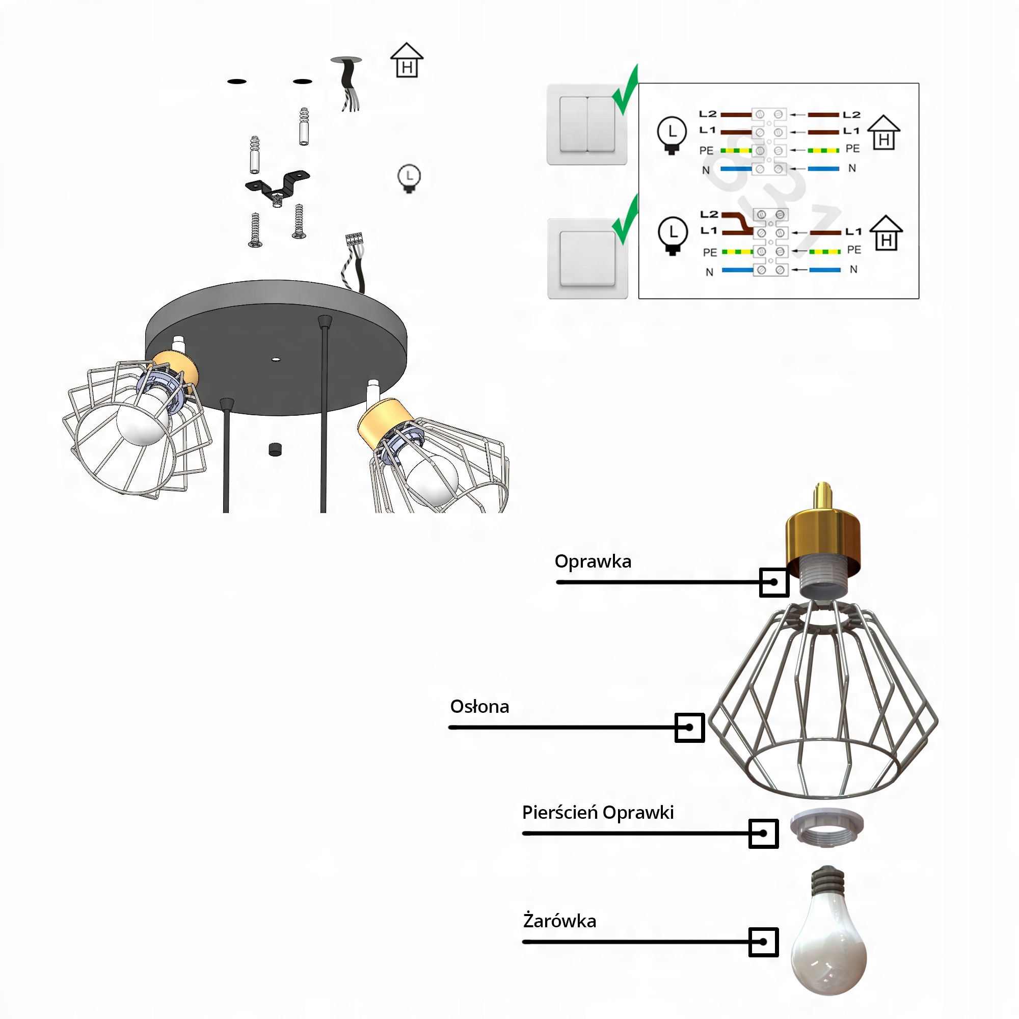 Zestaw nie zawiera żarówek ani kołków rozporowych (należy dobrać odpowiednie do sufitu)