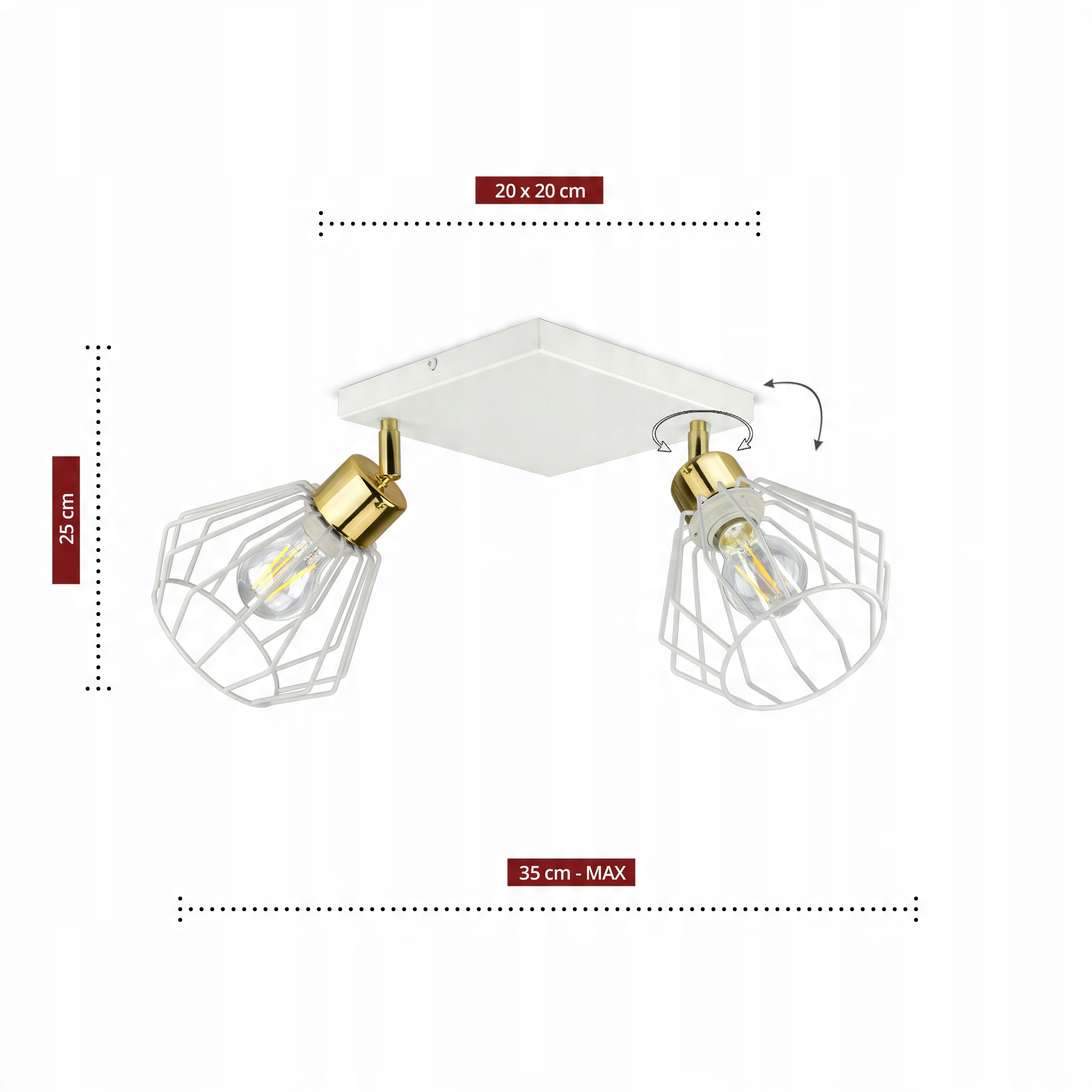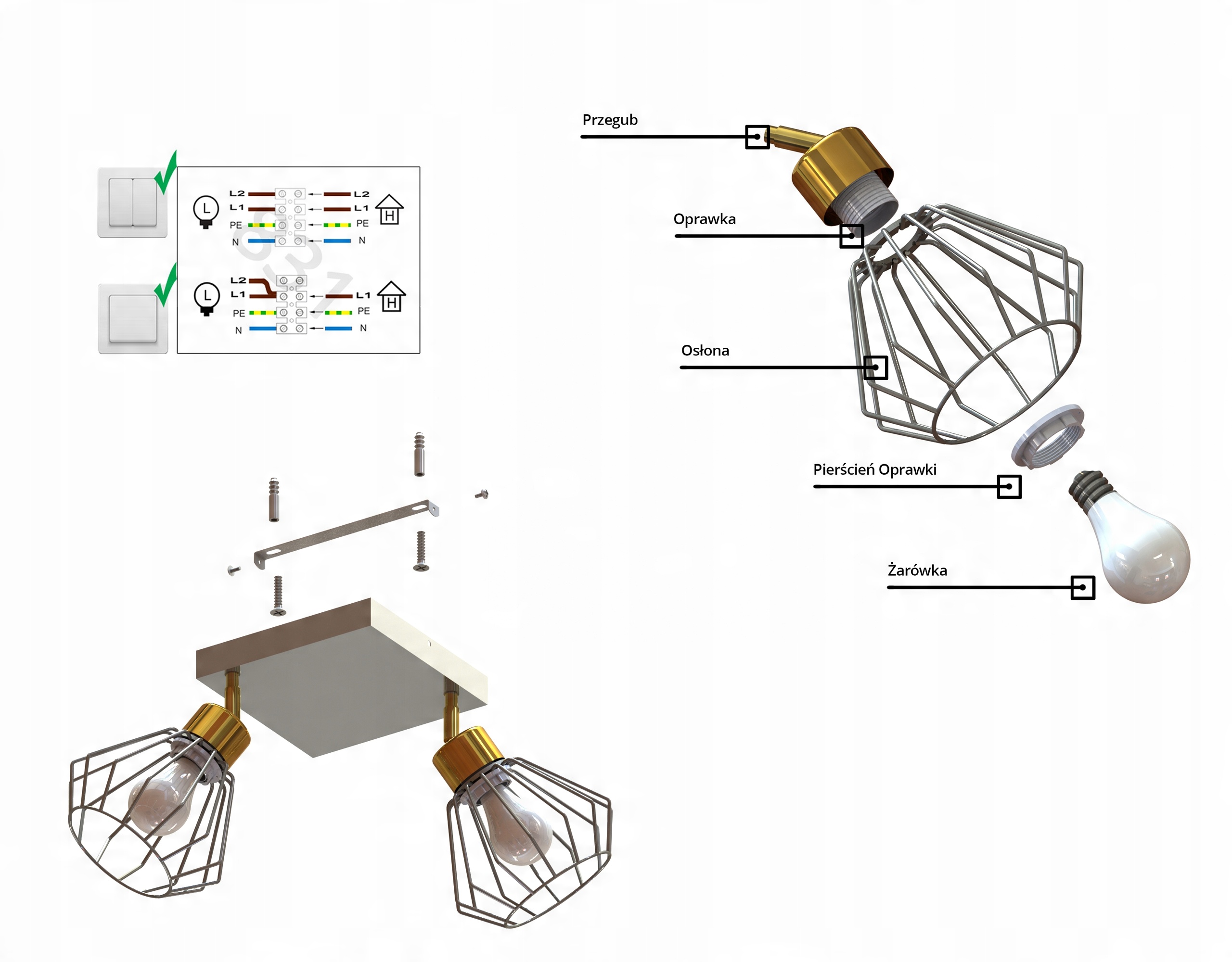- Zestaw nie zawiera żarówek oraz kołków rozporowych do montażu