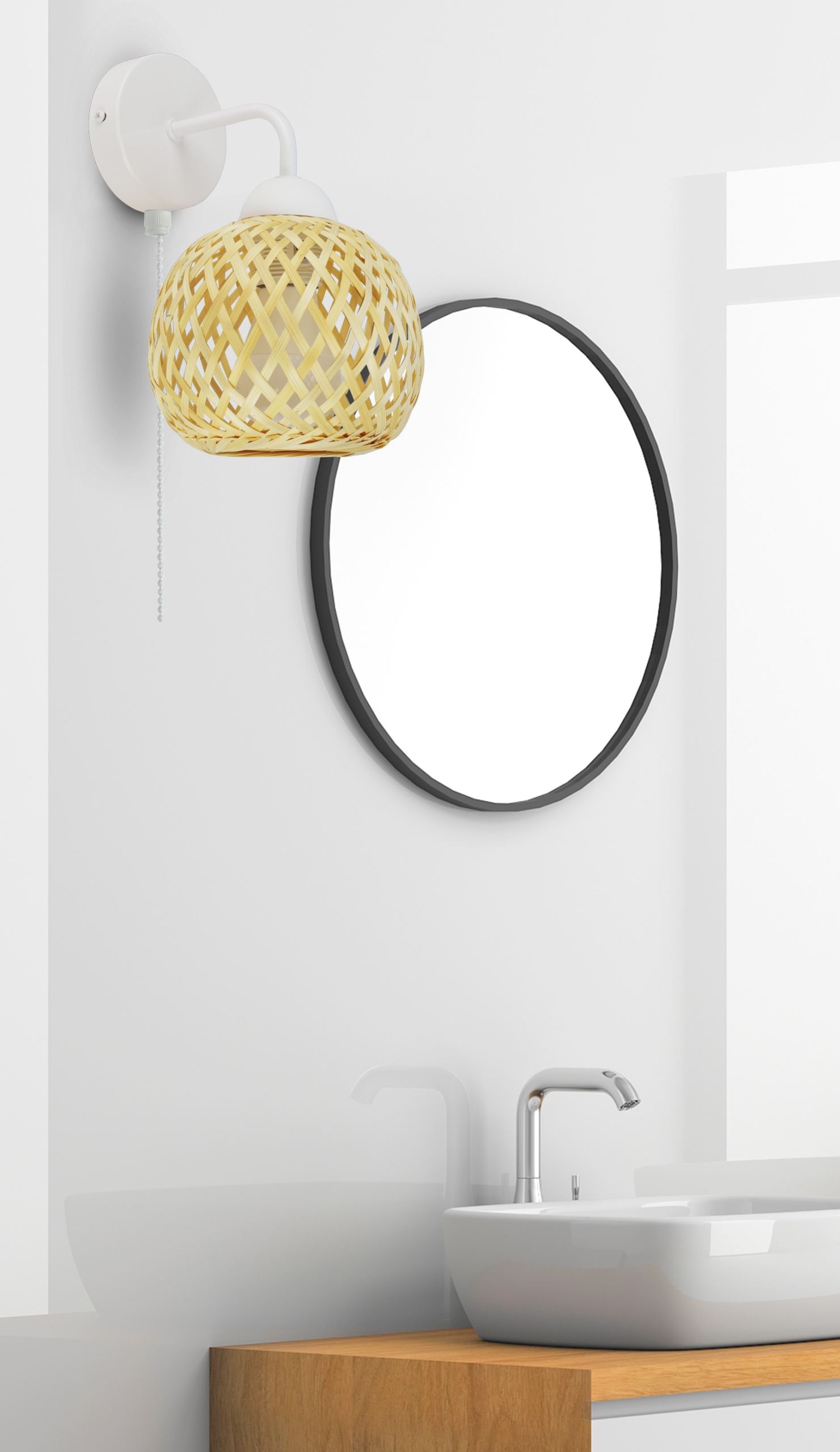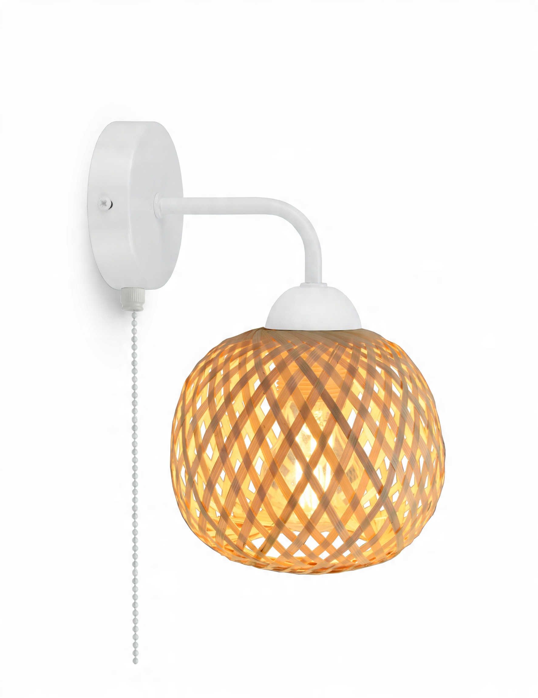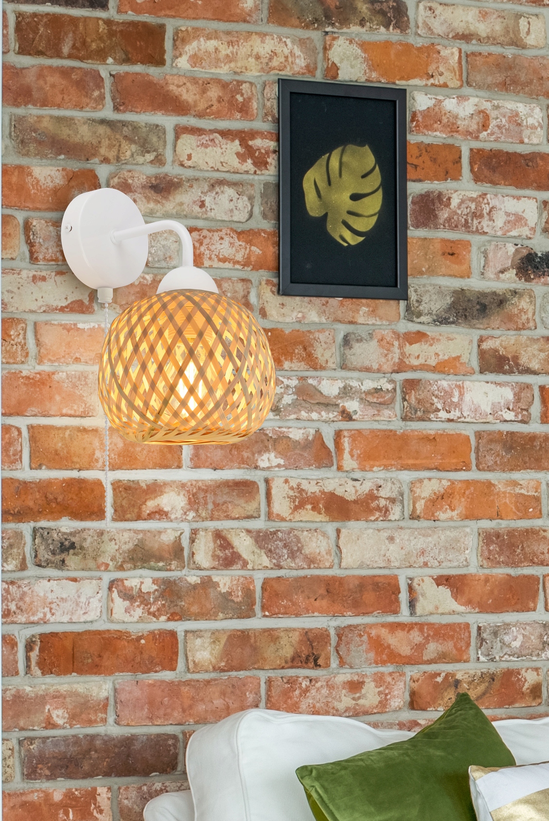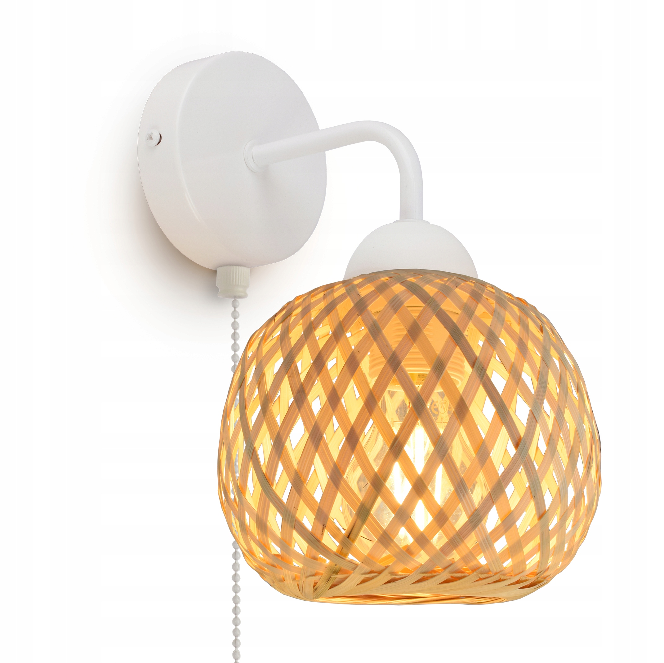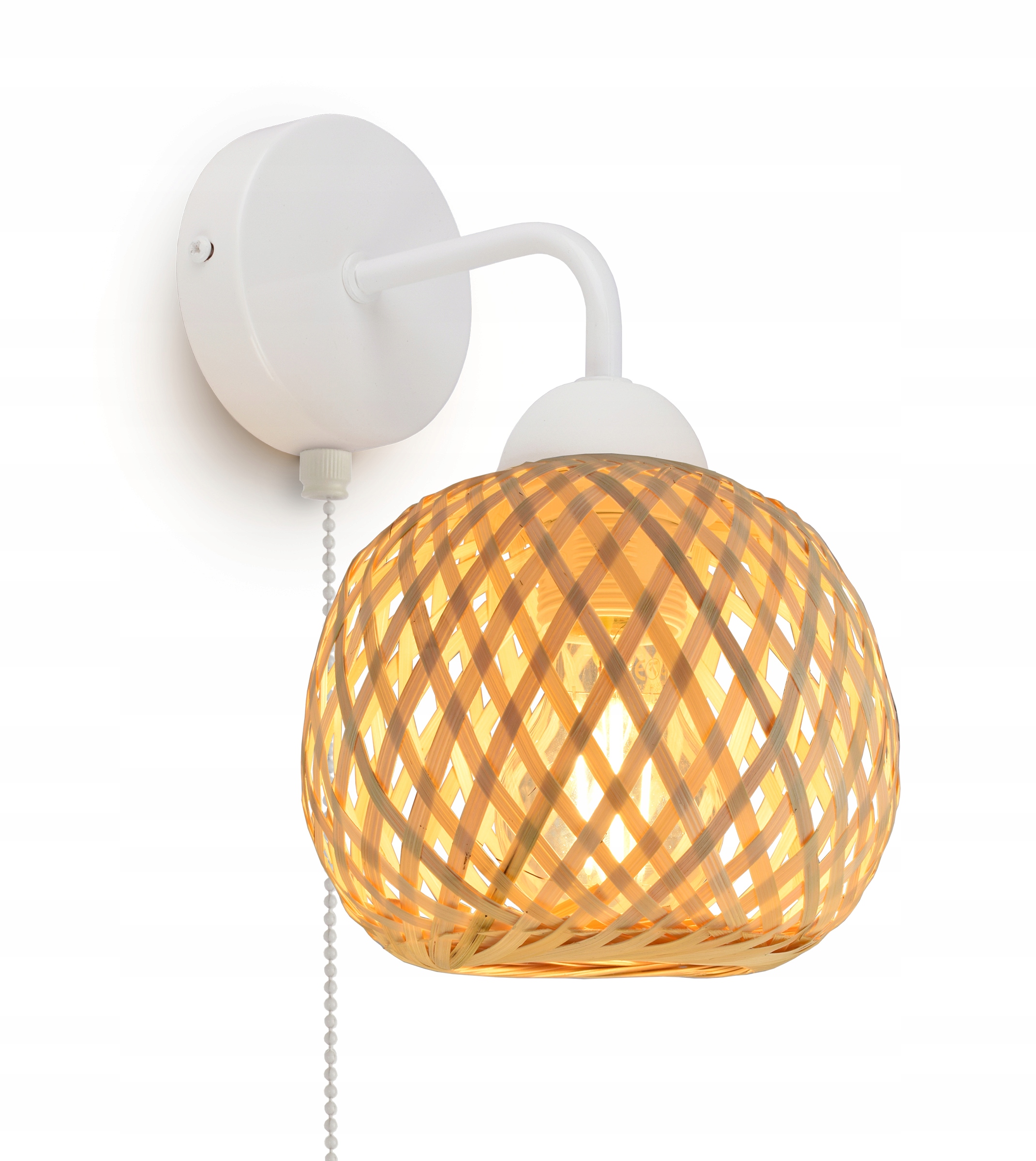Lampa Ścienna Kinkiet Bambusowa Pleciona BOHO Naturalna 583-KW1 LED Biała