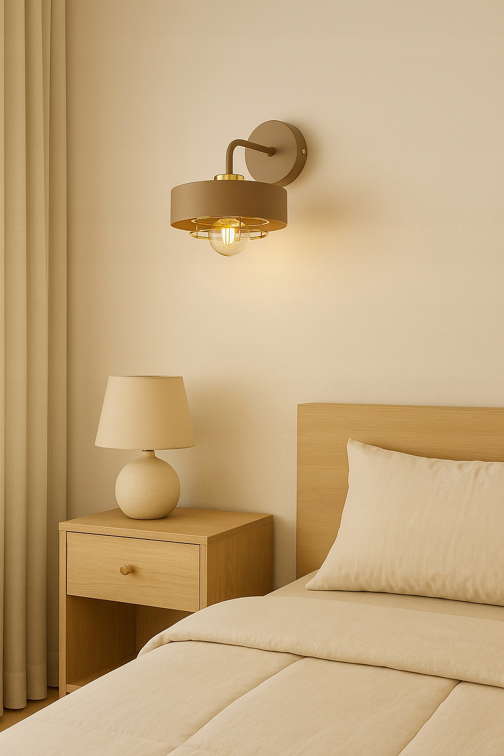 Lampa Ścienna Kinkiet Beżowa ECRU Złoto 1xE27 LED 760-K1