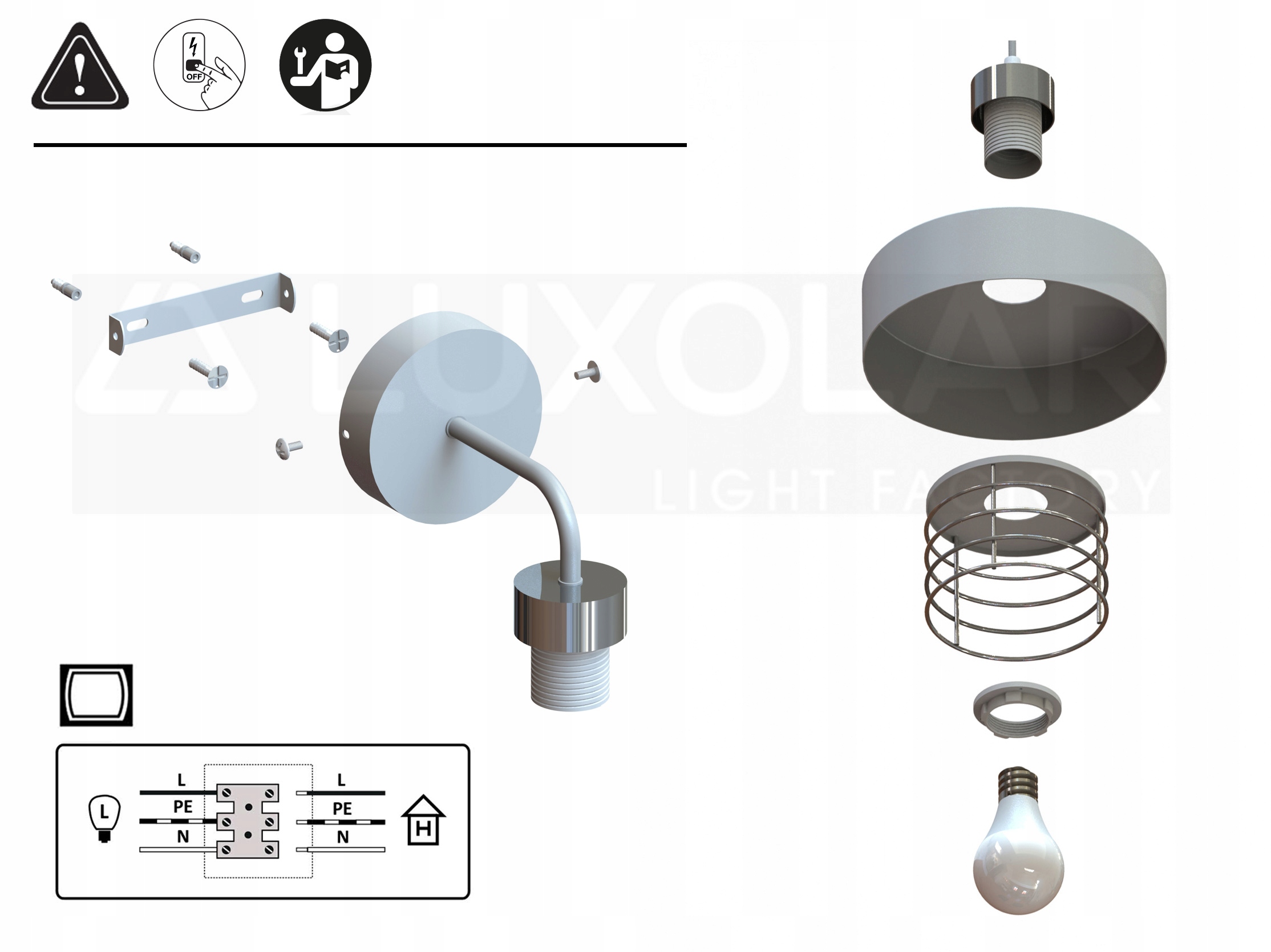 - Kompletną, złożoną lampę, gotową do montażu (klosz spakowany oddzielnie)