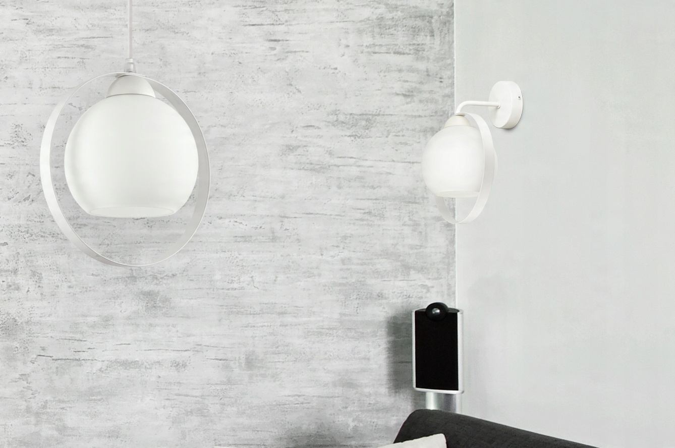 - Materiał kloszy: Metalowa obręcz + szkło w kolorze mlecznym