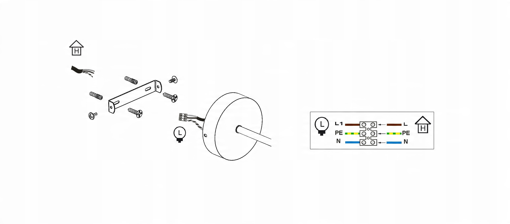 Zestaw nie zawiera żarówki ani kołków rozporowych (należy dobrać odpowiednie do ściany)