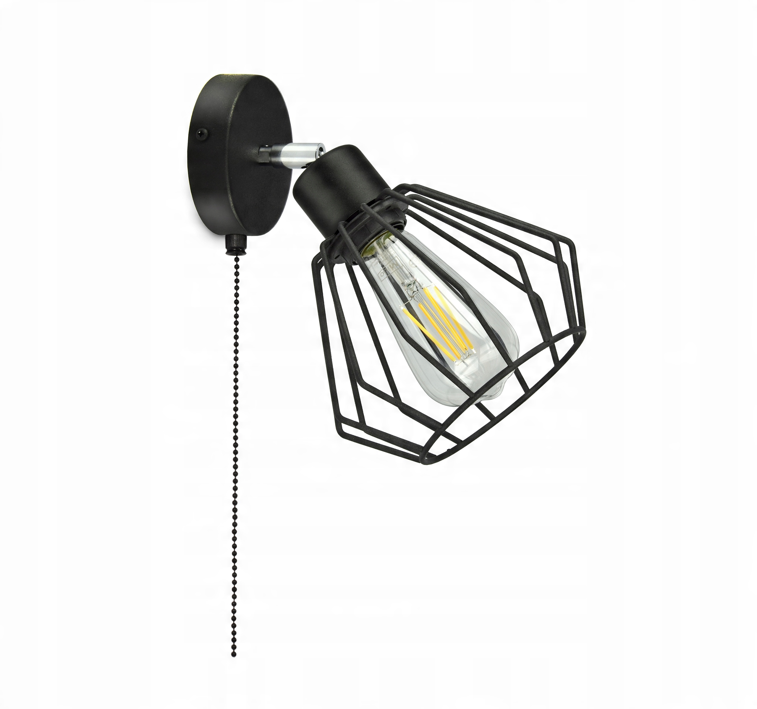 Nowoczesna lampa ścienna, kinkiet loft z drucianym kloszem.