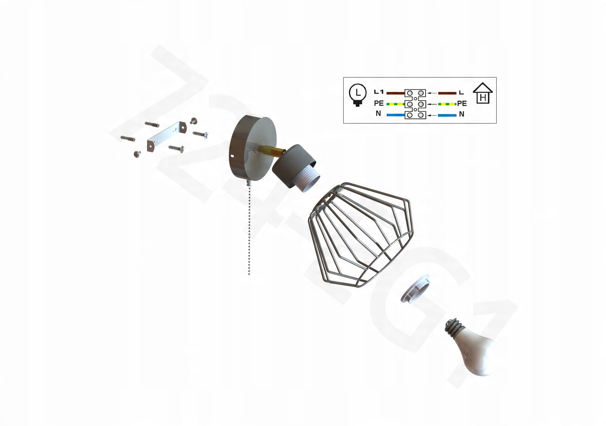 - Lampa obsługuje wszystkie żarówki z gwintem typu E27 do max 60 watów.