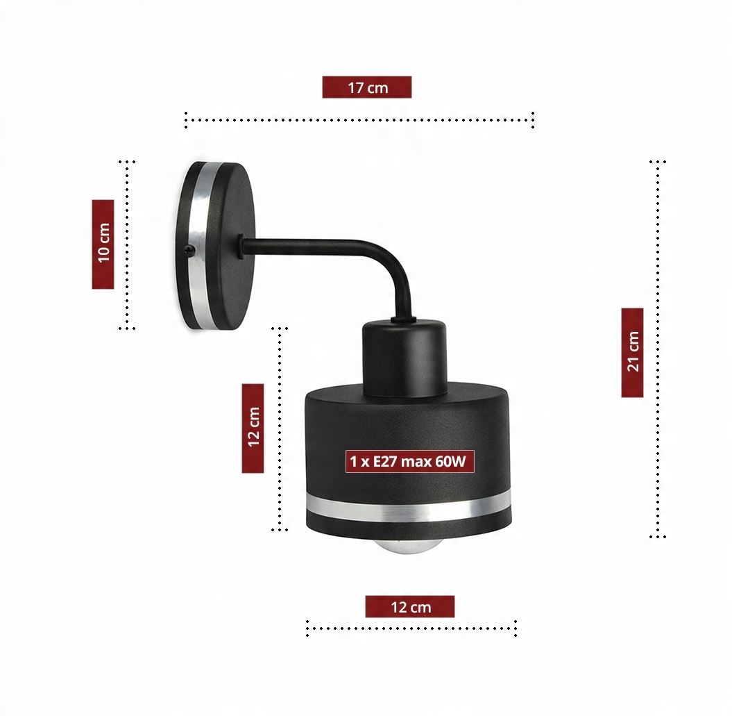 - Kolor konstrukcji i klosza: Czarny matowy ze srebrnym pasem