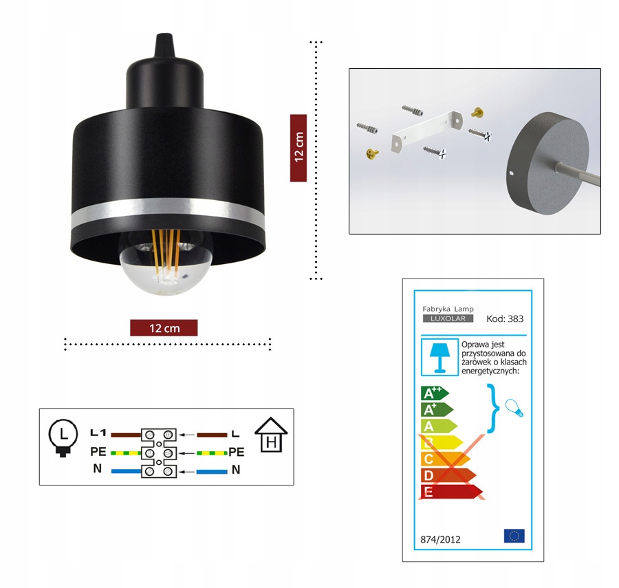 - Źródło światła: E-27 - zalecane LED lub świetlówki kompaktowe
