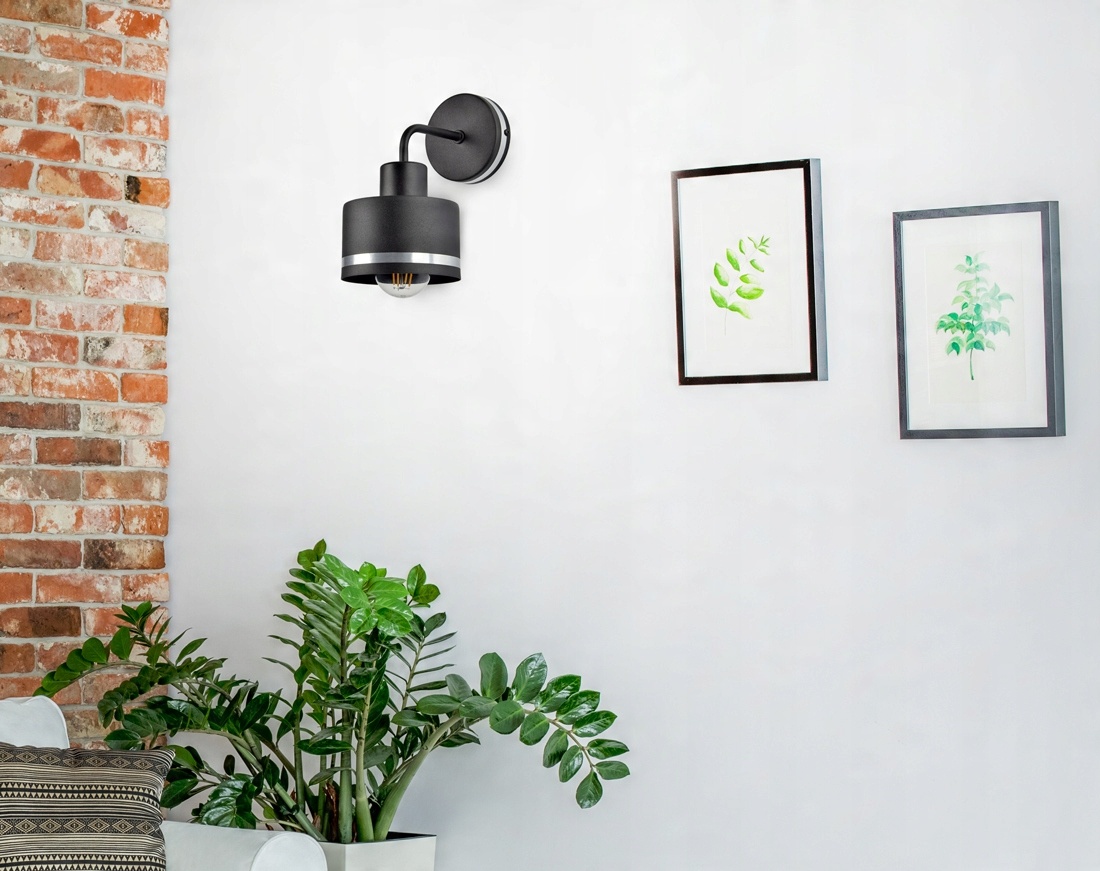 Nowoczesny kinkiet z metalowym kloszem w kolorze czarnym - zdobiony srebrnym pasem