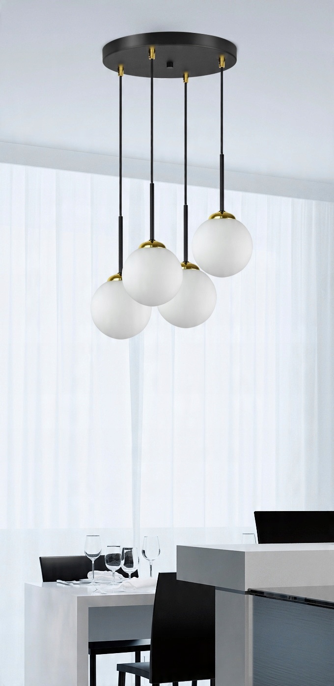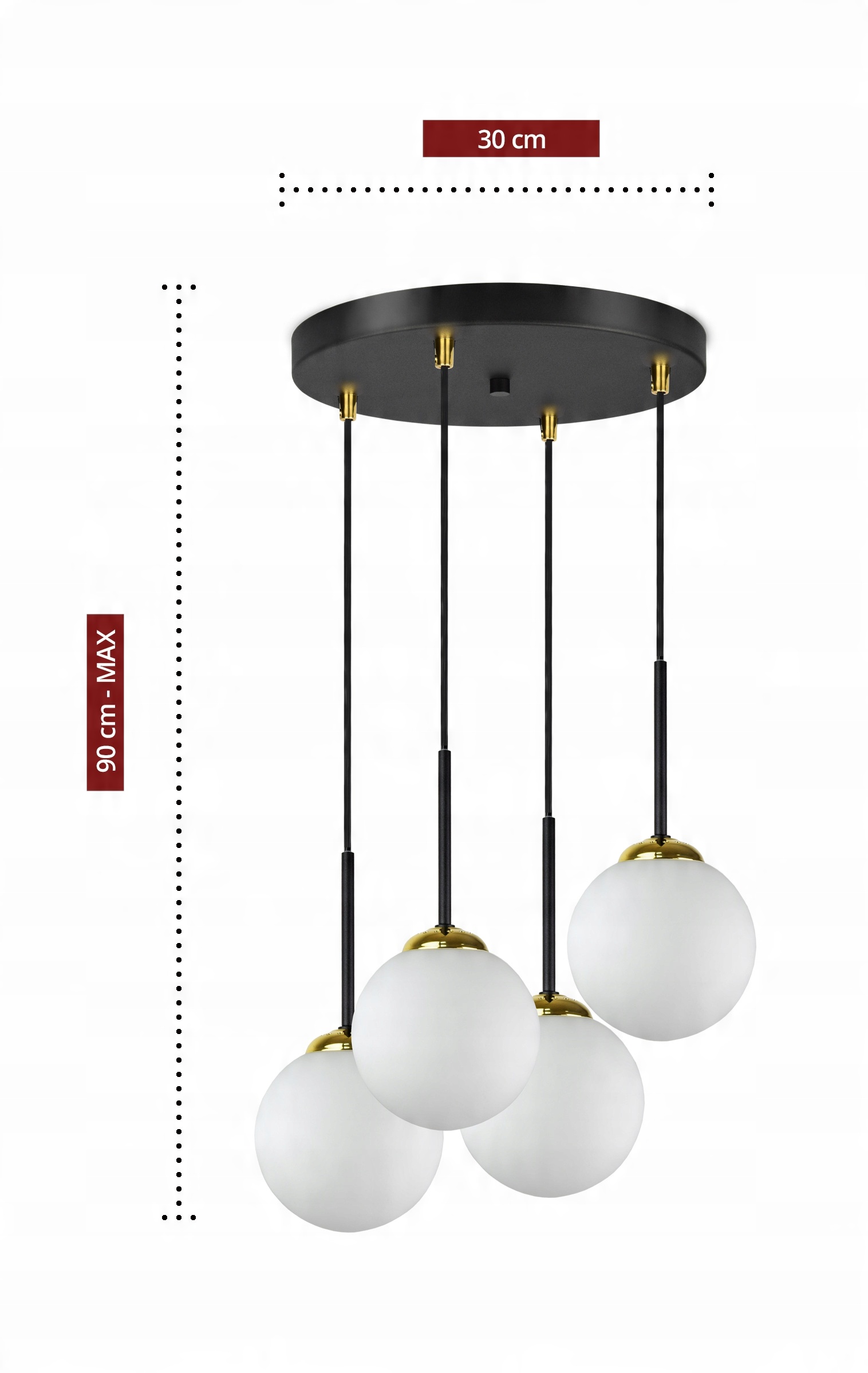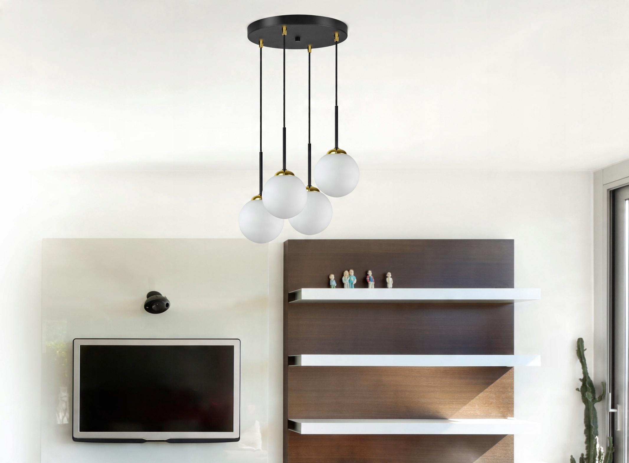 ✅ Lampa wyposażona w bardzo modne oraz praktyczne szklane klosze w kształcie kuli.