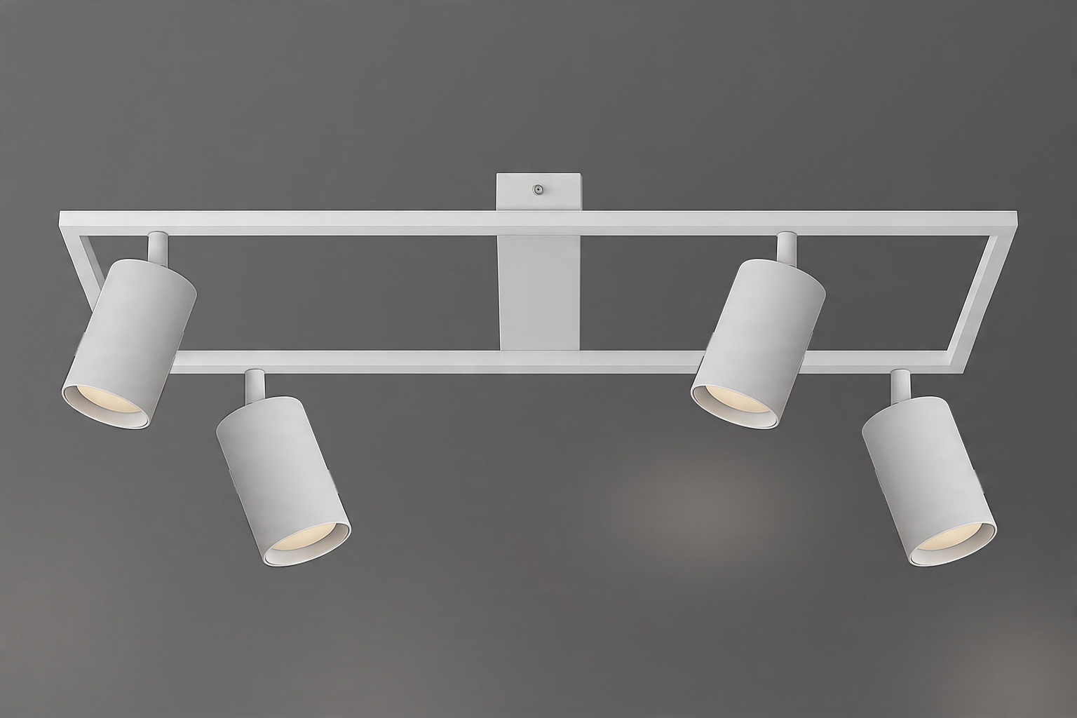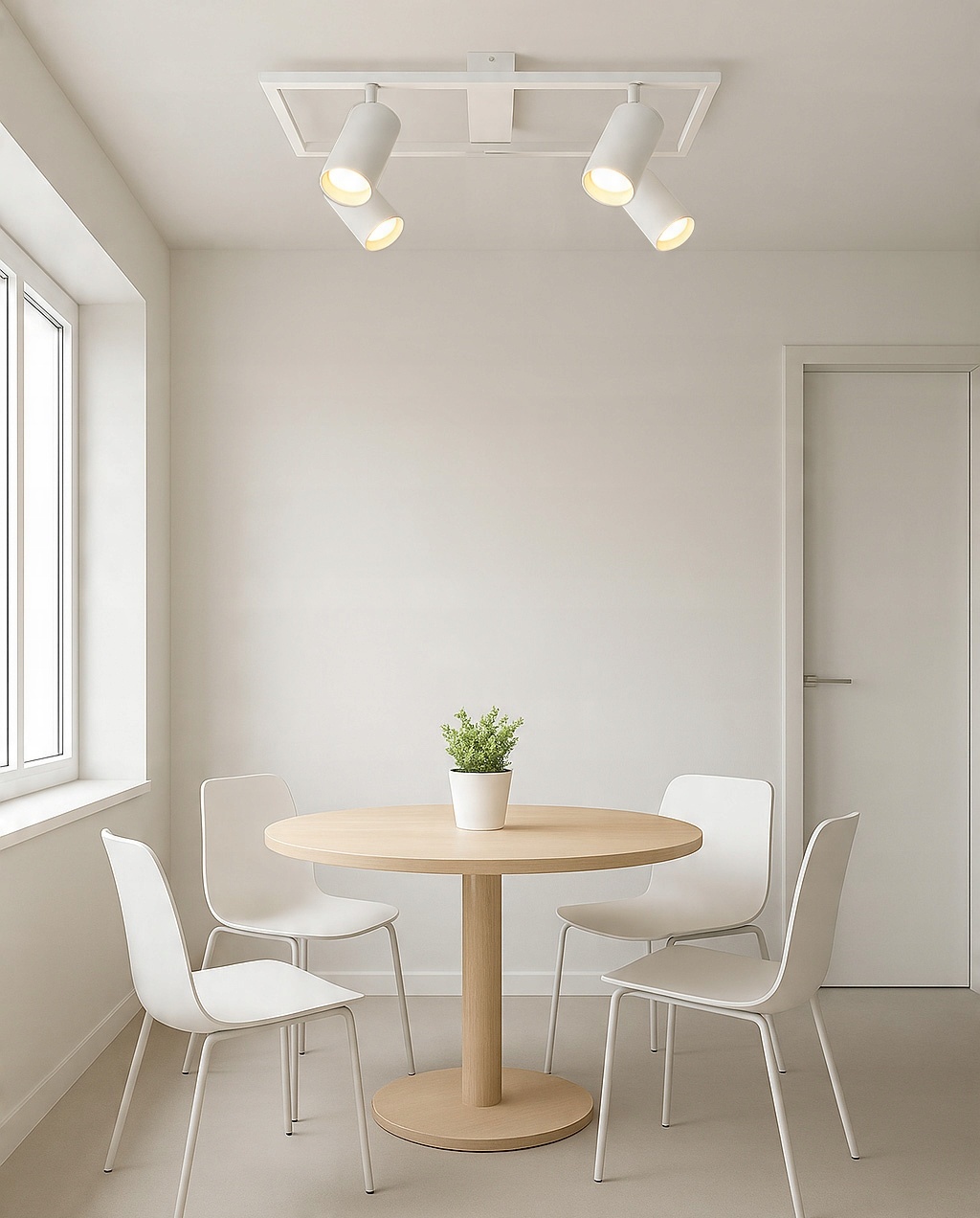 Oświetl swoje wnętrze w wyjątkowym stylu dzięki nowoczesnej lampie sufitowej z regulowanymi reflektorami. Jej minimalistyczny, geometryczny kształt i ponadczasowa biała kolorystyka doskonale wpisują się zarówno w aranżacje nowoczesne, jak i skandynawskie, loftowe czy industrialne.