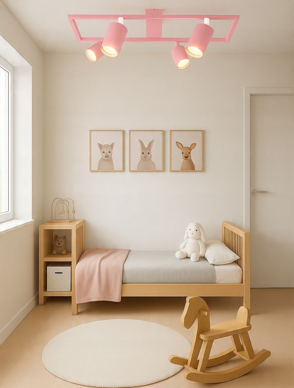 Dzięki ruchomym reflektorom możesz swobodnie skierować światło w wybrane miejsca – na biurko, łóżeczko, półki lub kącik zabaw.