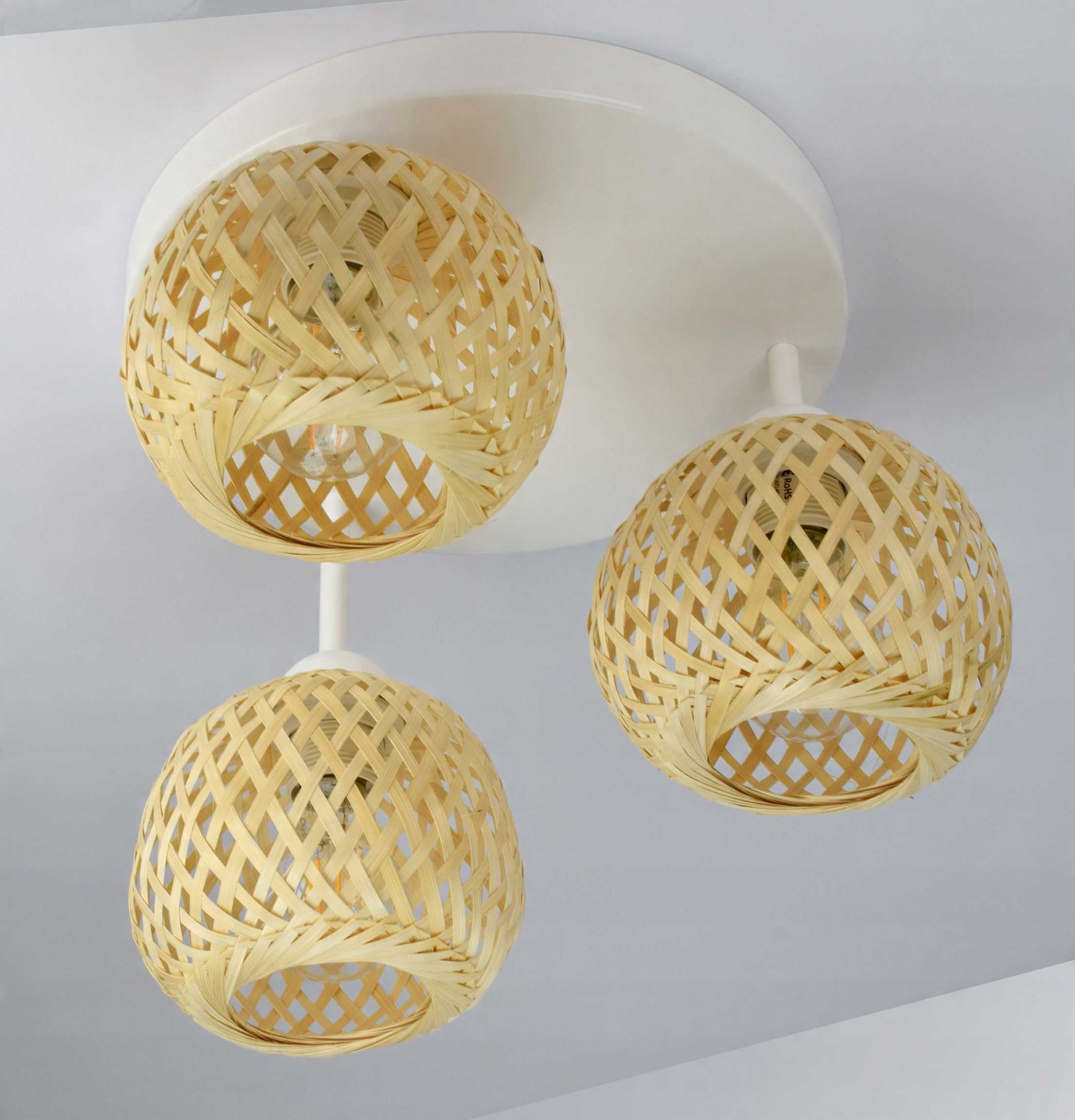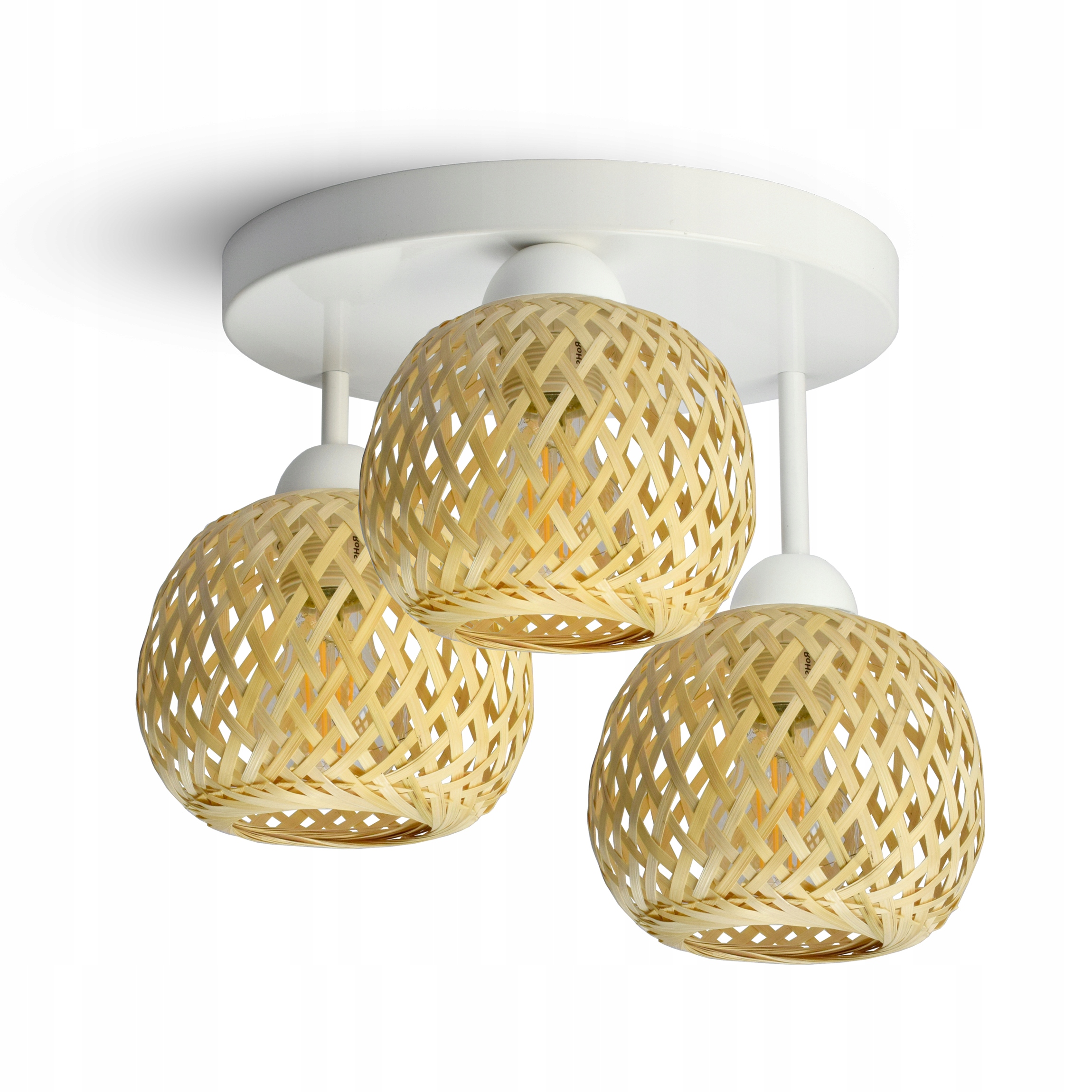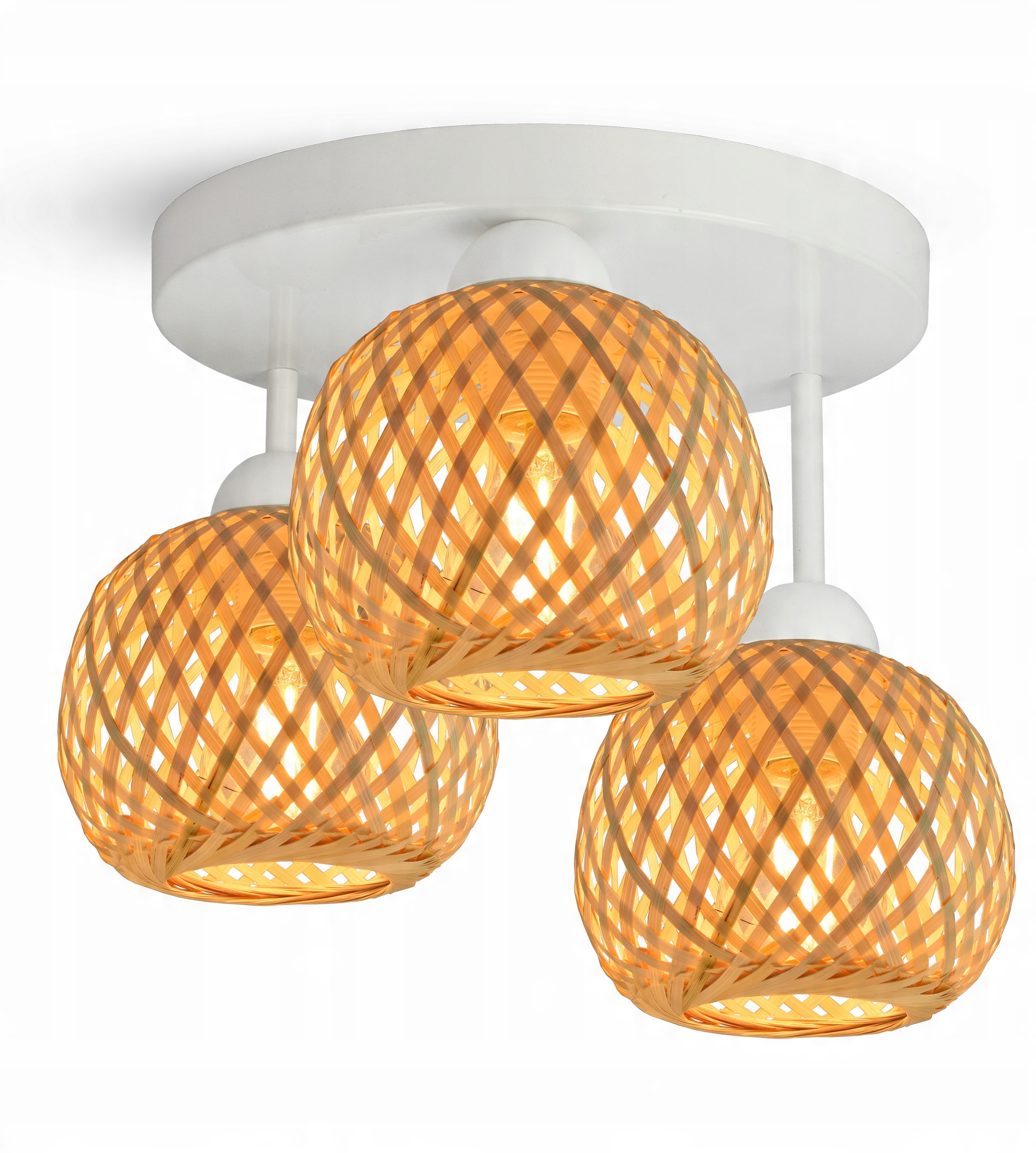 Lampa Sufitowa Plafon Bambusowa Pleciona BOHO Naturalna 583-ER3 LED Biała