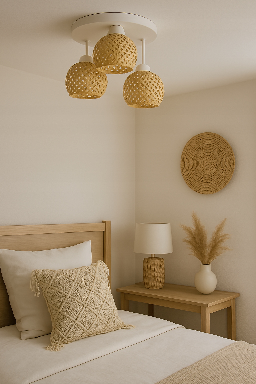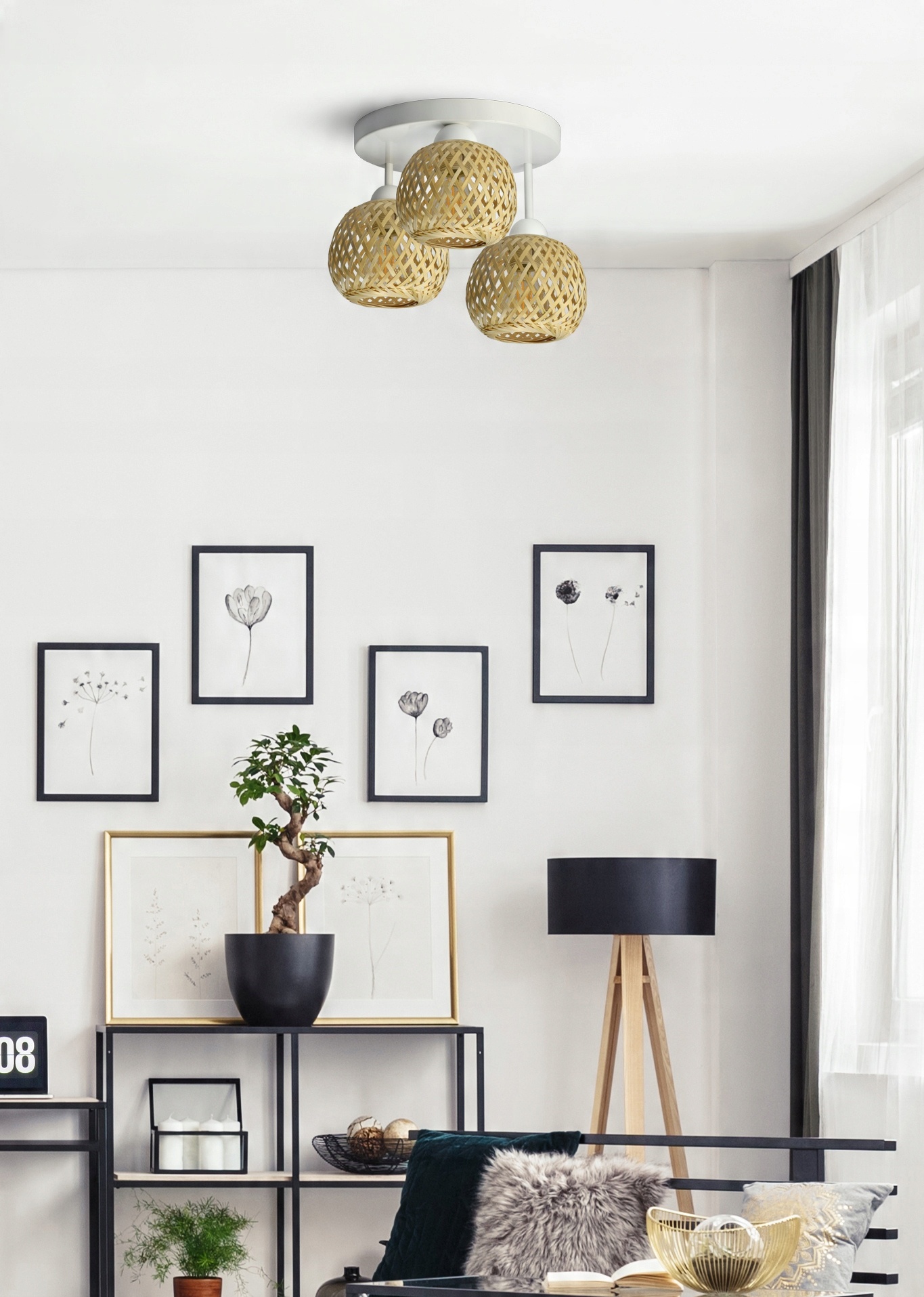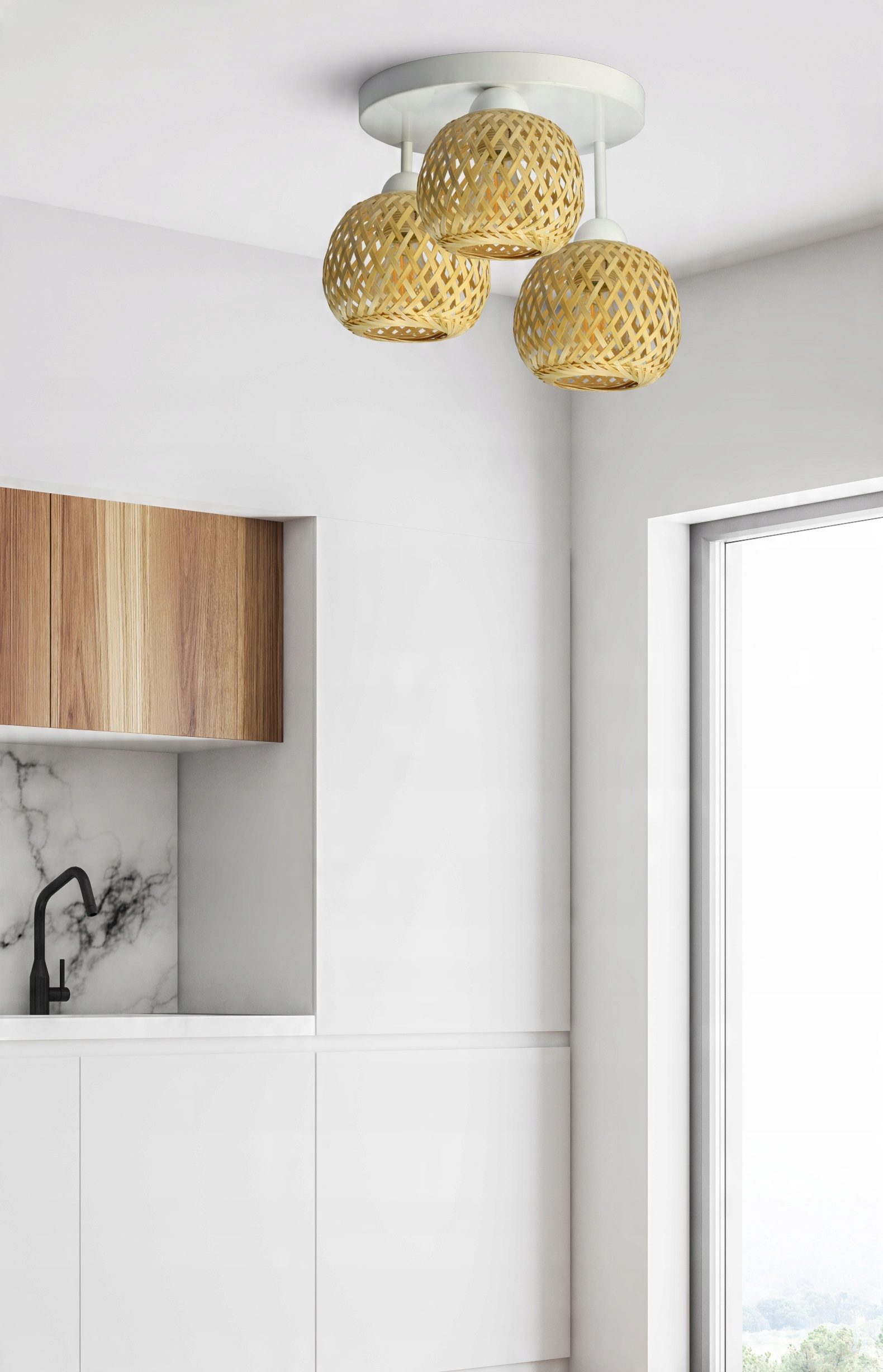 Lampa Sufitowa Plafon Bambusowa Pleciona BOHO Naturalna 583-ER3 LED Biała