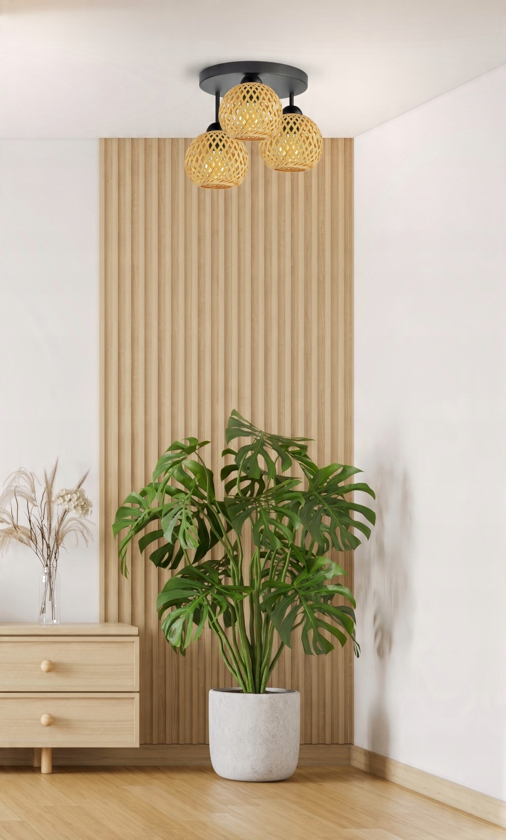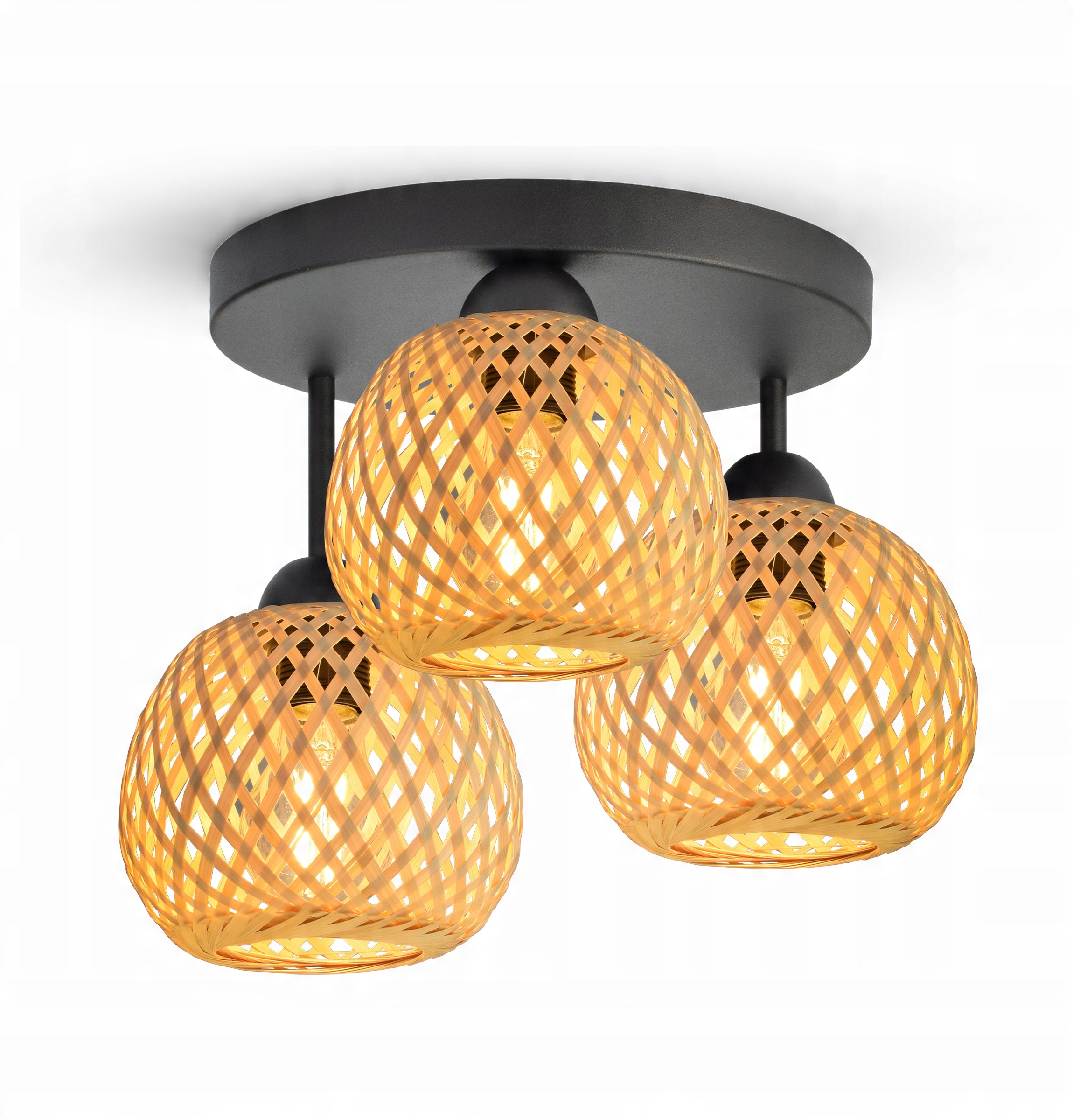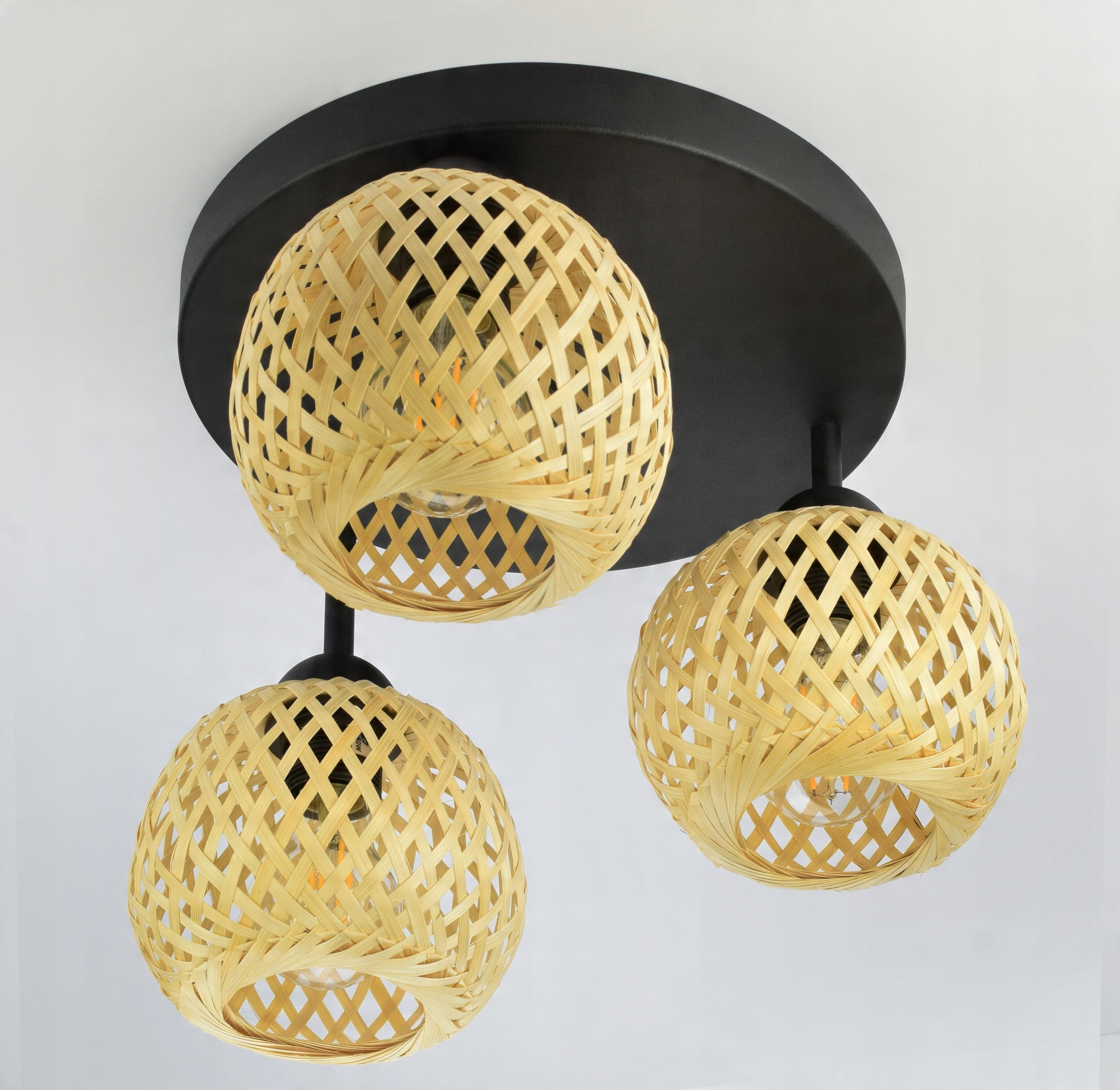Lampa Sufitowa Plafon Bambusowa Pleciona BOHO Naturalna 584-ER3 LED Czarna
