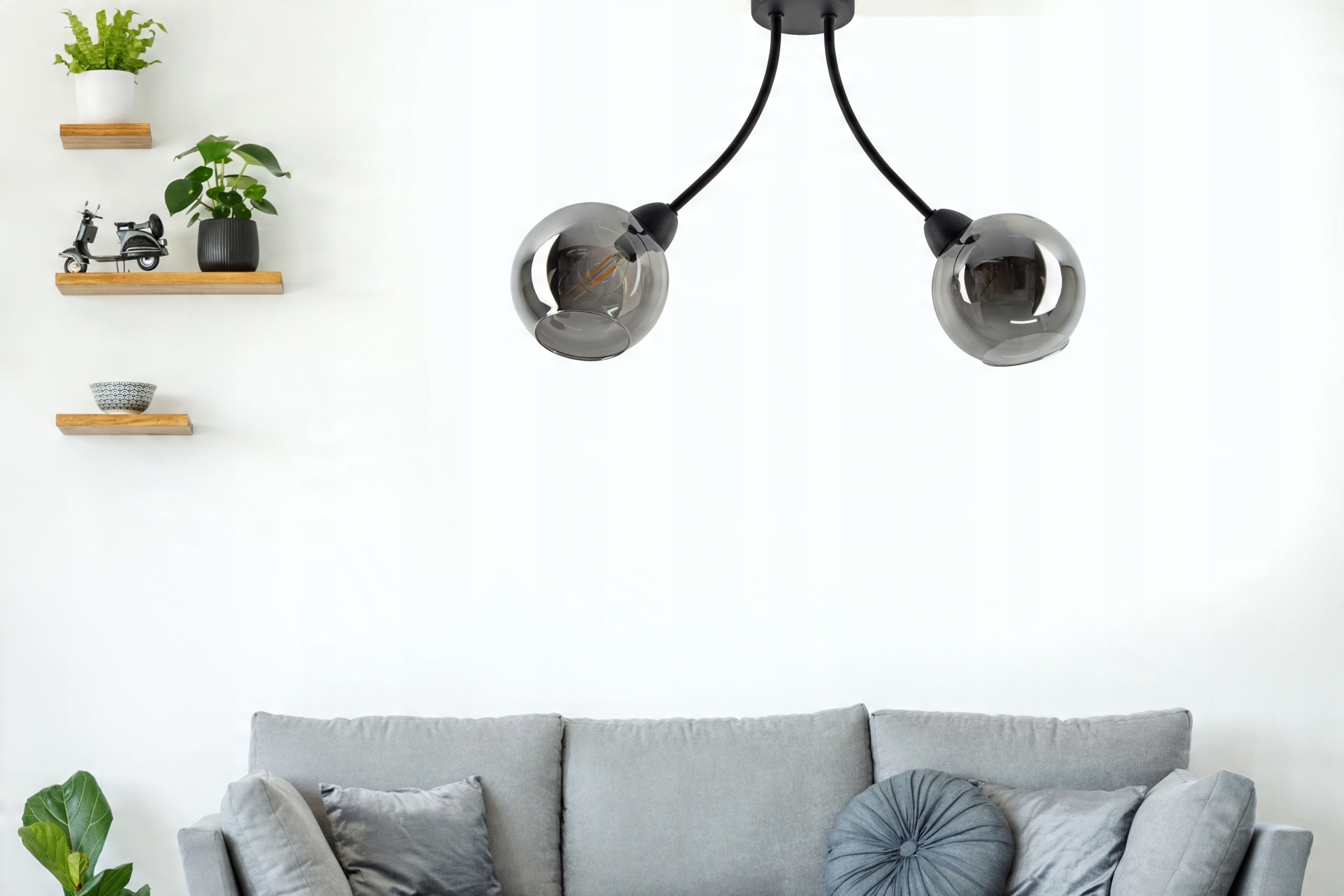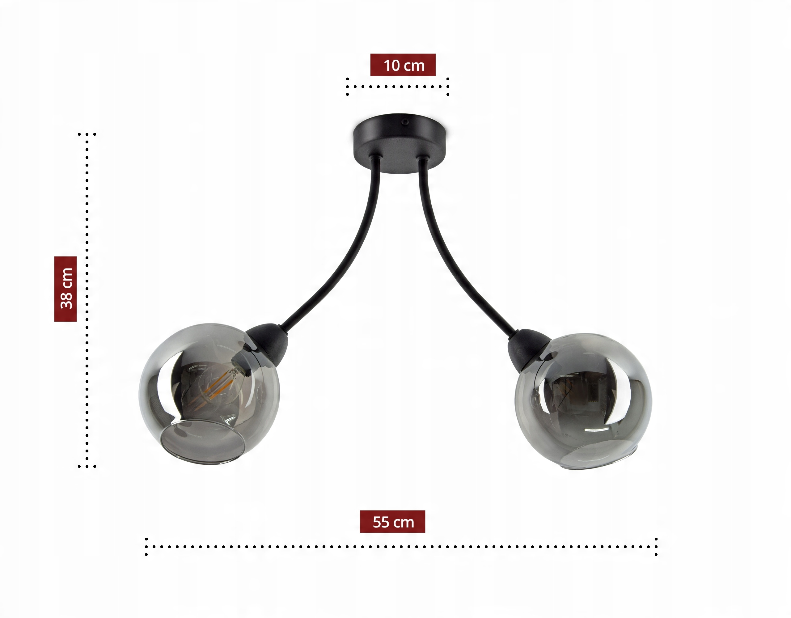 Lampa Sufitowa Plafon Dwie Szklane Kule Grafit LED