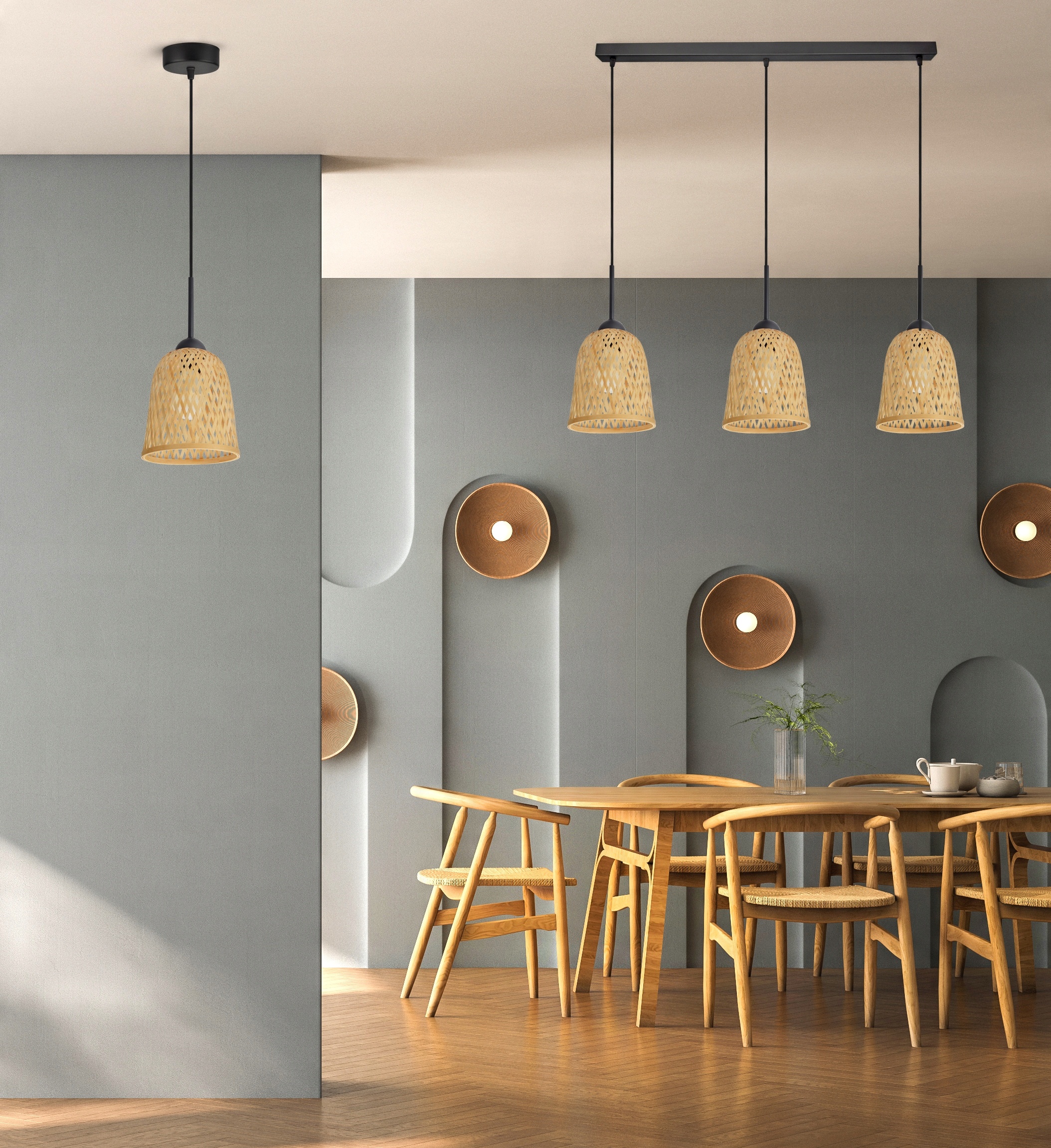 Lampa Sufitowa Wisząca Bambusowa Pleciona BOHO Naturalna 582-BZ3 LED E27
