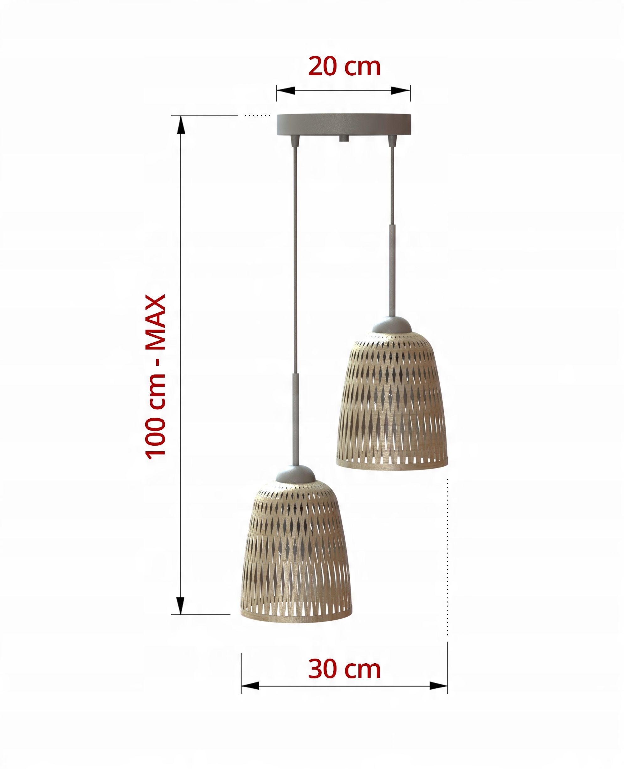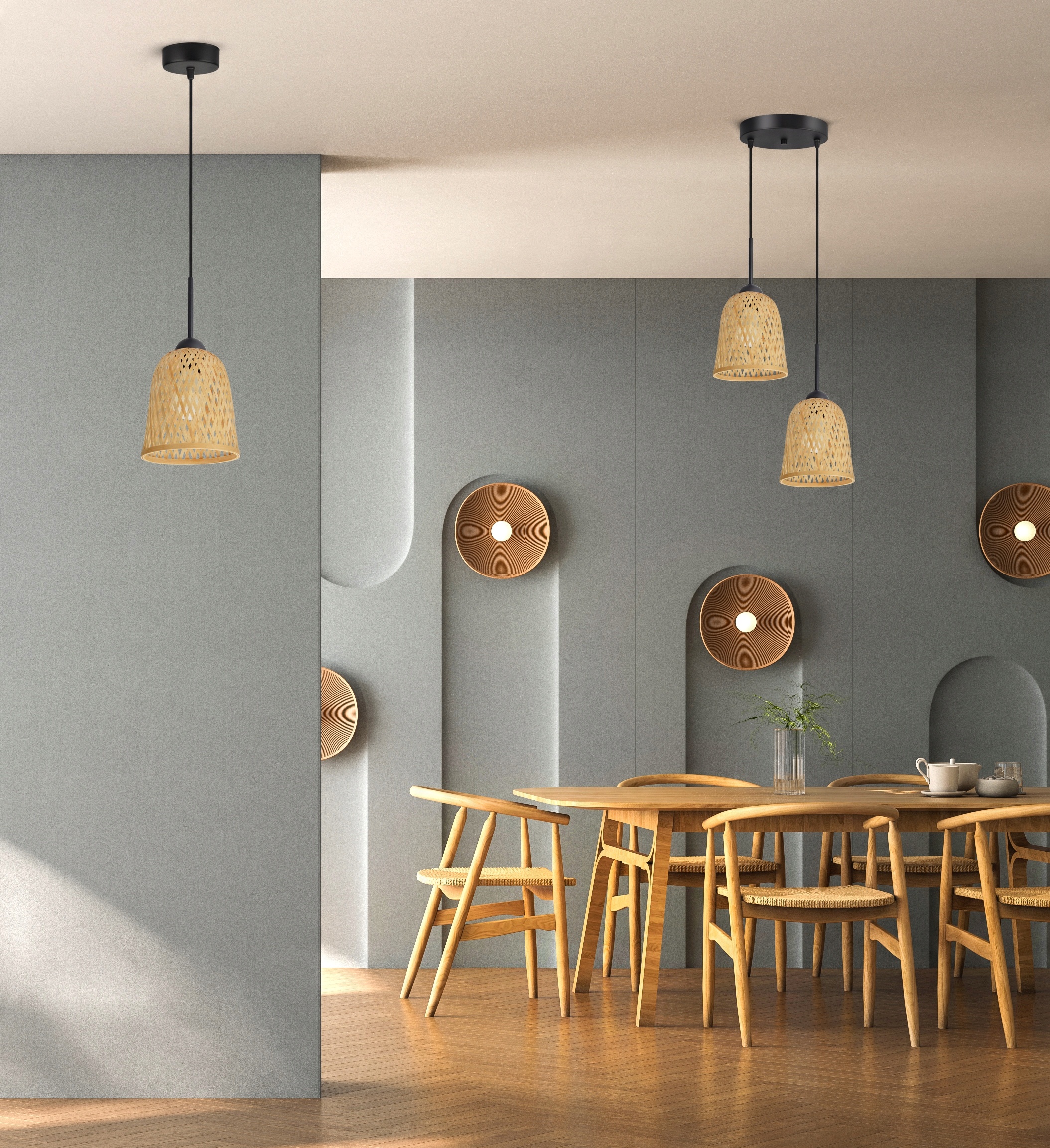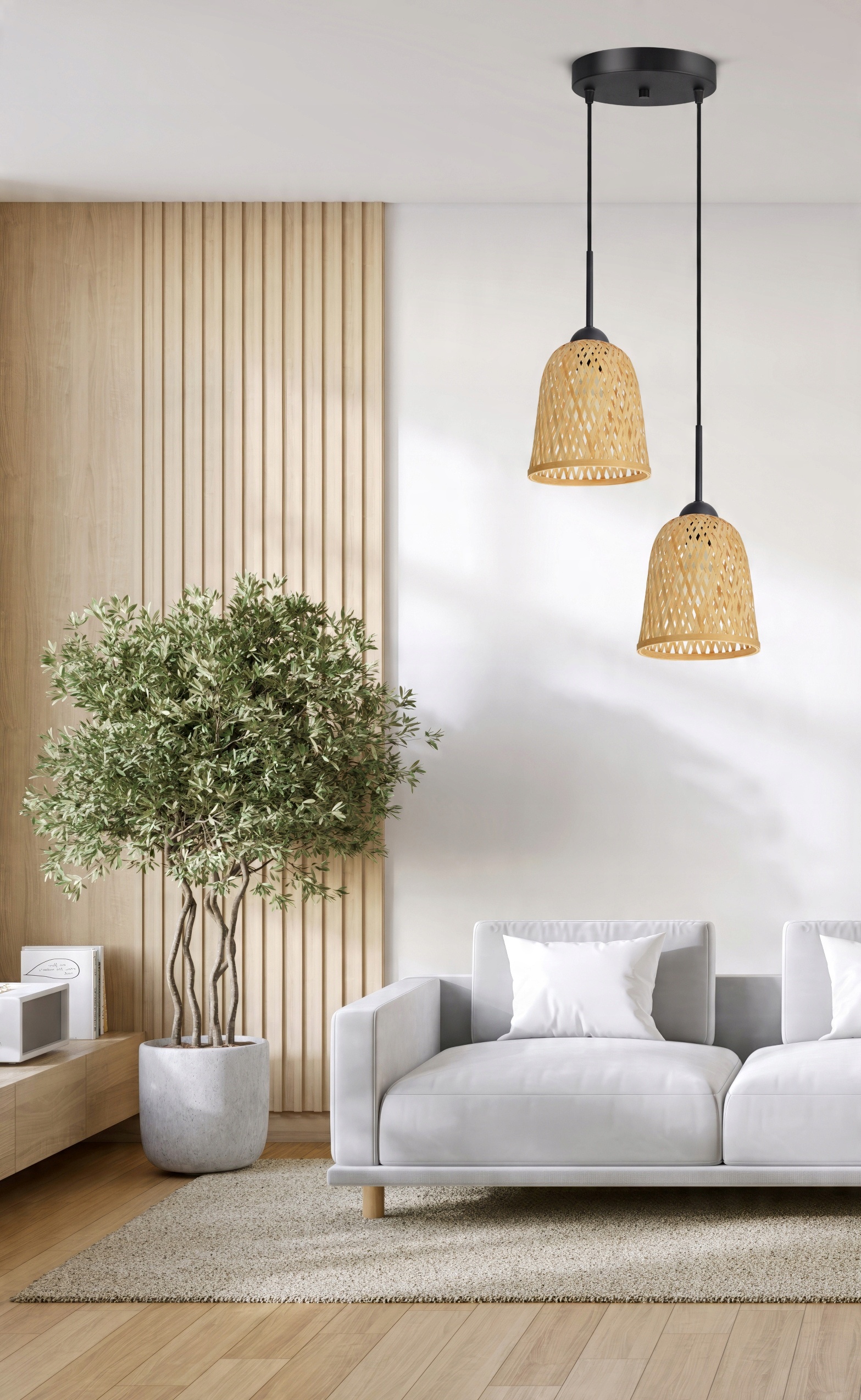 Lampa Sufitowa Wisząca Bambusowa Pleciona BOHO Naturalna 582-EZ2 LED E27