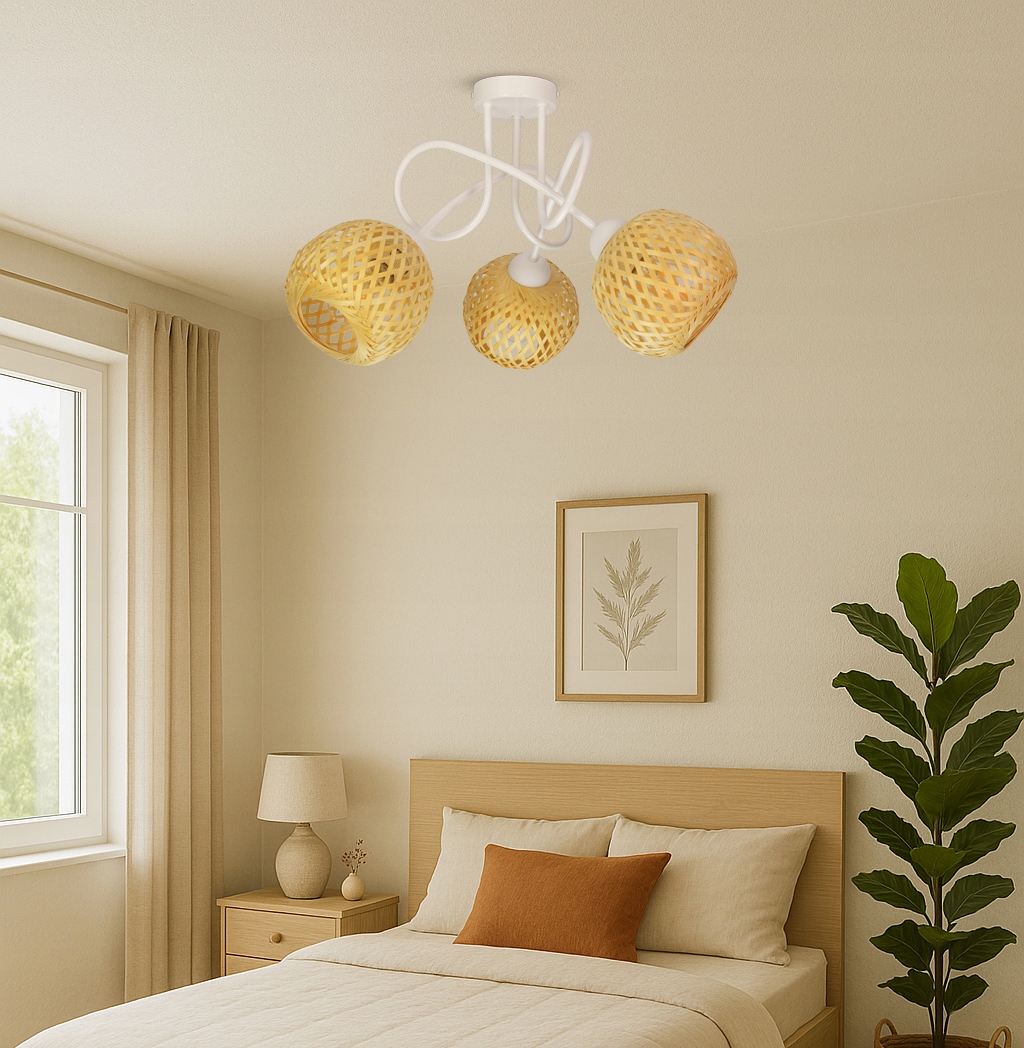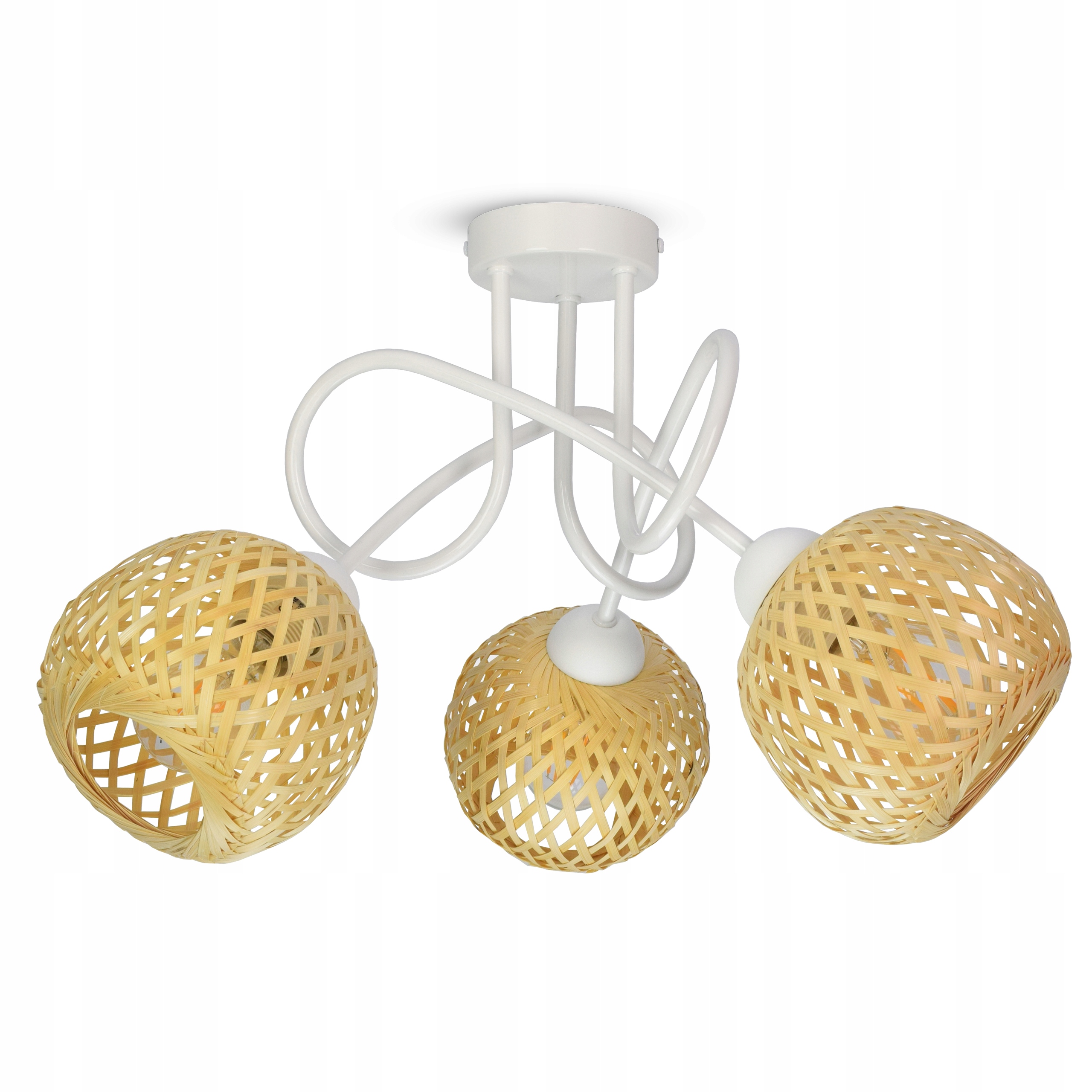 Lampa Sufitowa Wisząca Bambusowa Pleciona BOHO Naturalna 583-PE3 LED Biała