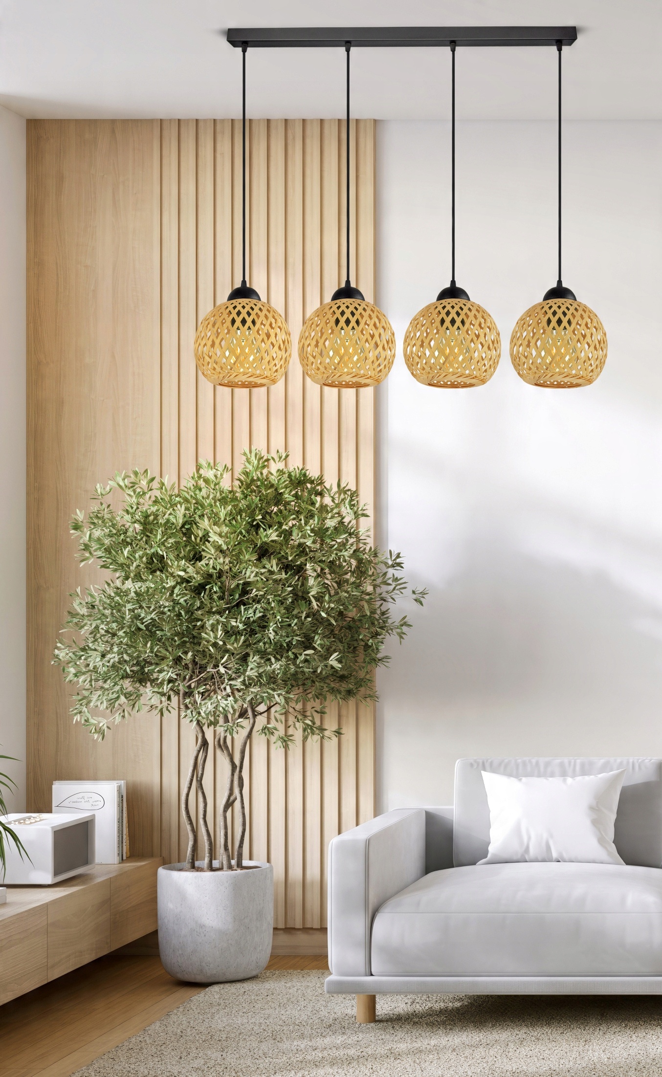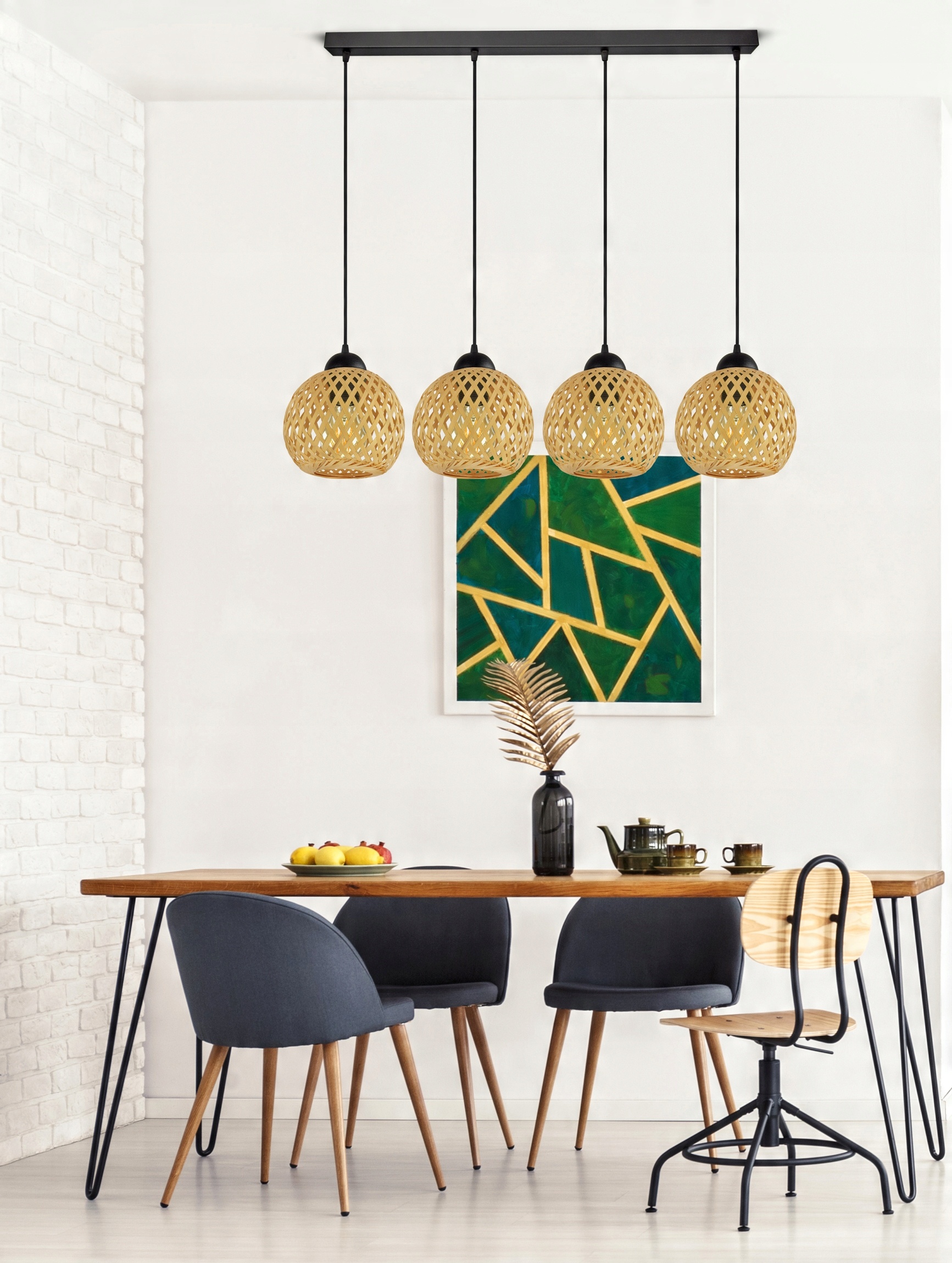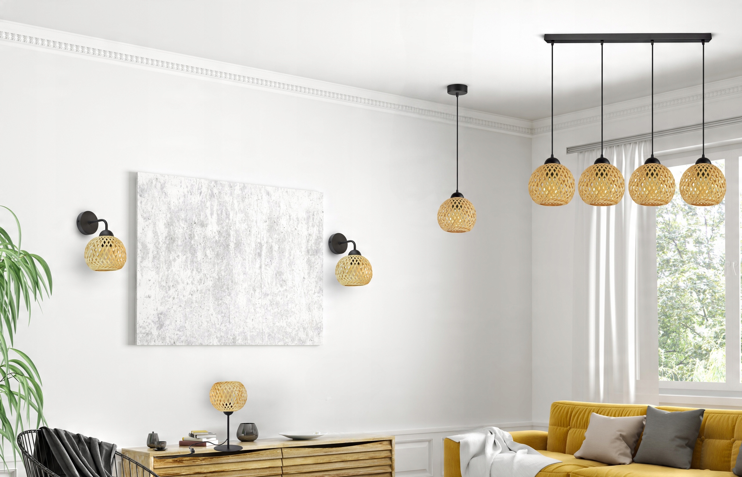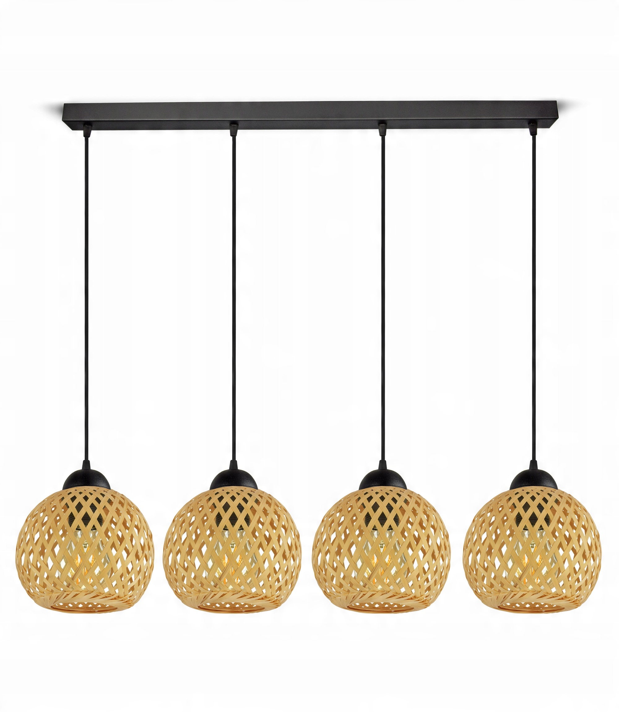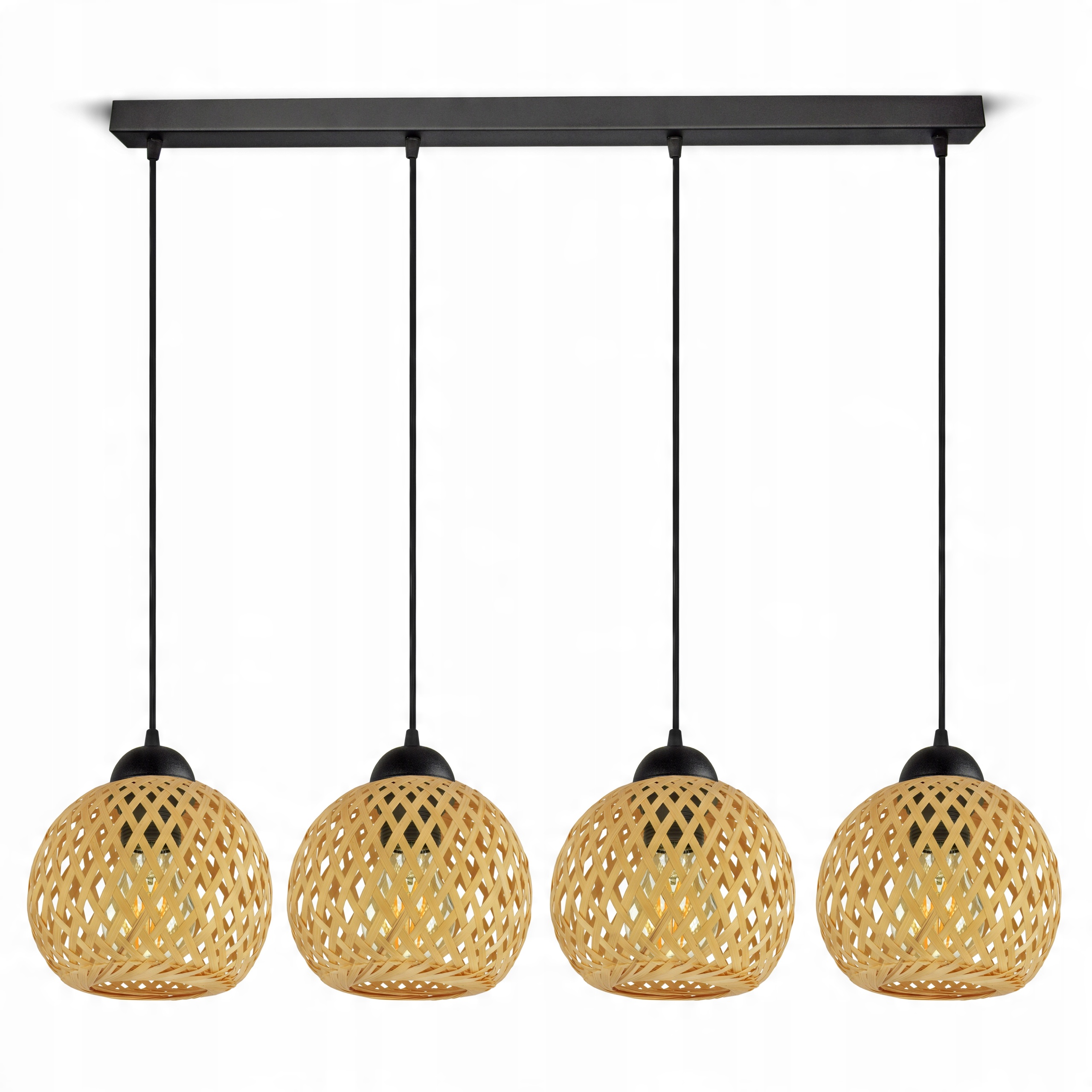 Lampa Sufitowa Wisząca Bambusowa Pleciona BOHO Naturalna 584-BZ4 LED Czarna