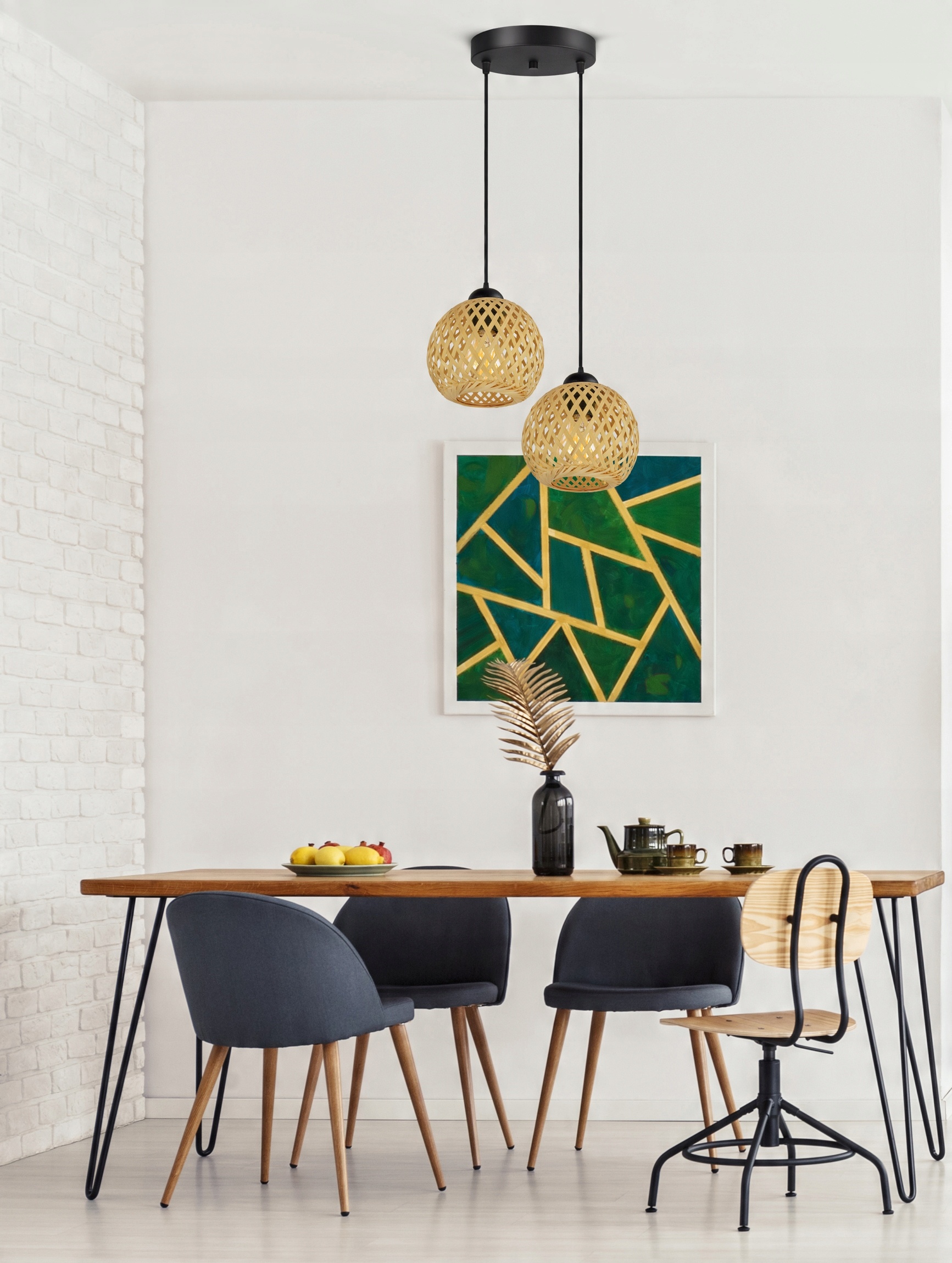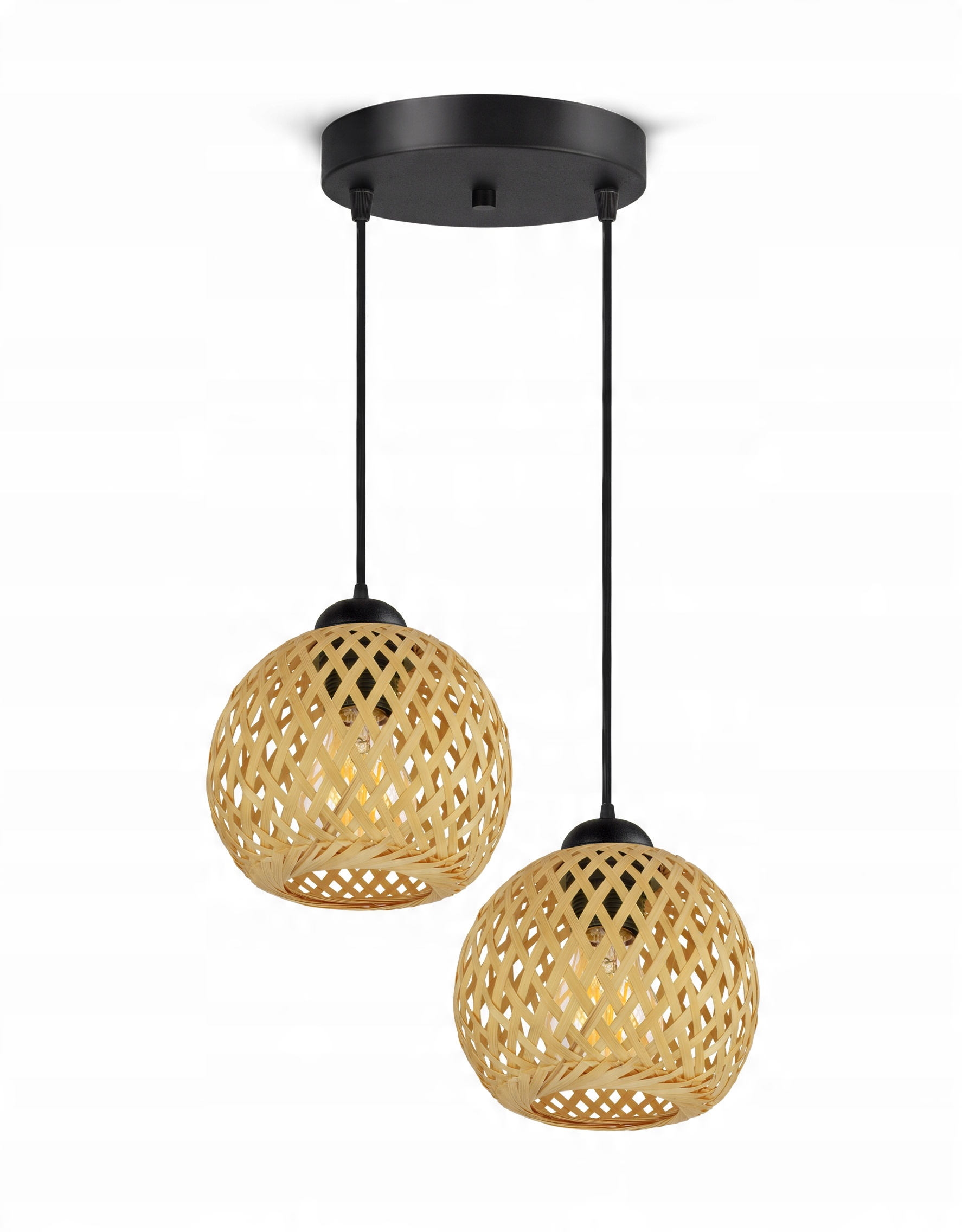 Lampa Sufitowa Wisząca Bambusowa Pleciona BOHO Naturalna 584-EZ2 LED Czarna