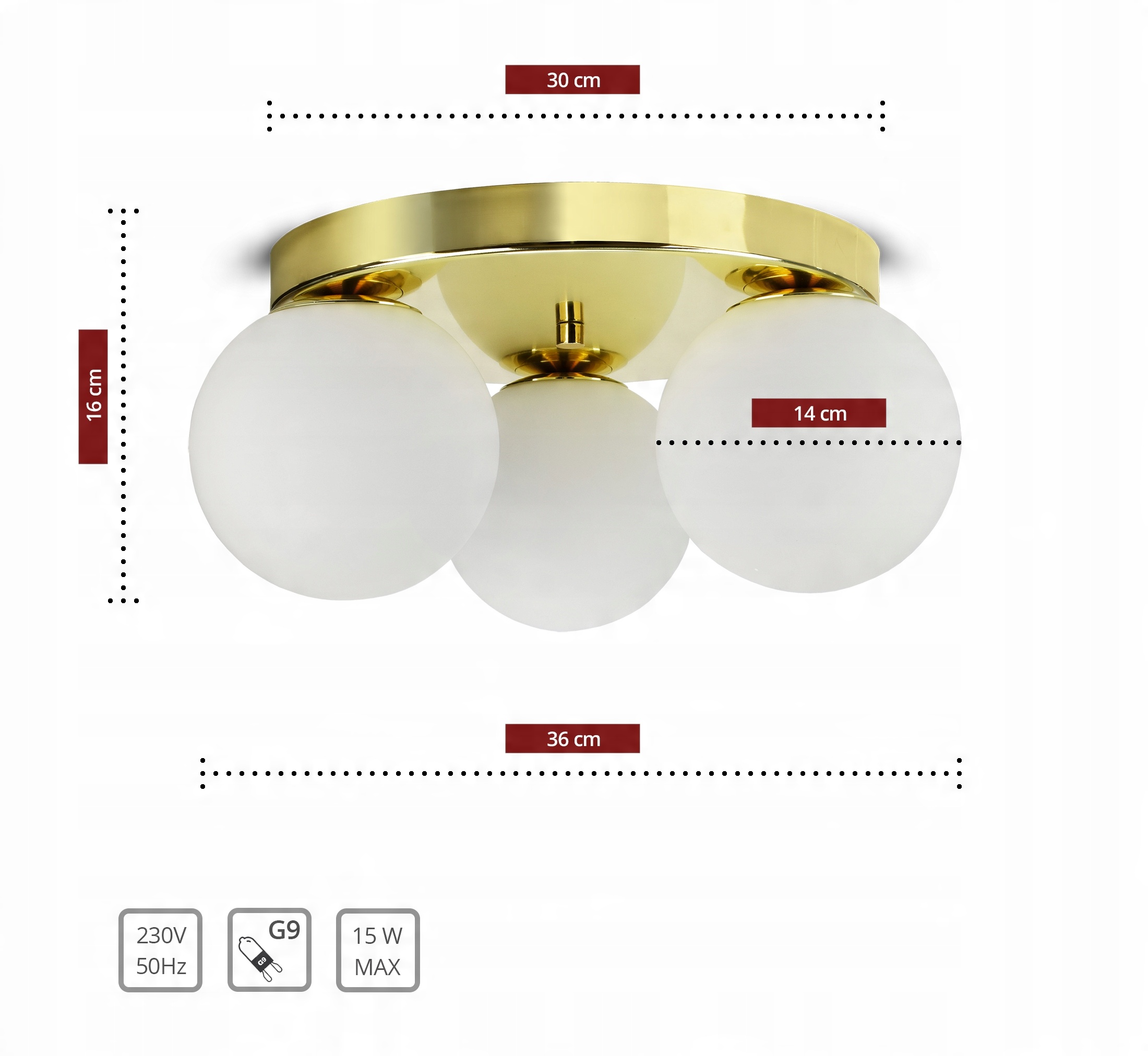 Zestaw nie zawiera żarówek, a także kołków rozporowych (należy dobrać odpowiednie do sufitu).