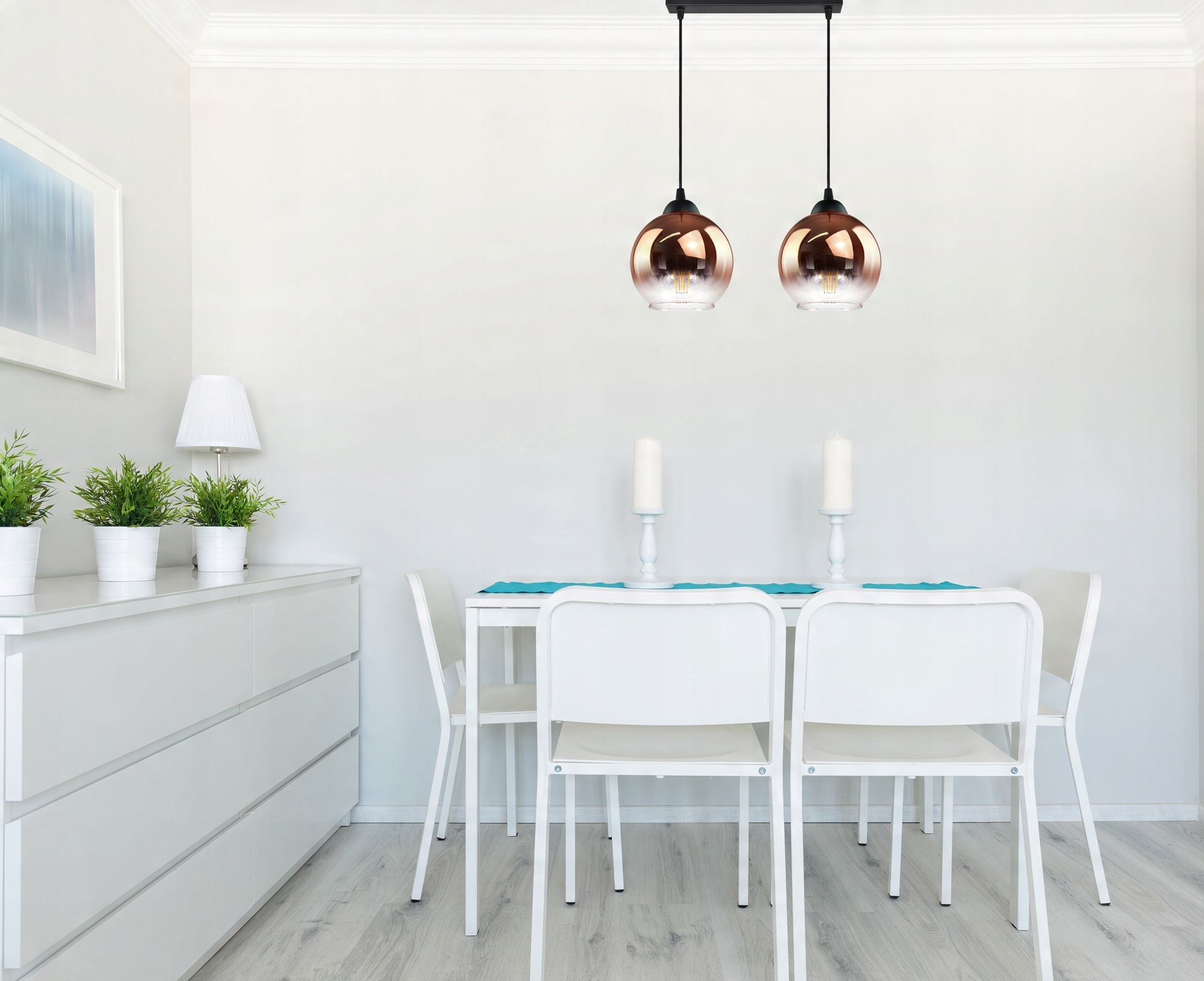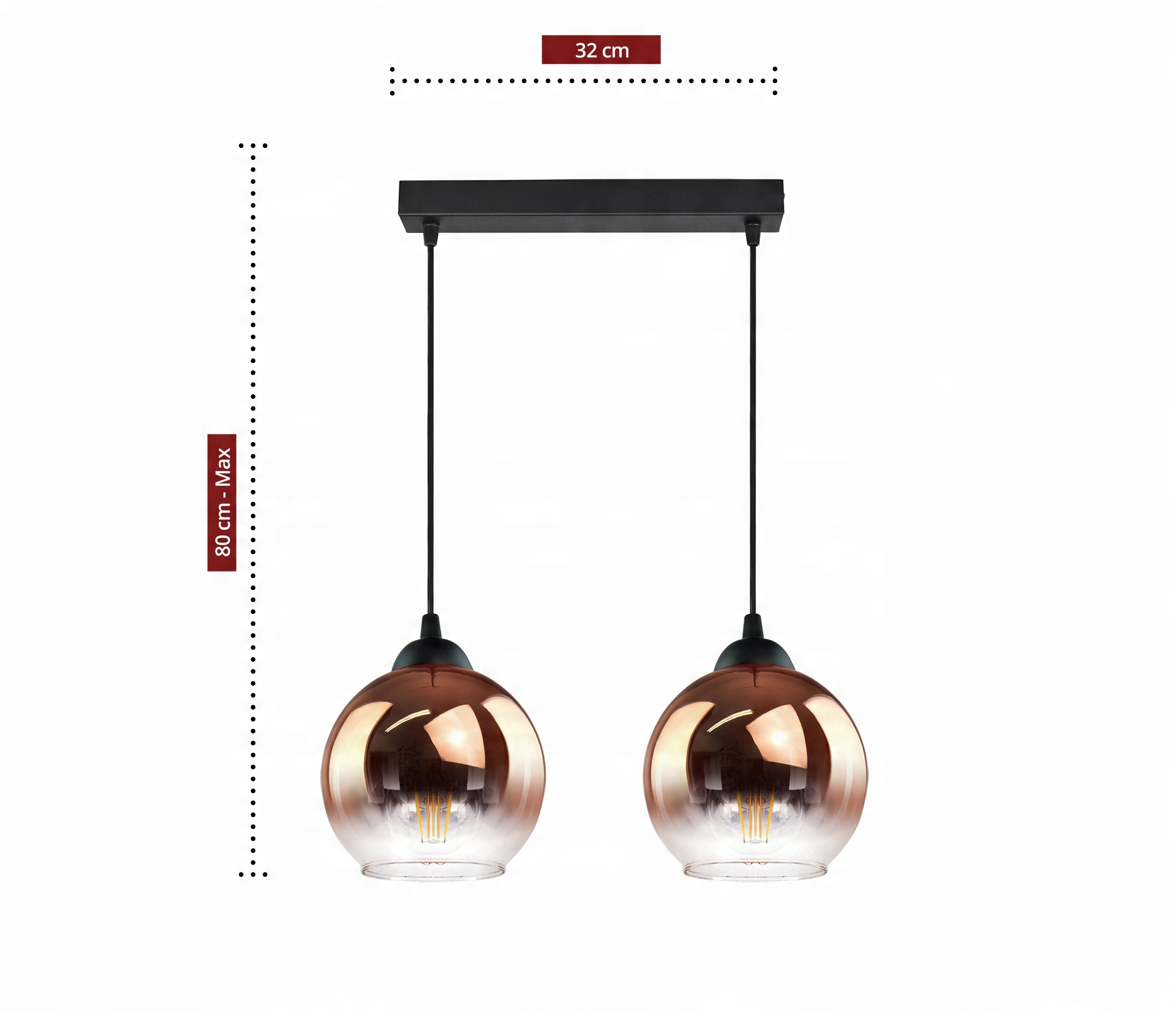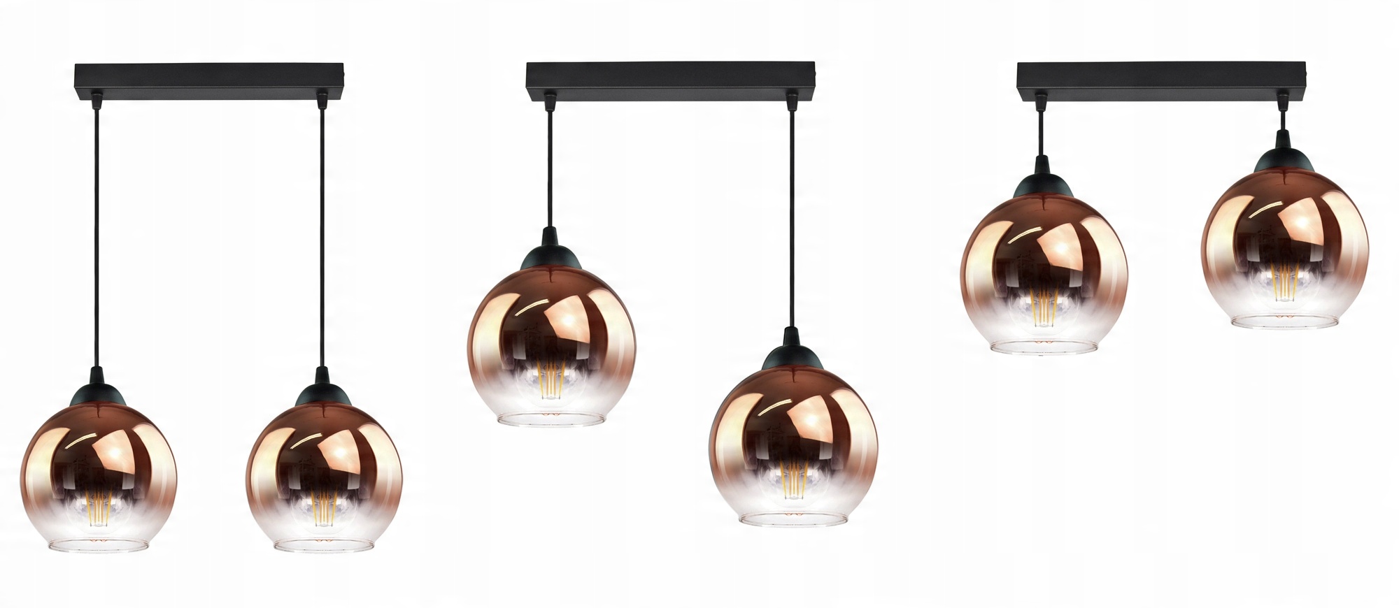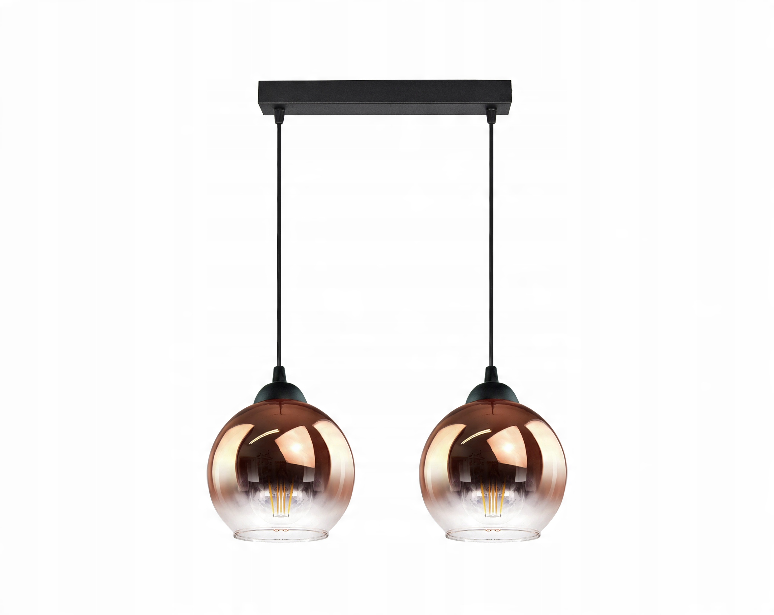Lampa Wisząca Dwie Kule Miedziane Transparentne