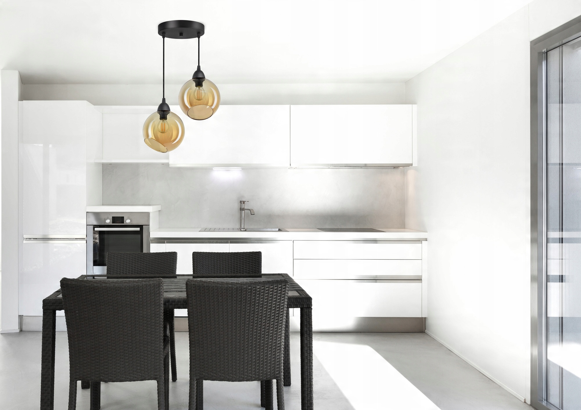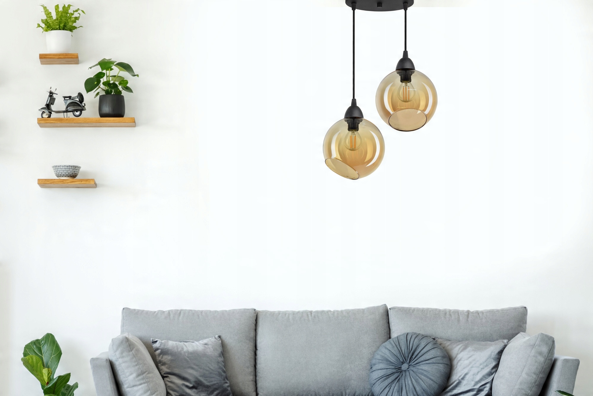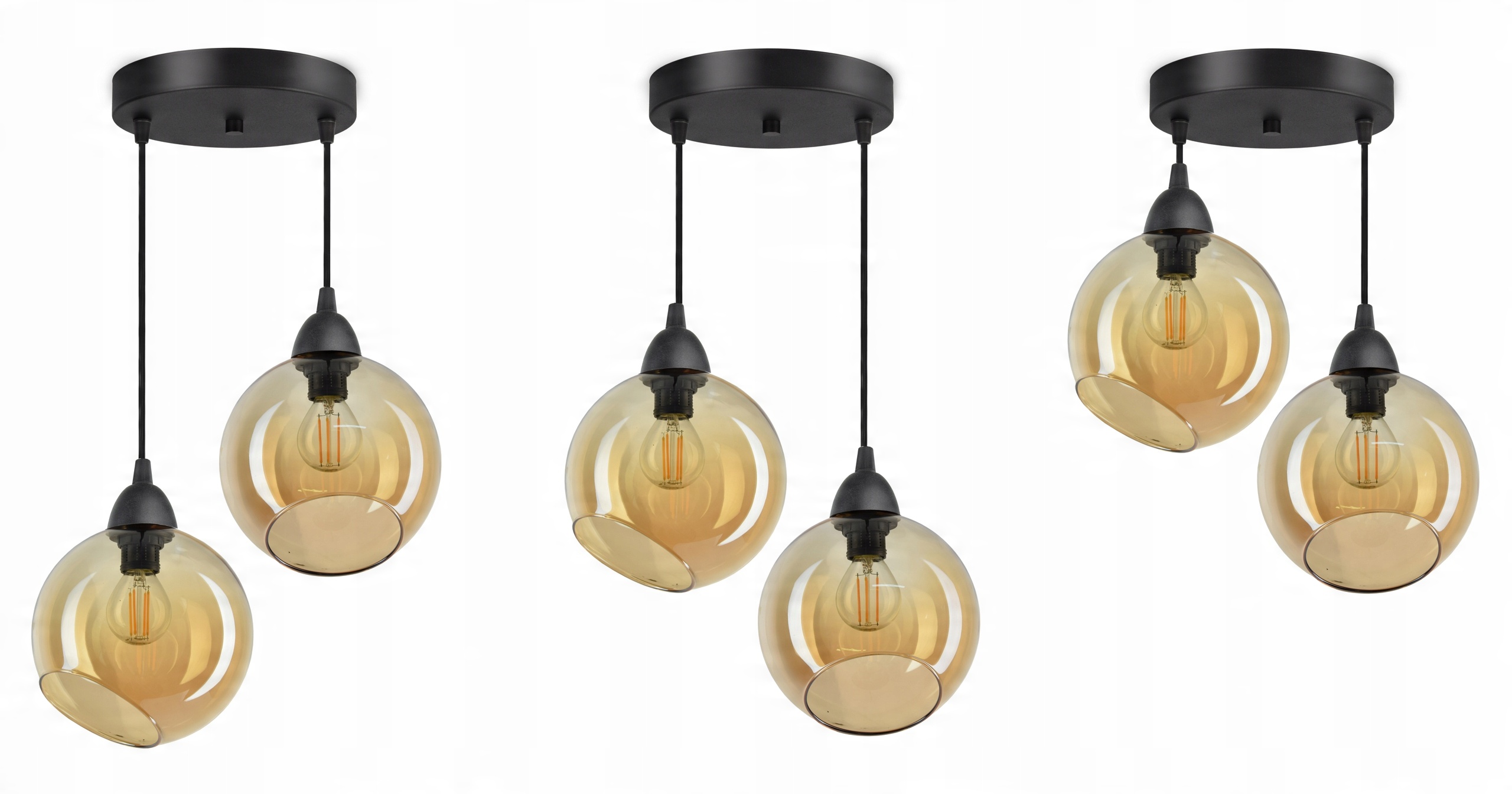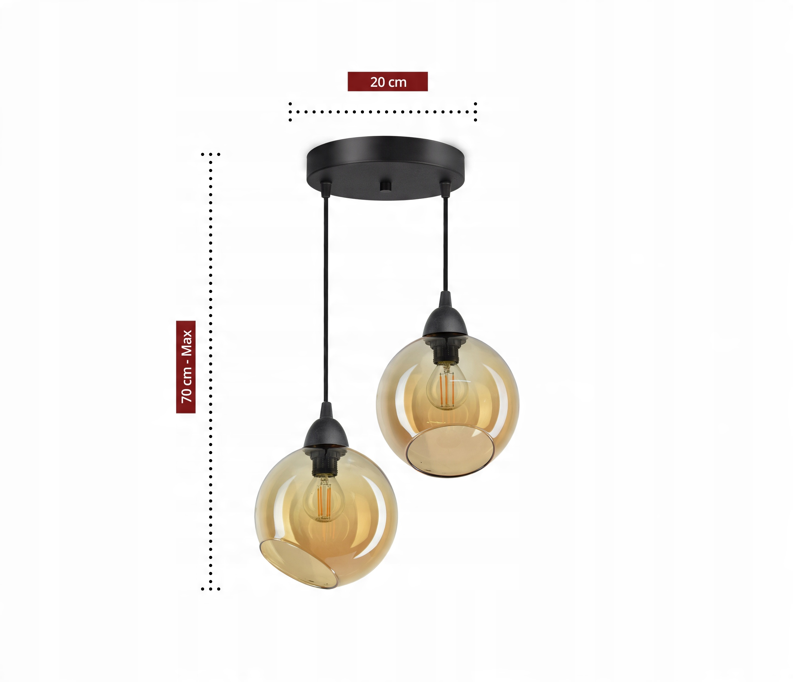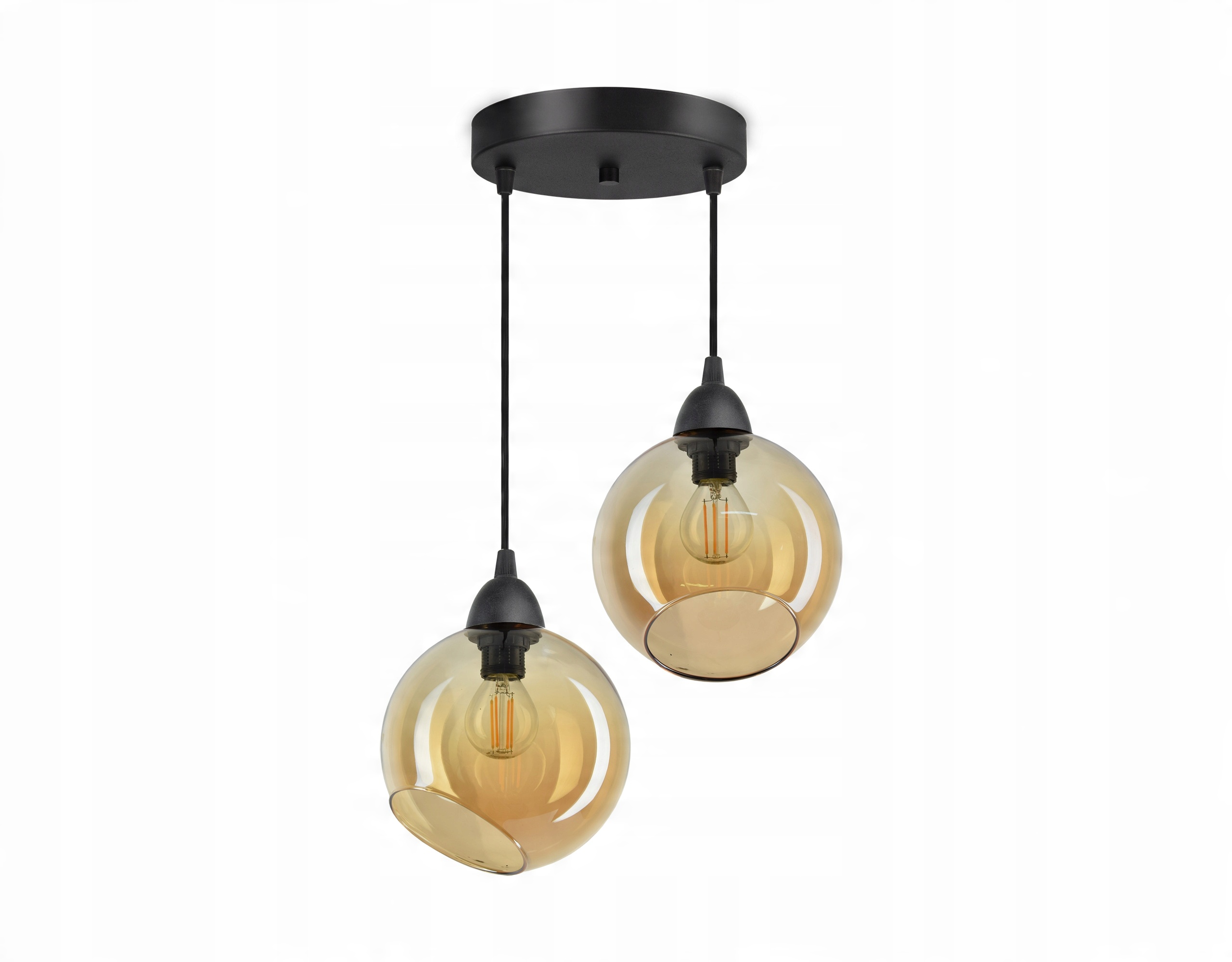 Lampa Wisząca Sufitowa Dwie Szklane Kule Miód LED
