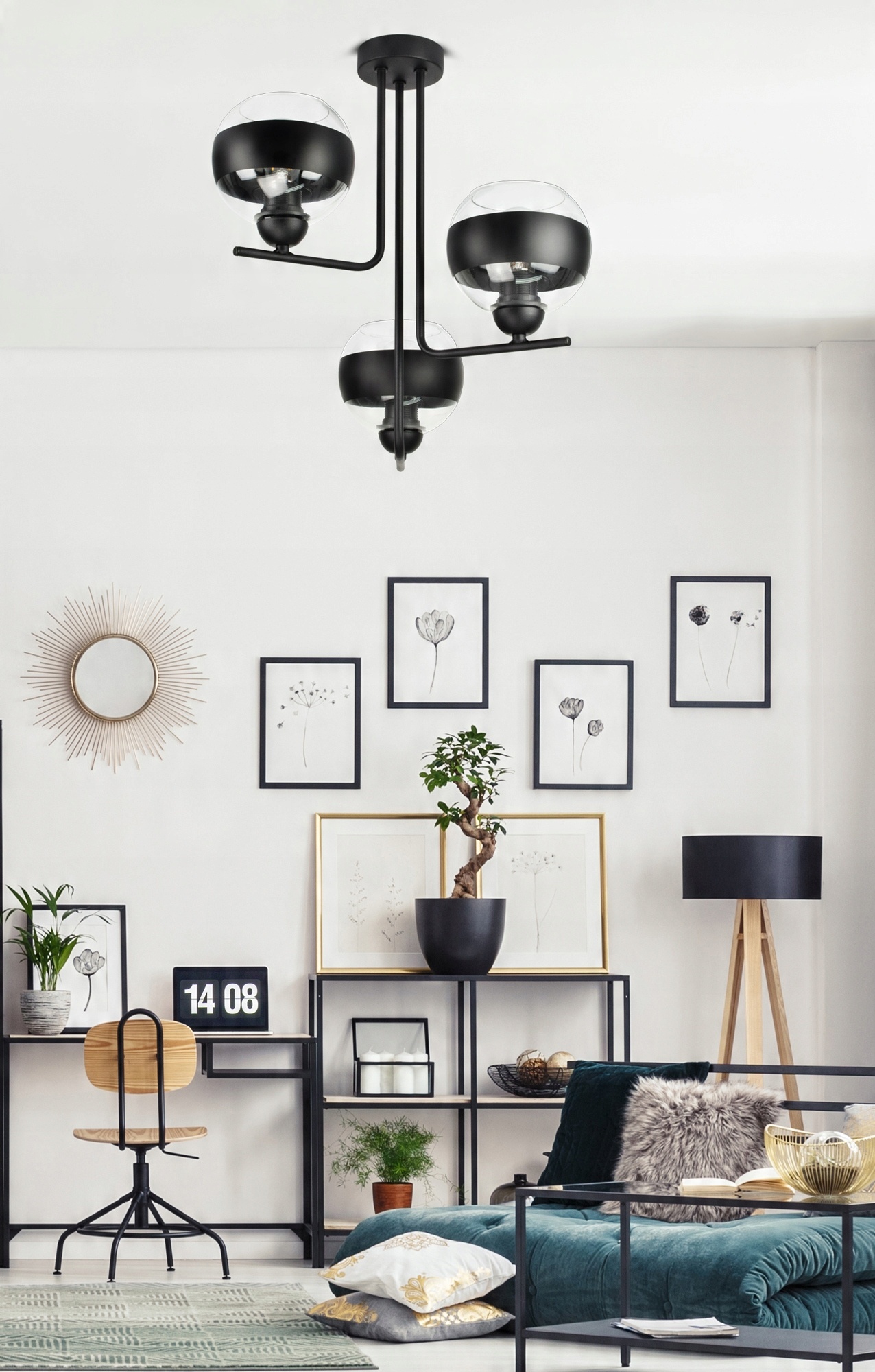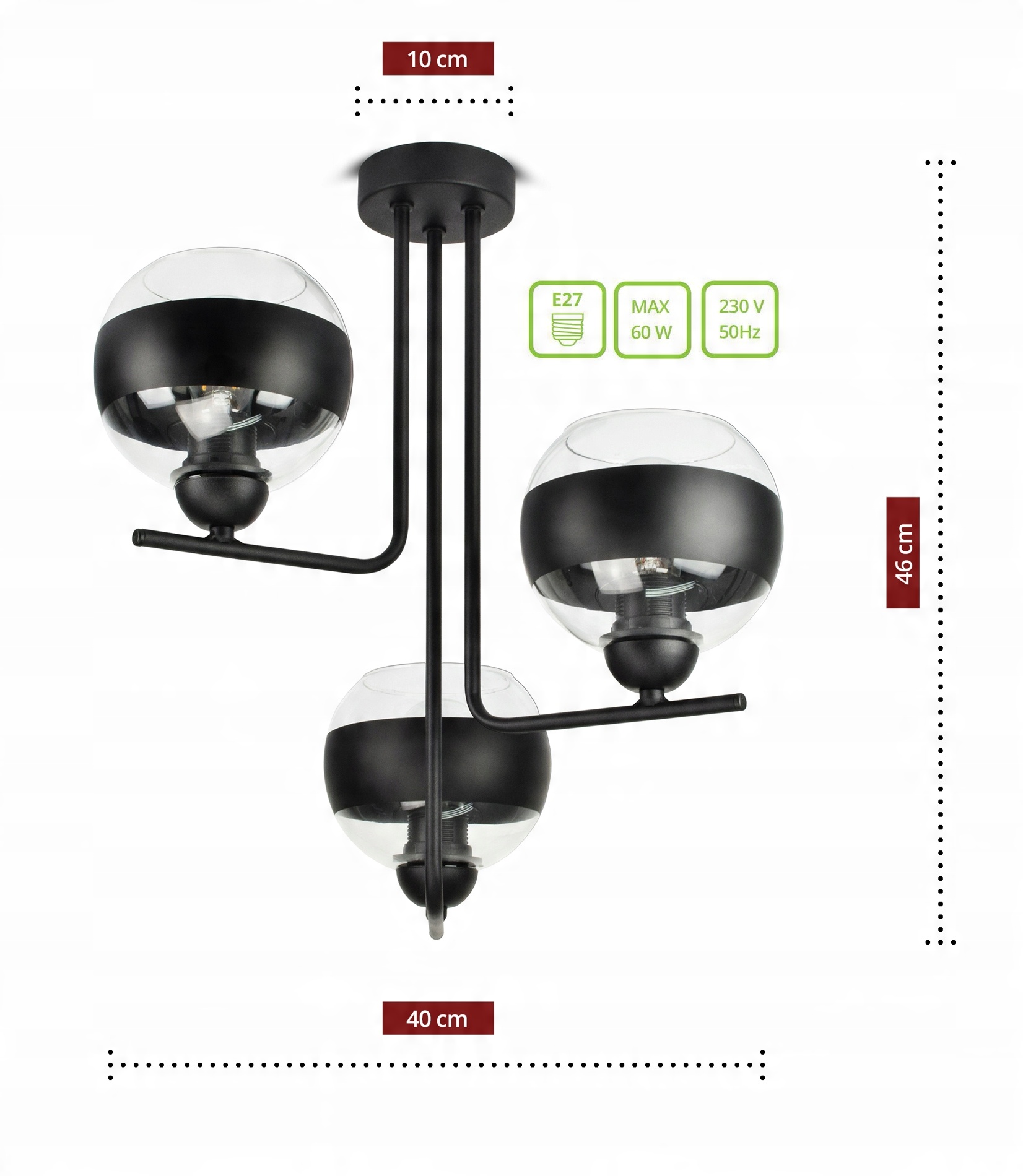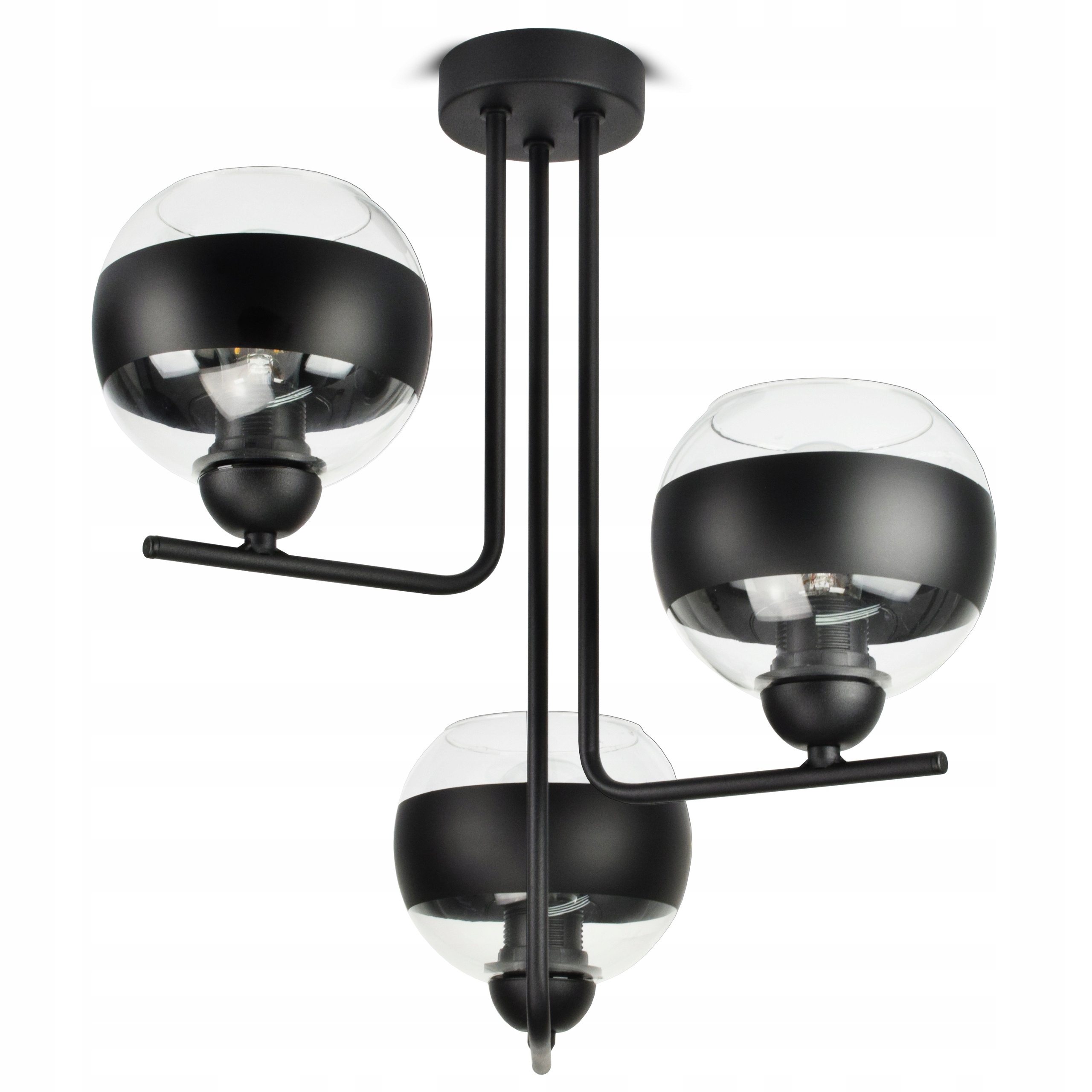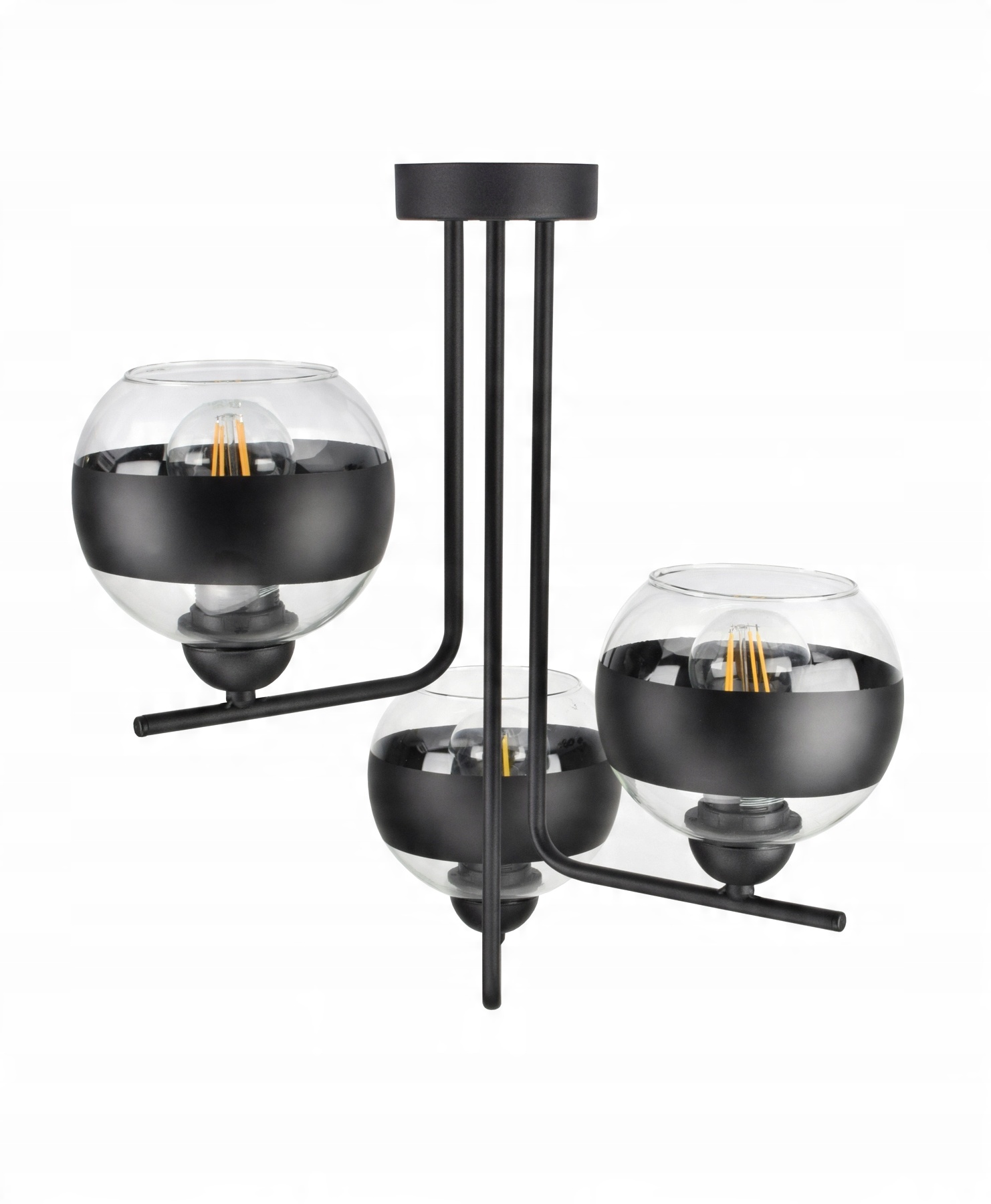 ✅ Lampa wyposażona w szklane klosze w kształcie kuli z Czarnym pasem w części centralnej.