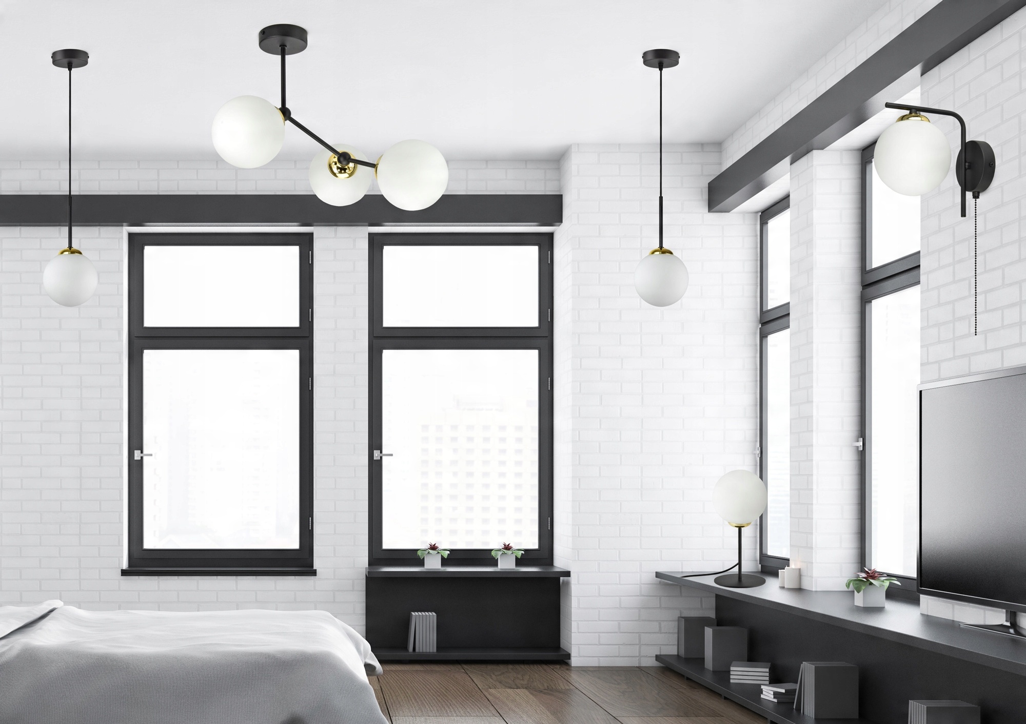 LAMPA WISZĄCA SUFITOWA ŻYRANDOL Czarna ZŁOTA KULA