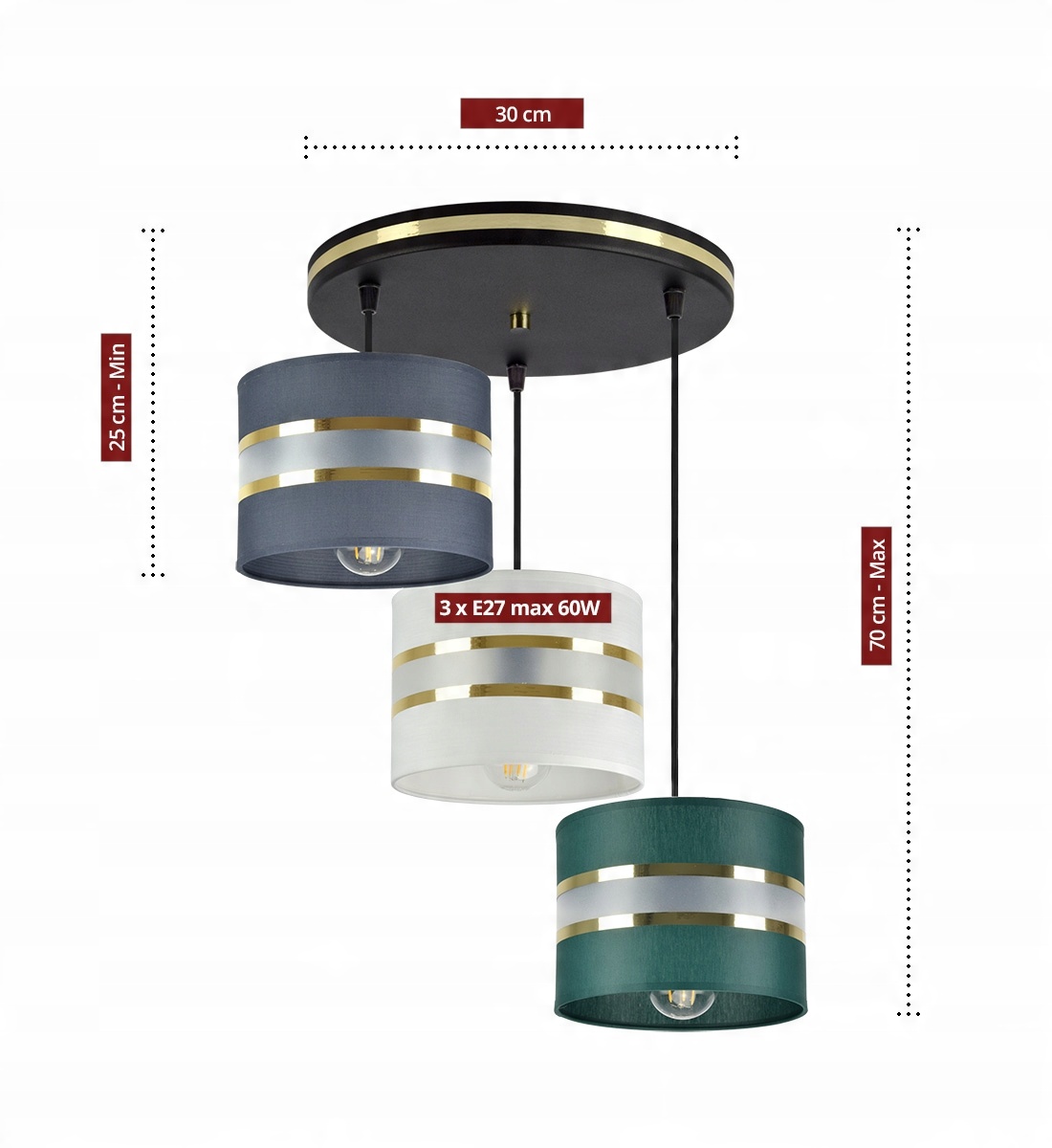 Konstrukcja lampy umożliwia regulację wysokości każdego klosza (przed montażem).