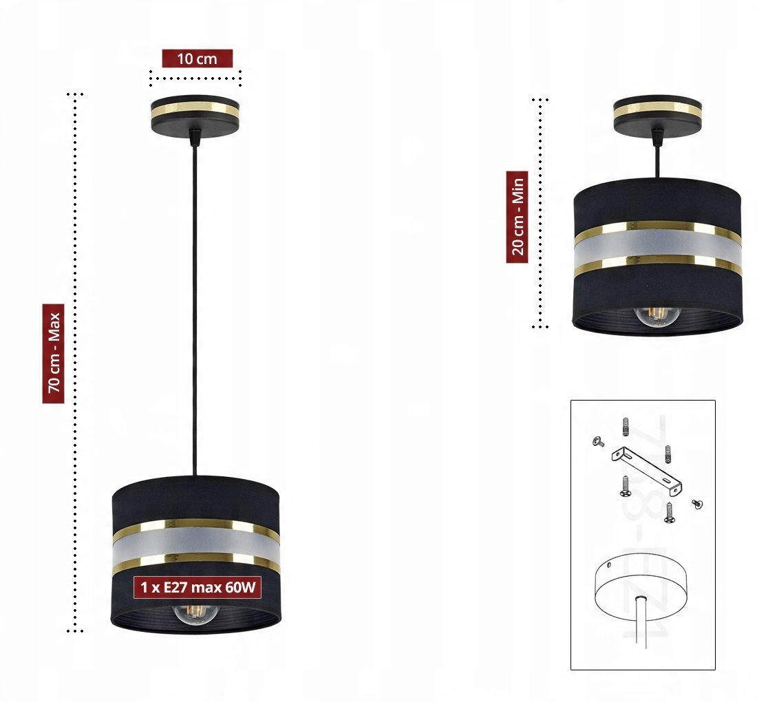 - Źródło światła: E-27 - zalecane LED lub świetlówki kompaktowe