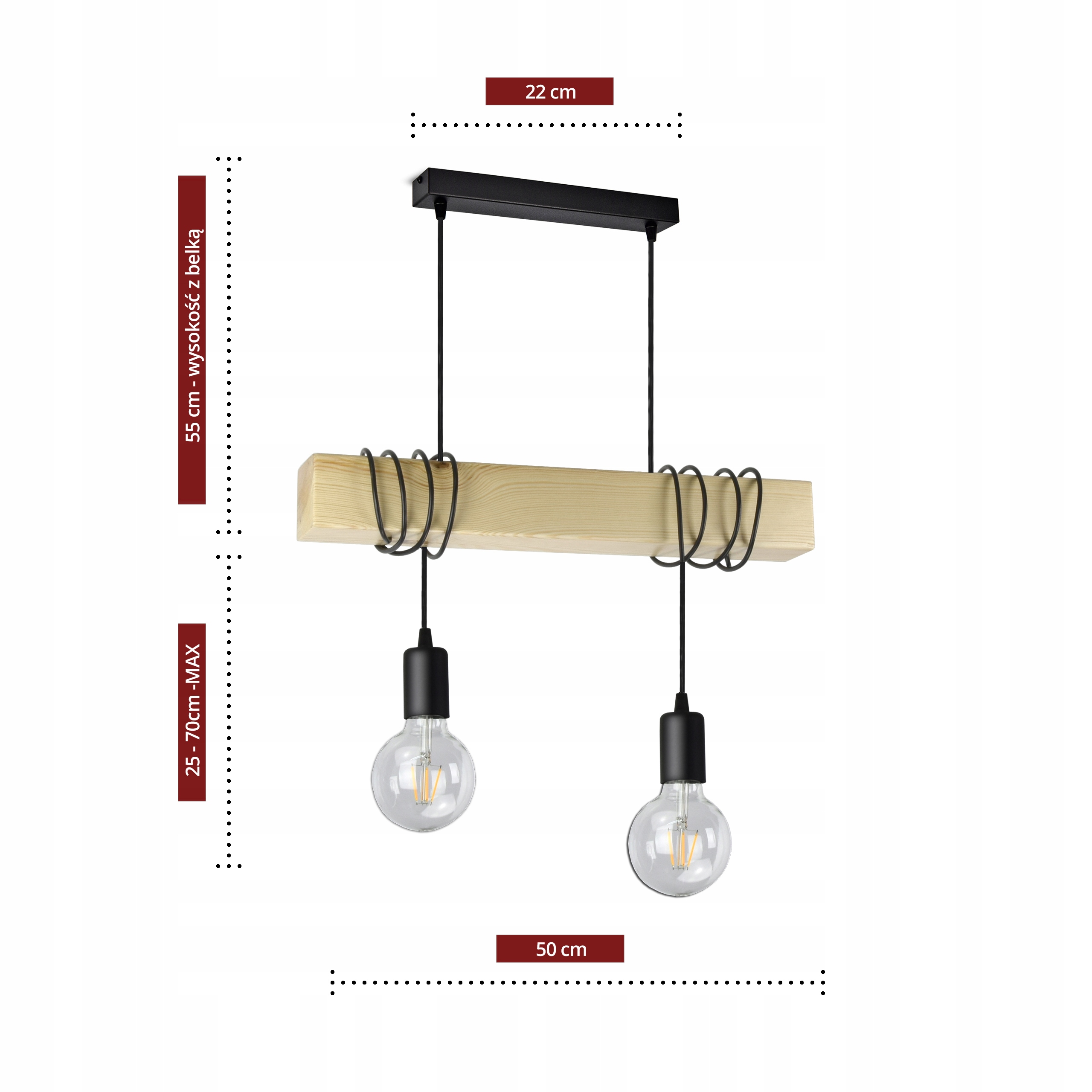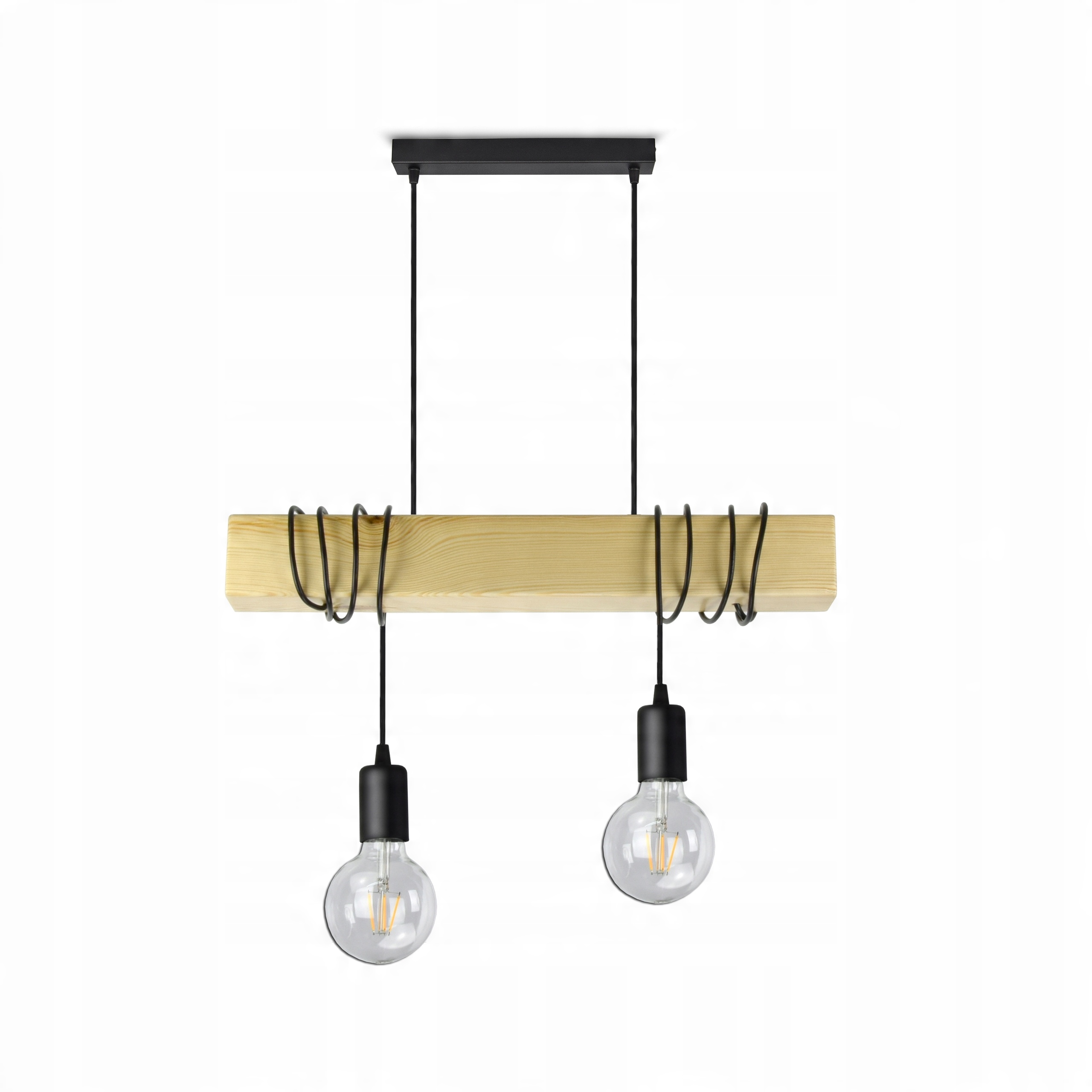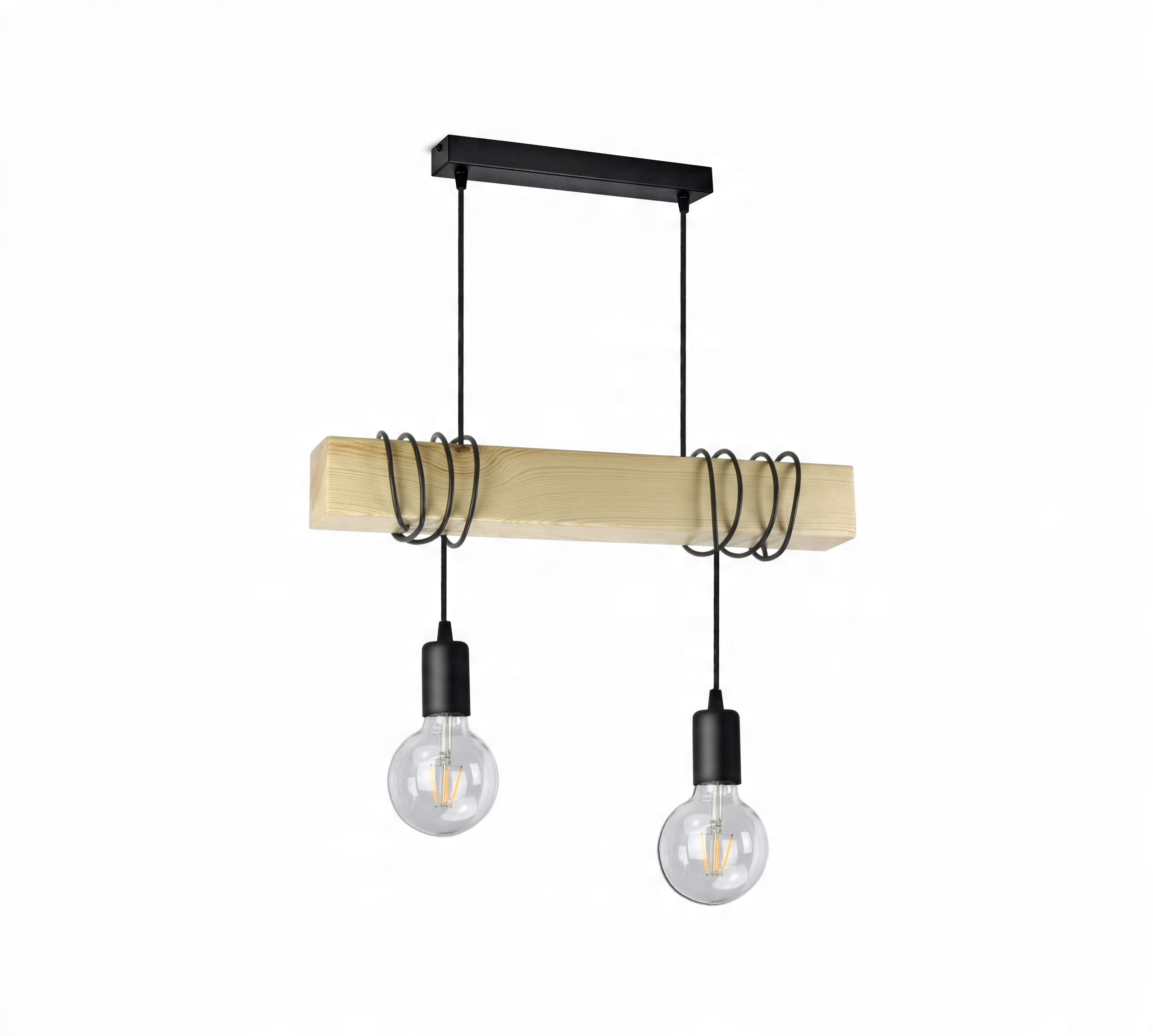 Lampa Wisząca Żyrandol Czarny Drewniana Belka LED