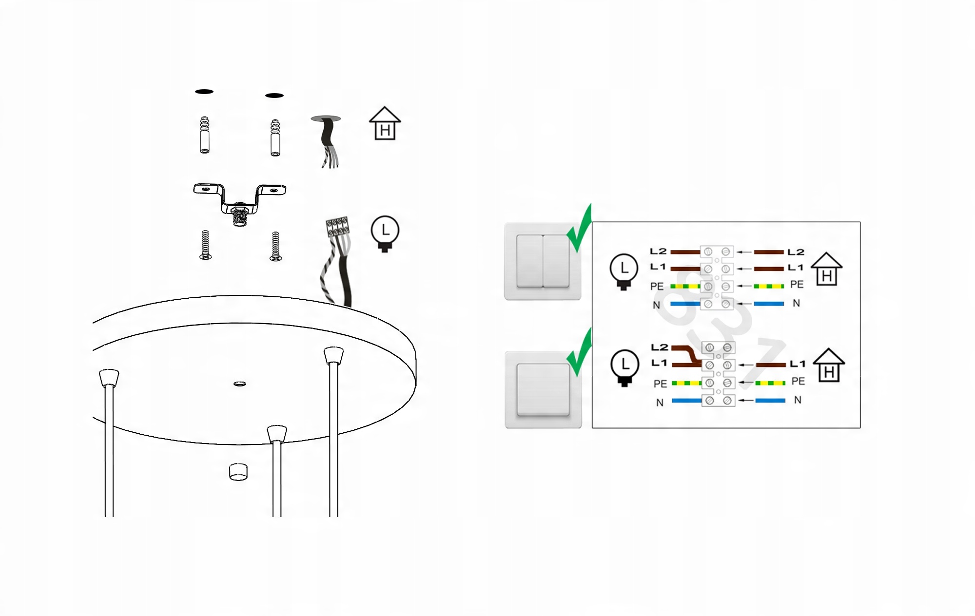 Zestaw nie zawiera żarówek ani kołków rozporowych (należy dobrać odpowiednie do sufitu)