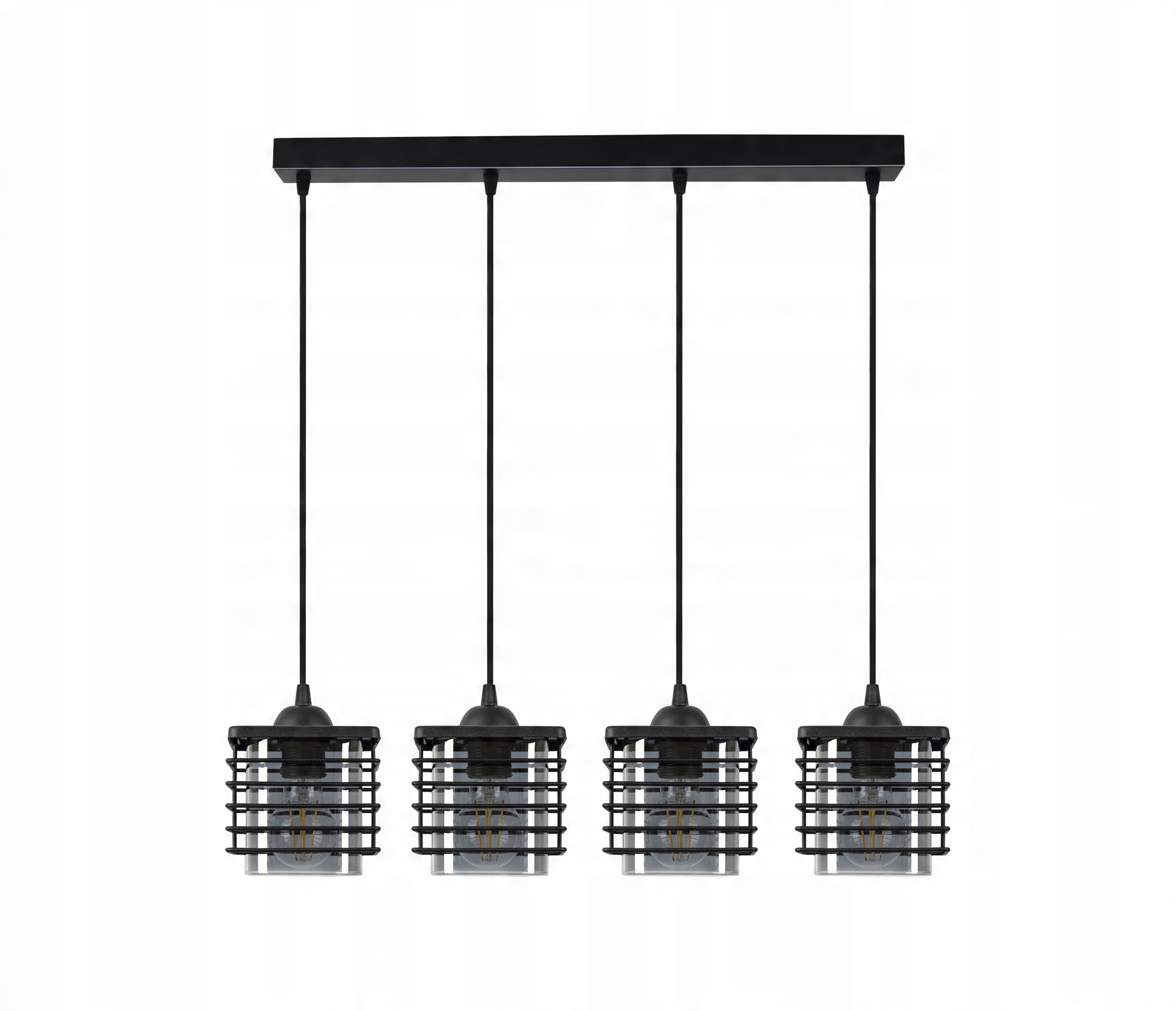 Lampa Wisząca Żyrandol Klosze Druciane Szklane LED