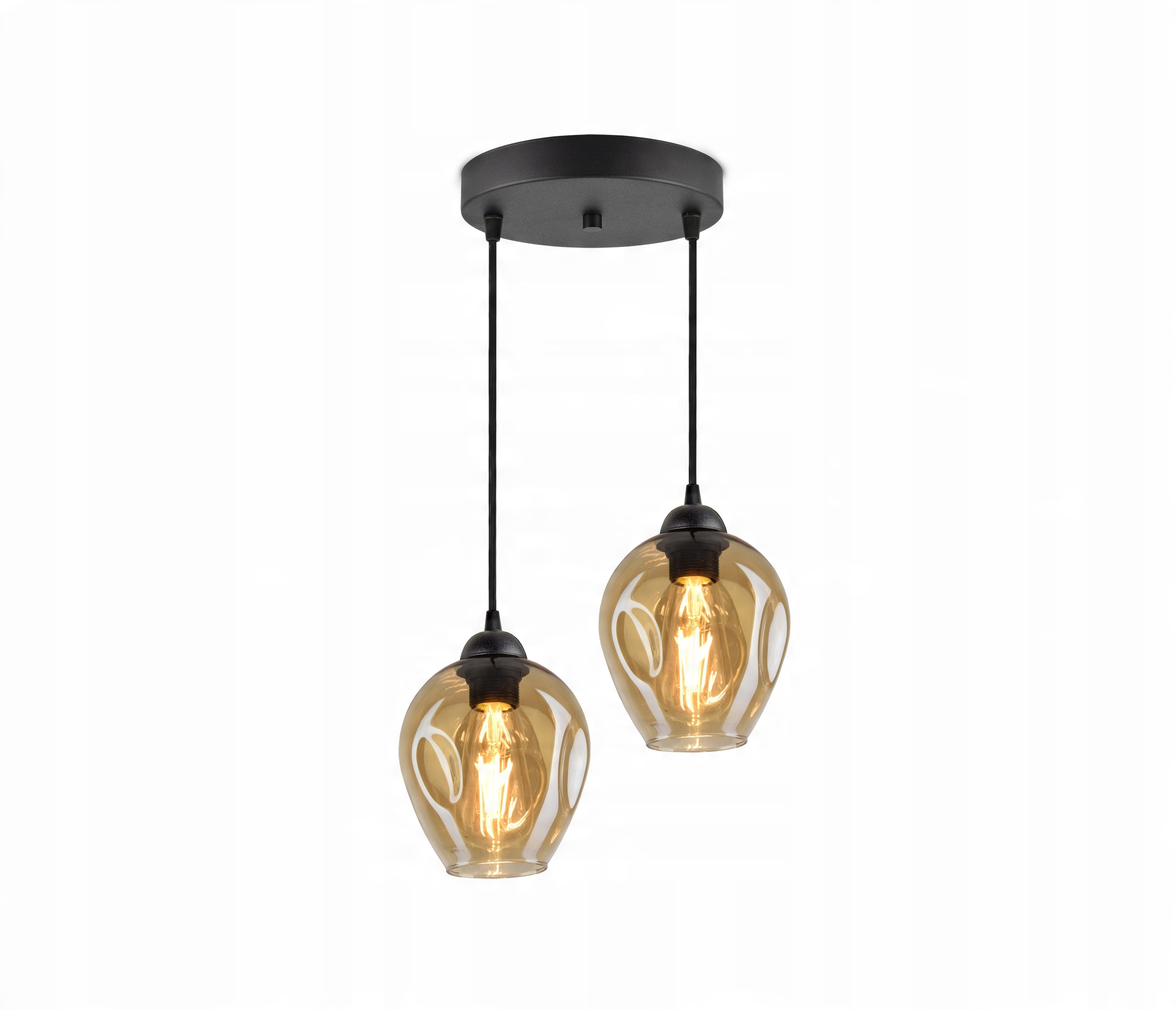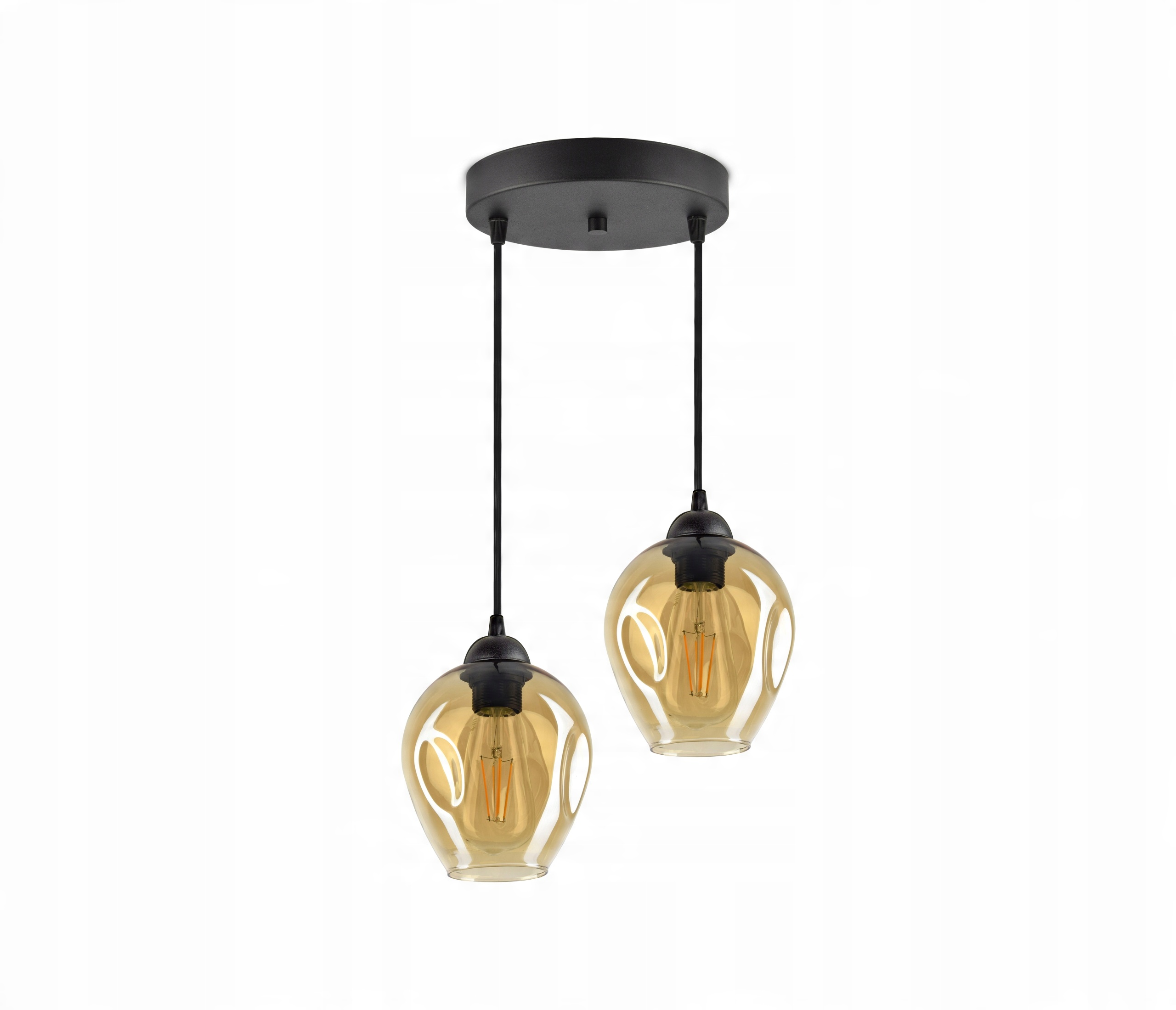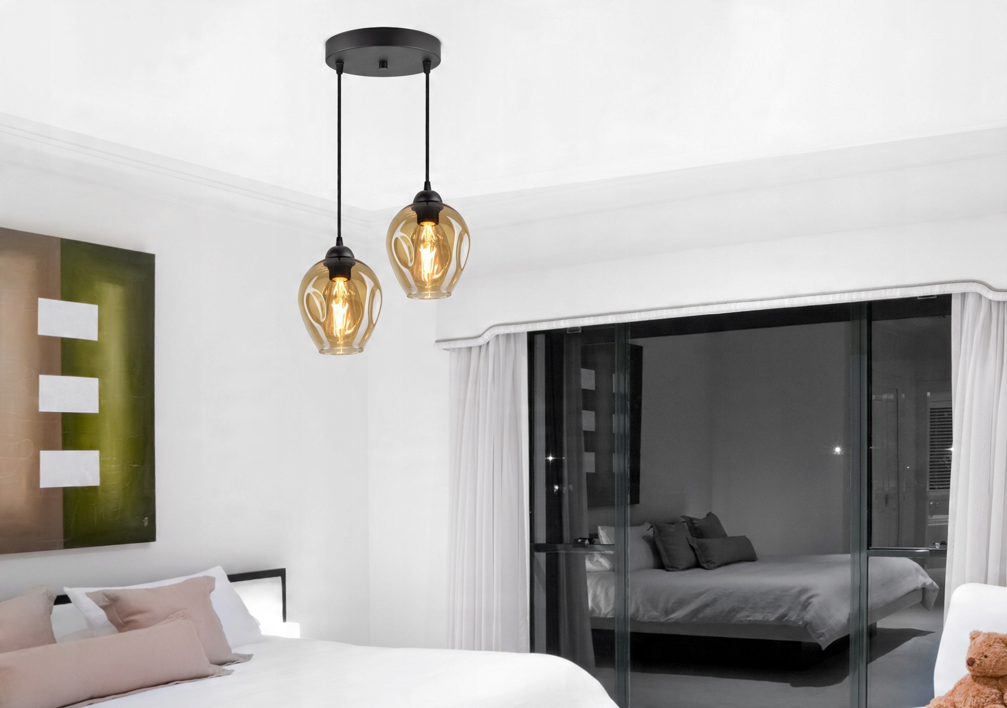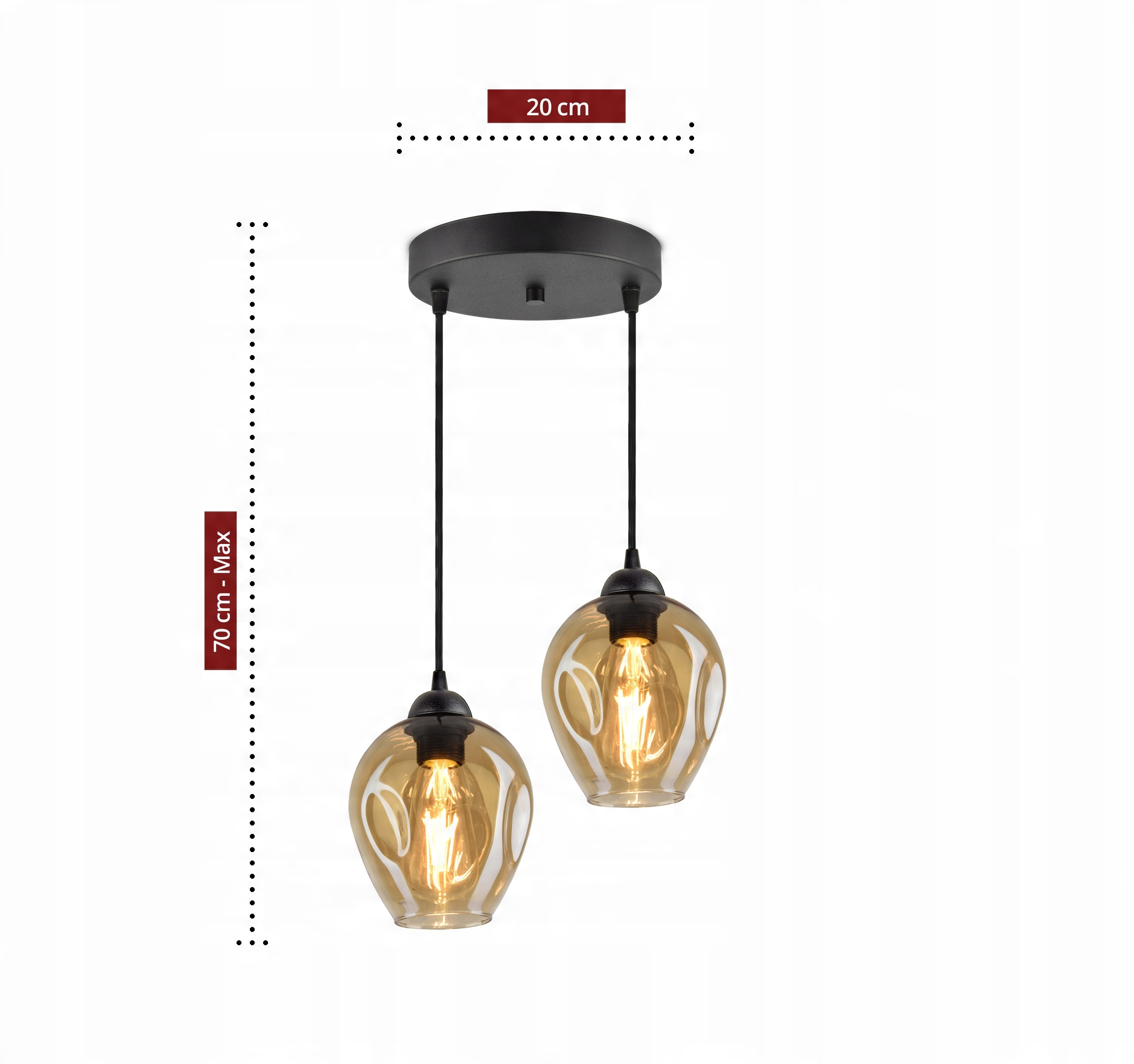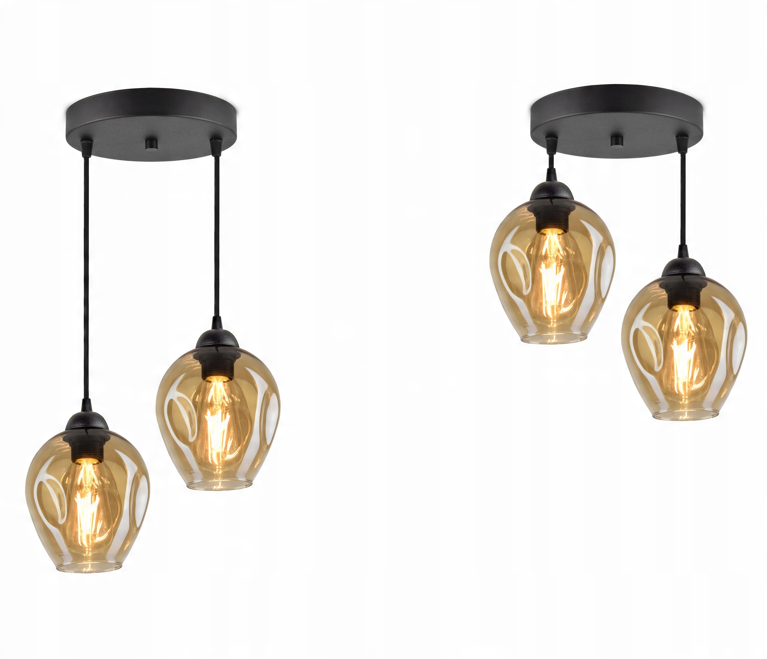 Lampa Wisząca Żyrandol Plafon 2 Klosze Miód LED