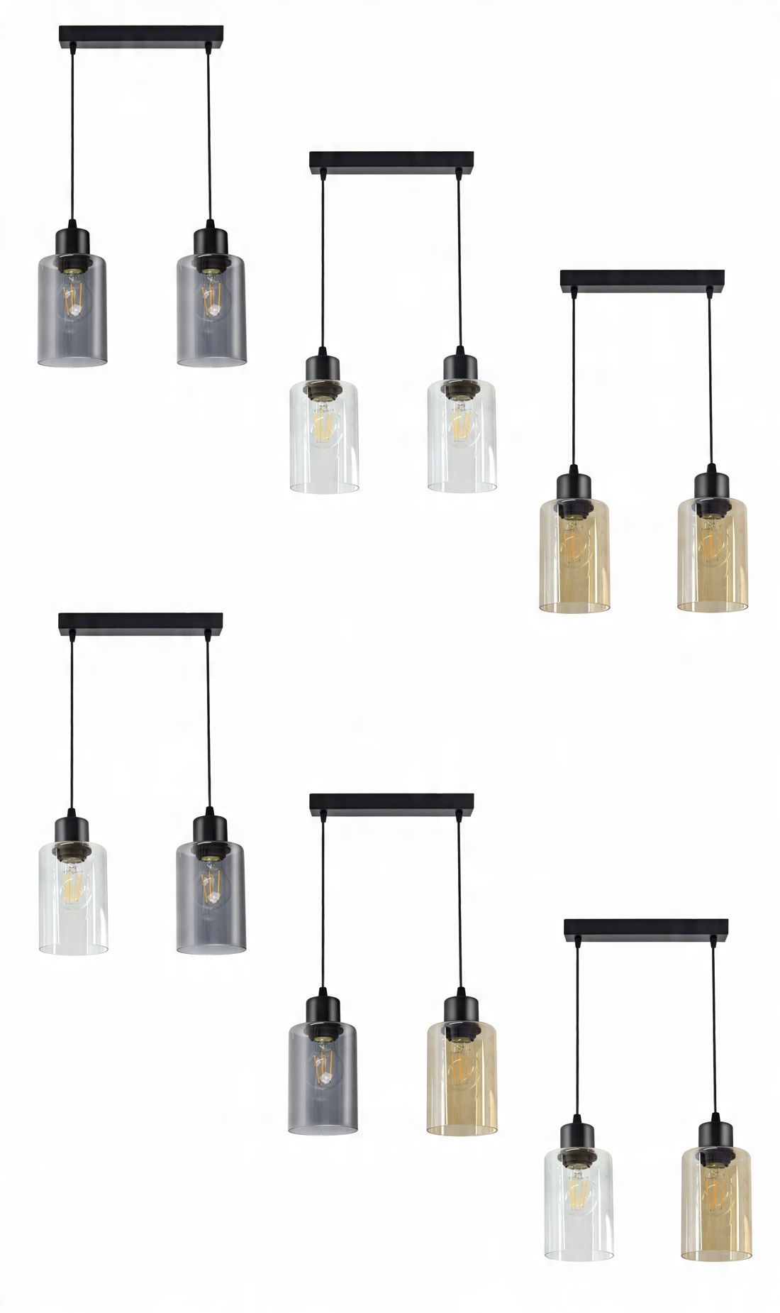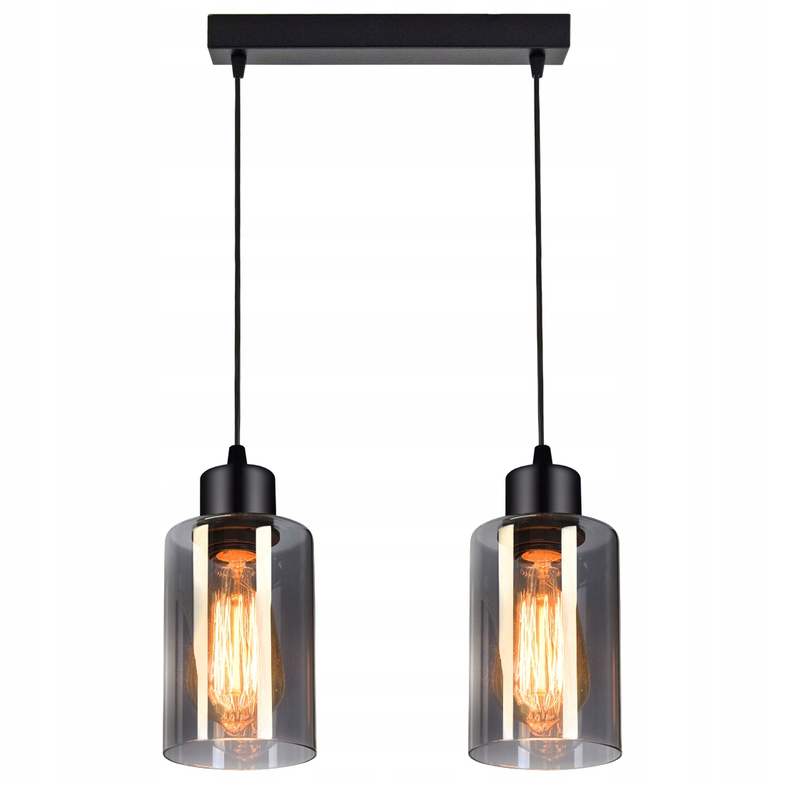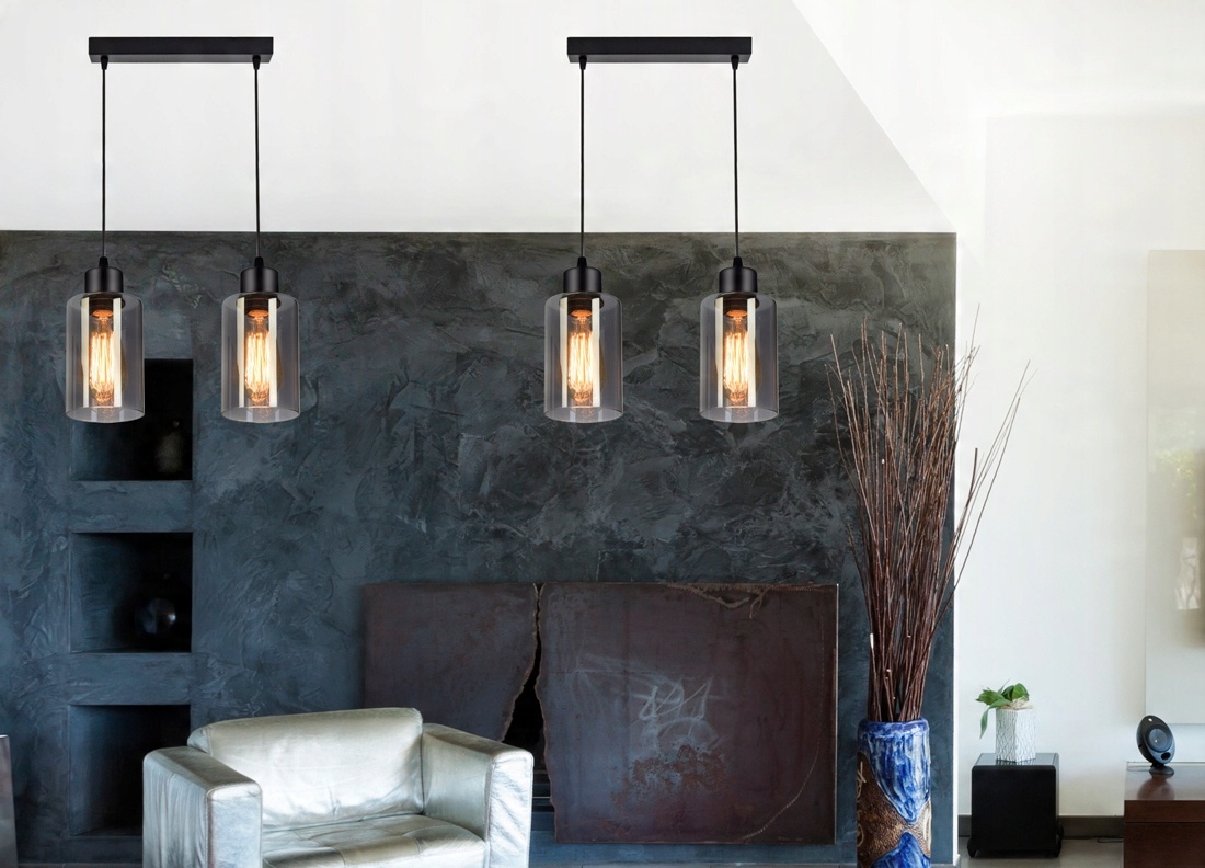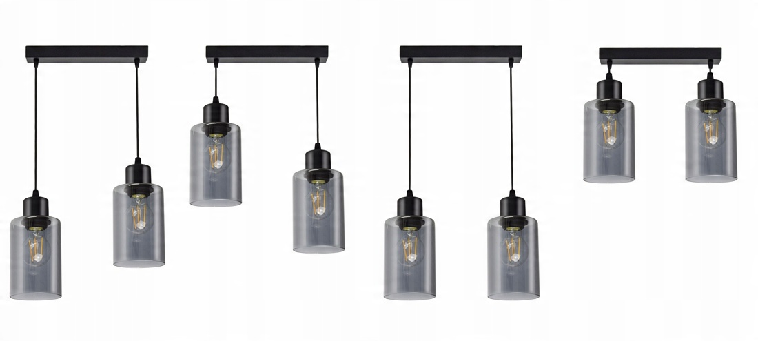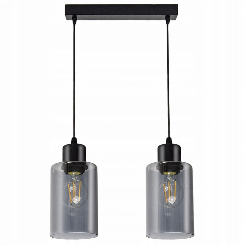 Praktyczna i nowoczesna lampa wisząca wyposażona w dwa szklane klosze w kształcie walca, tub.