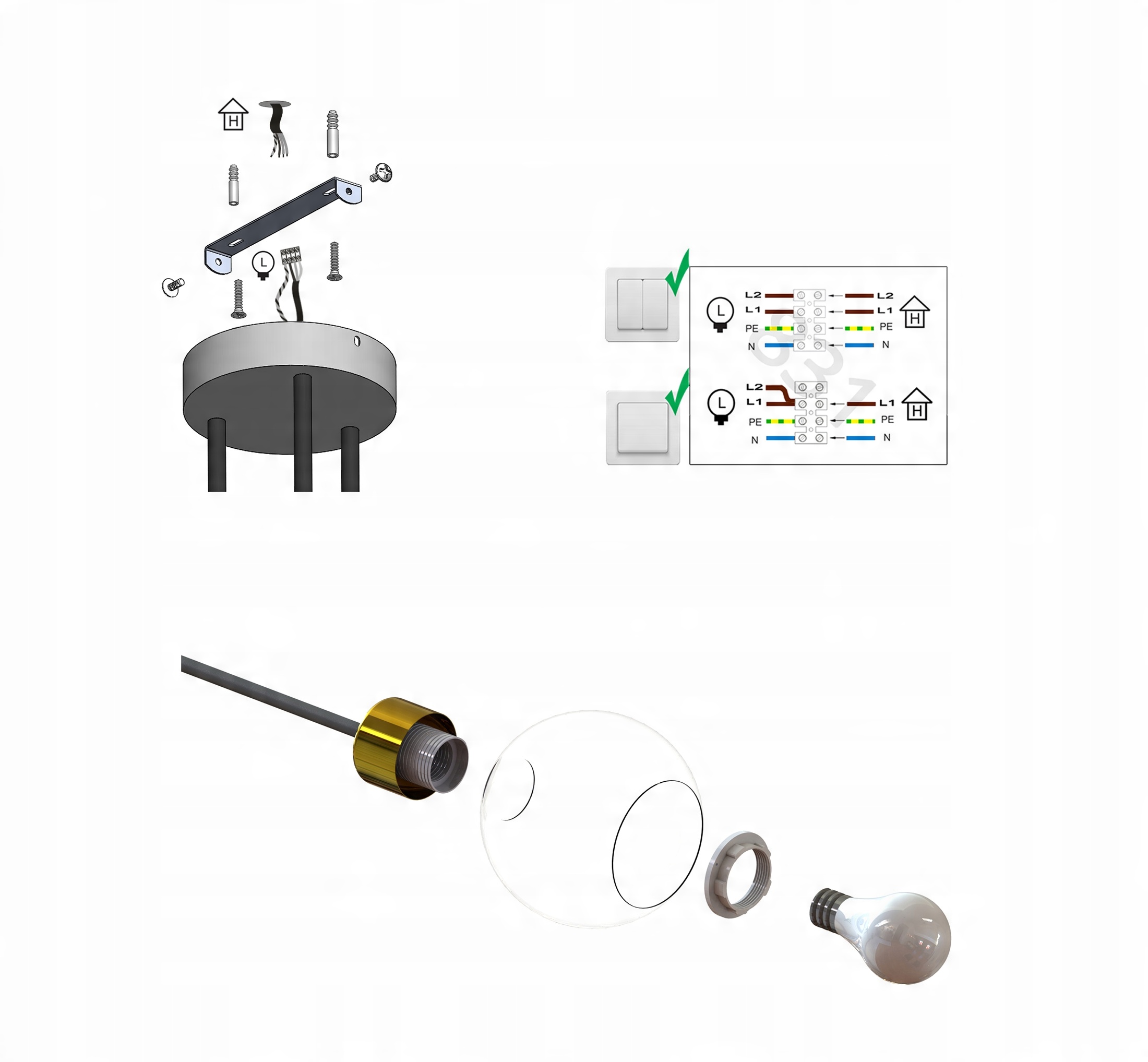 Zestaw nie zawiera żarówek ani kołków rozporowych (należy dobrać odpowiednie do sufitu)