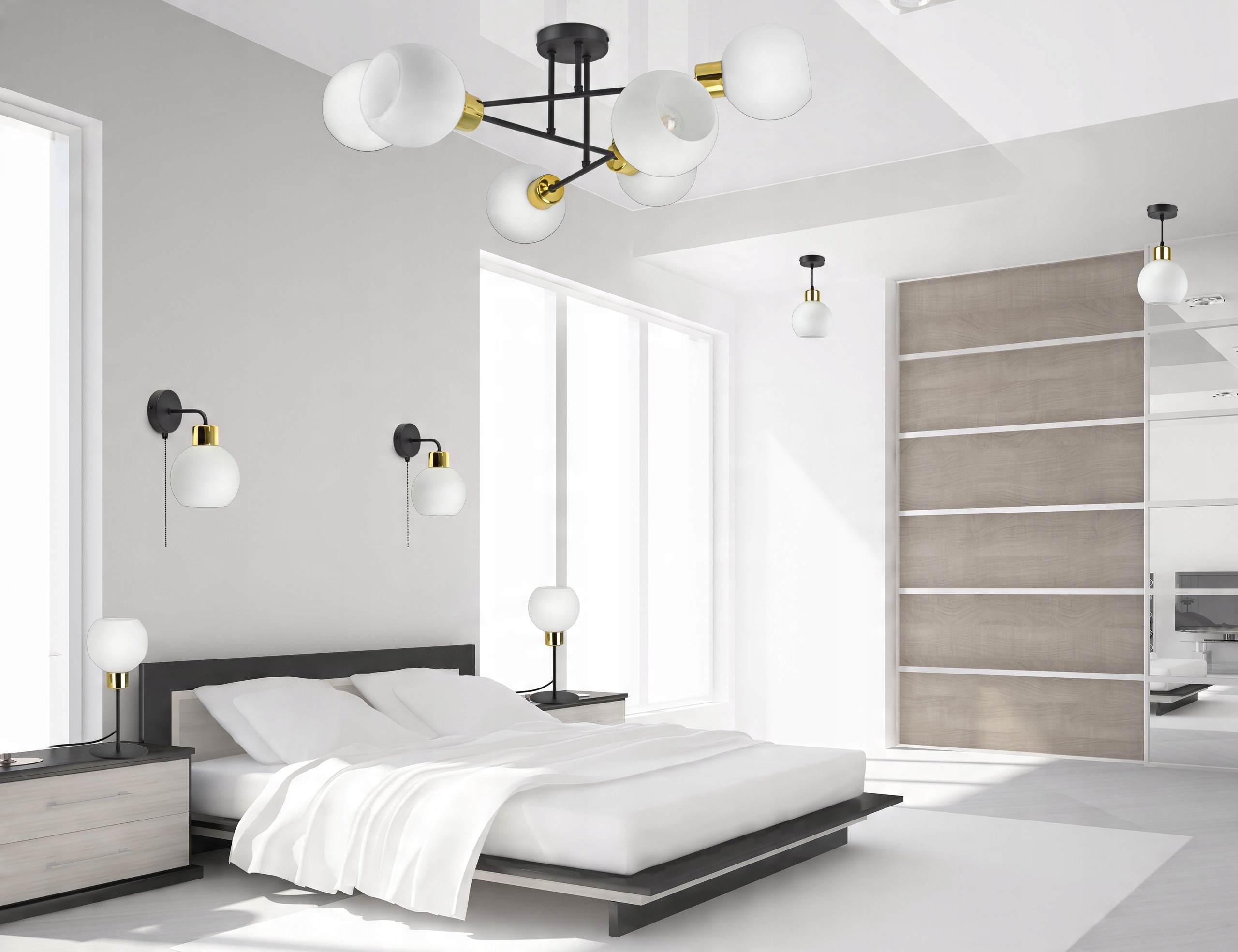 Lampa Wisząca Żyrandol Szklane Kule Mleczne LED