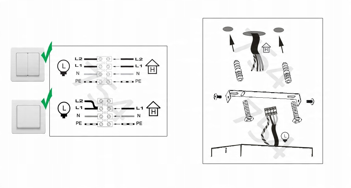 - Zestaw nie zawiera żarówek oraz kołków rozporowych do montażu