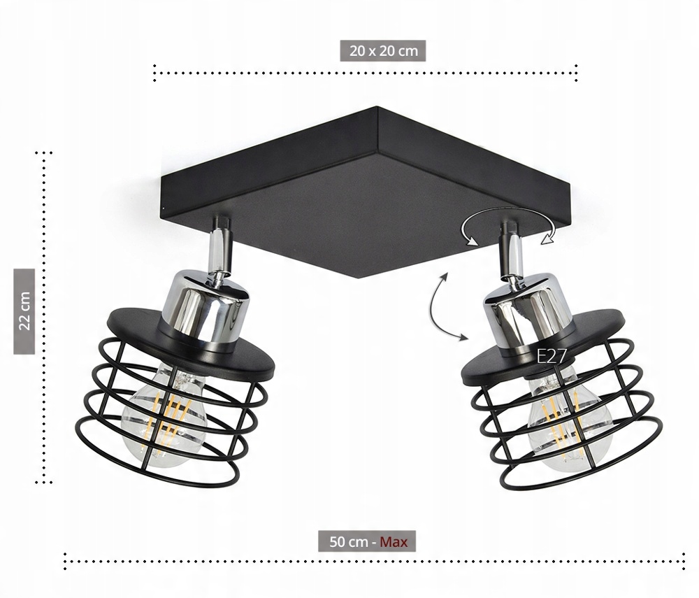 - Lampa obsługuje wszystkie żarówki z gwintem typu E27 do max 60 watów.