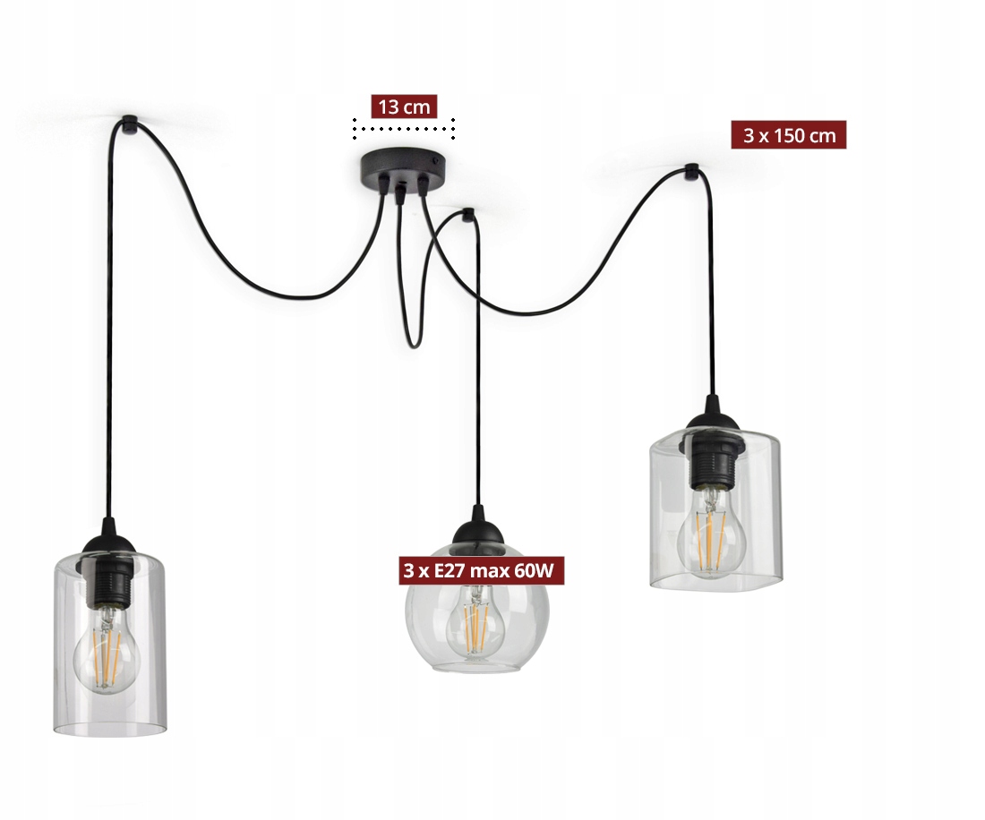 - obsługiwane żarówki: z gwintem E27 - oprawka z pierścieniem dociskowym (łatwo zdejmiesz klosze do umycia)