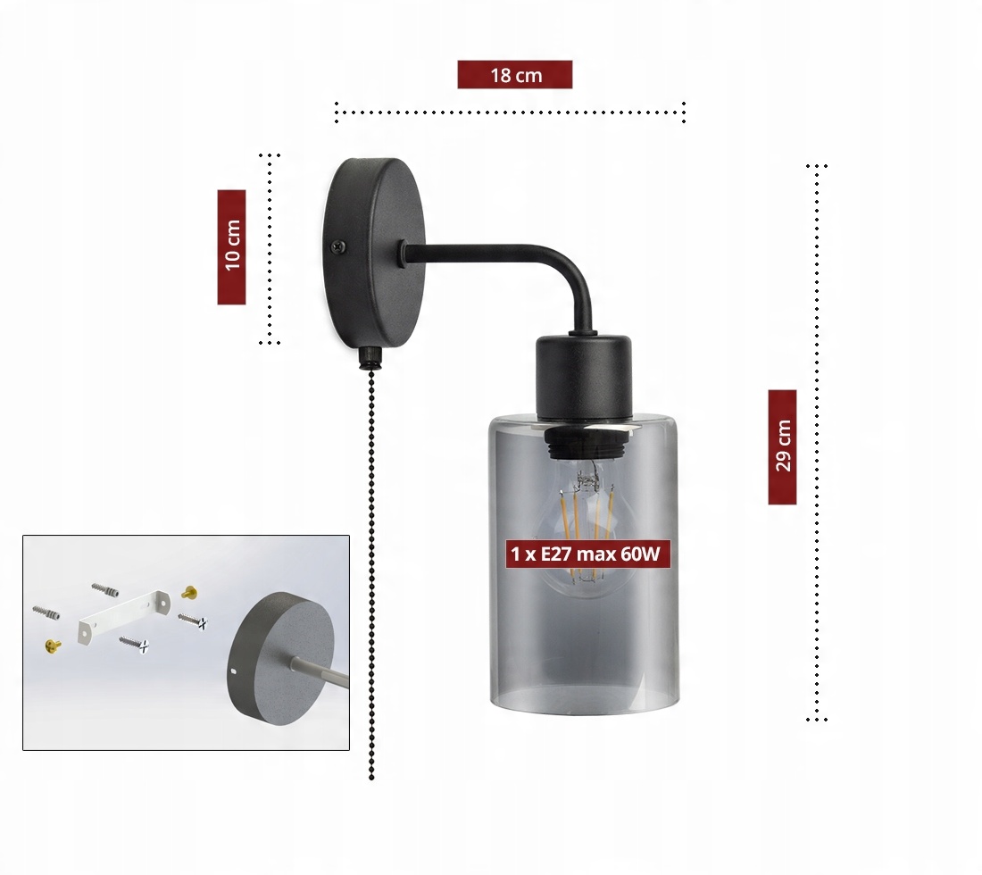 Zestaw nie zawiera źródła światła oraz kołków (należy dobrać odpowiednie do rodzaju ściany)