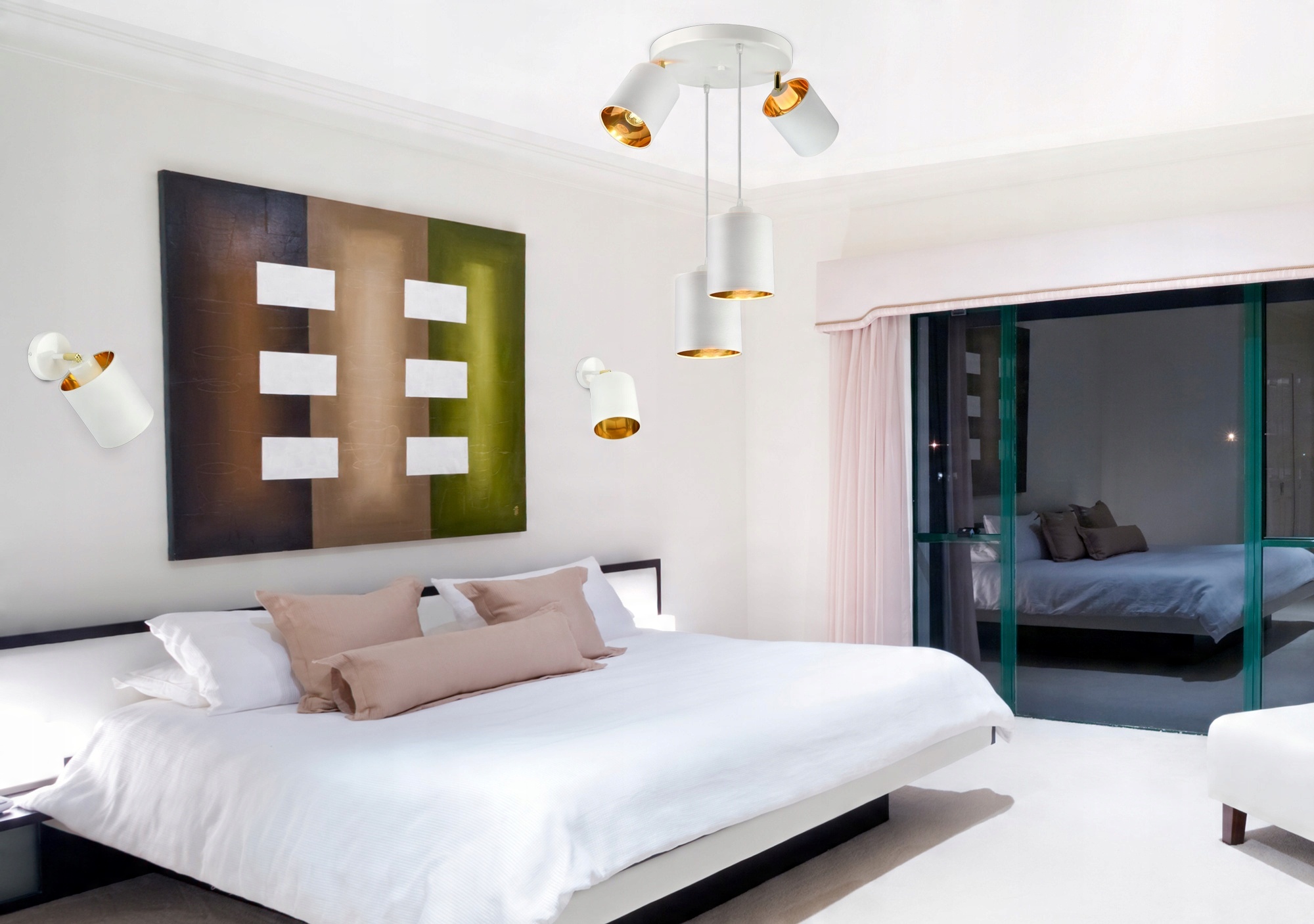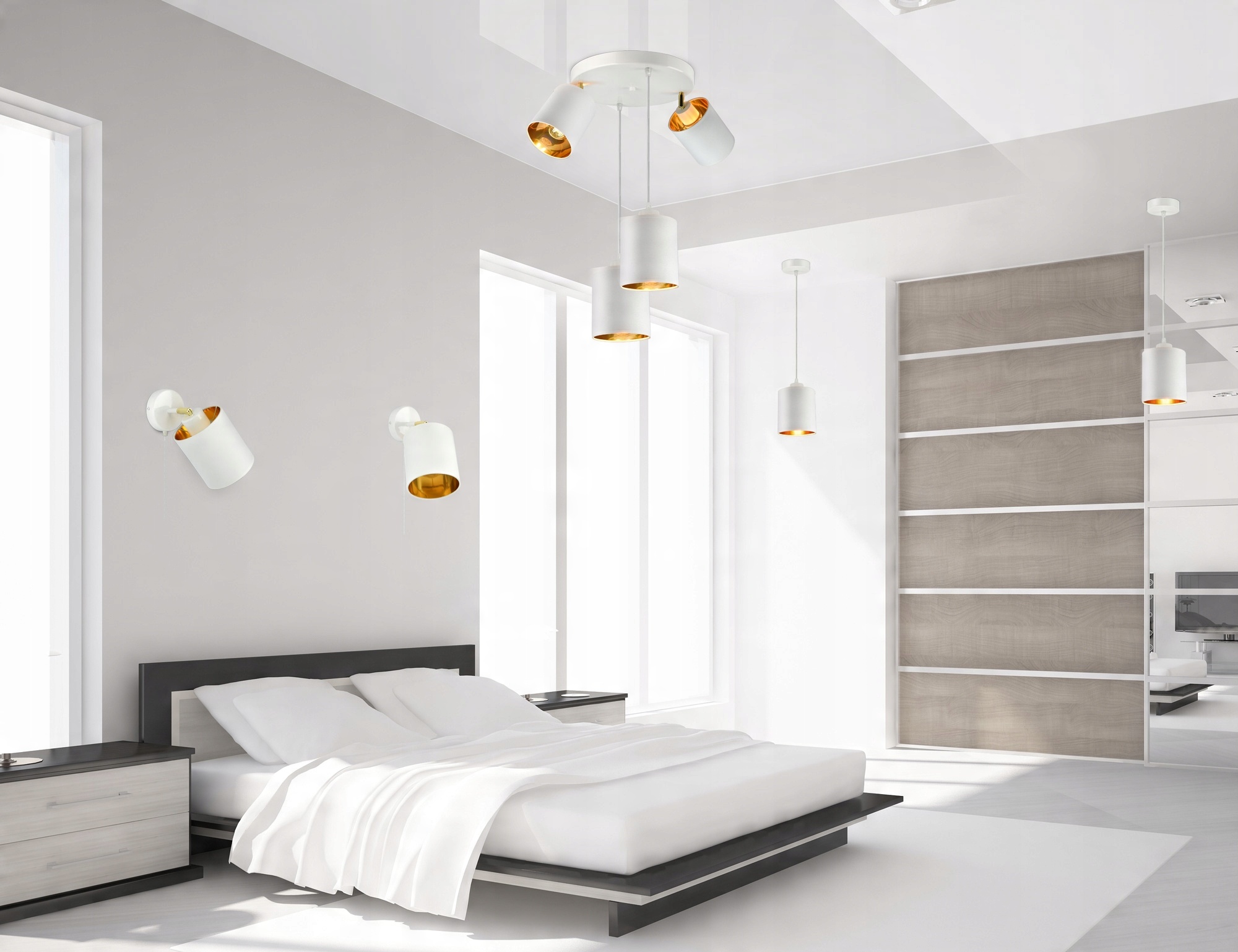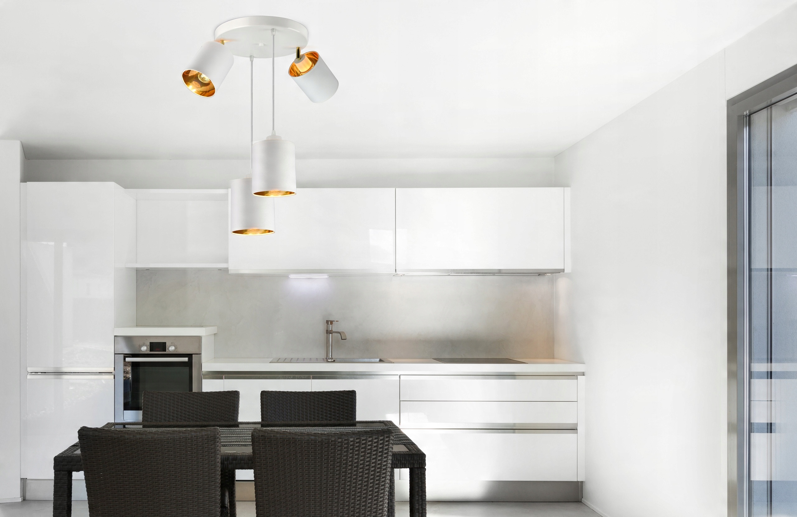 - Kolor abażurów: Biały + złote wnętrze
