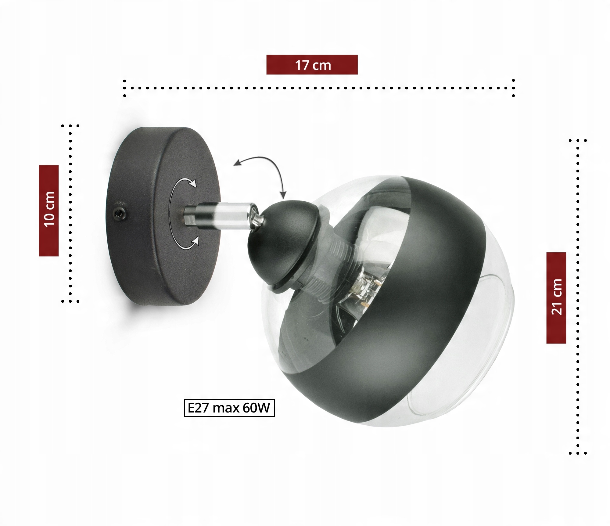 Zestaw nie zawiera żarówki, a także kołków rozporowych (należy dobrać odpowiednie do ściany).